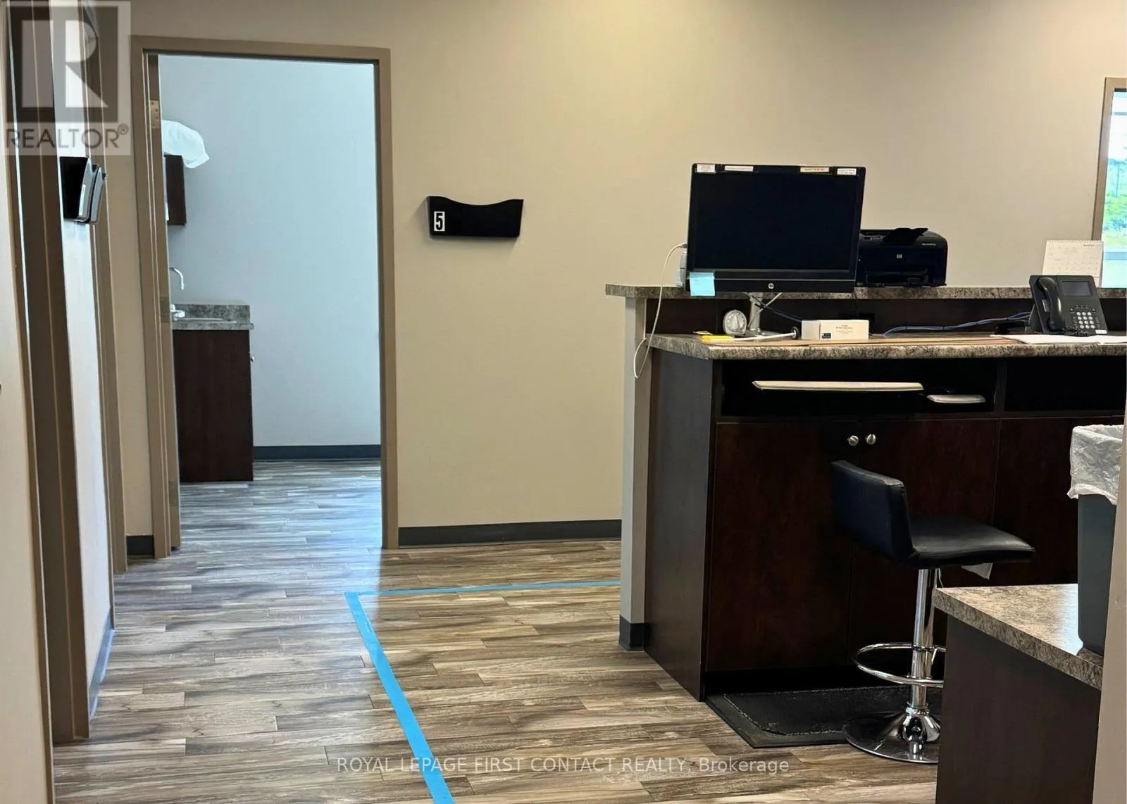 The unit offers a shared waiting area, reception desk, multiple exam rooms, private offices, a washroom, and staff areas. Elevator access, abundant on-site parking, and a professionally maintained facility, the space is ideally suited for medical or allied health professionals. (id:27476)