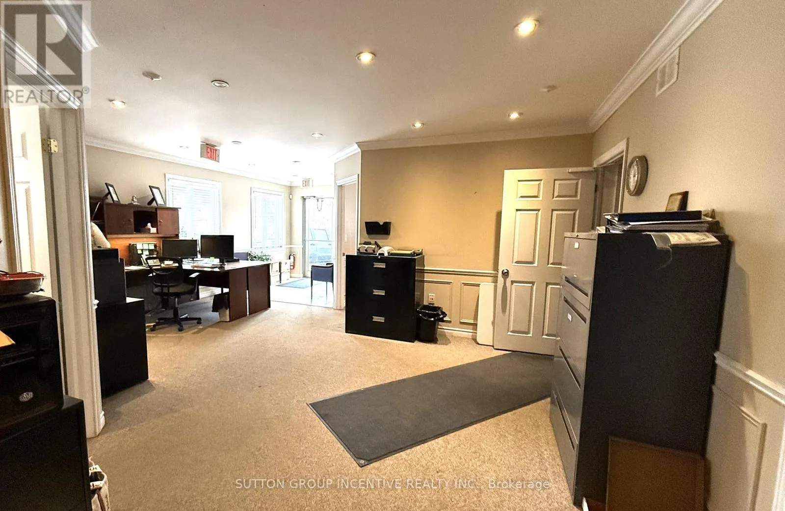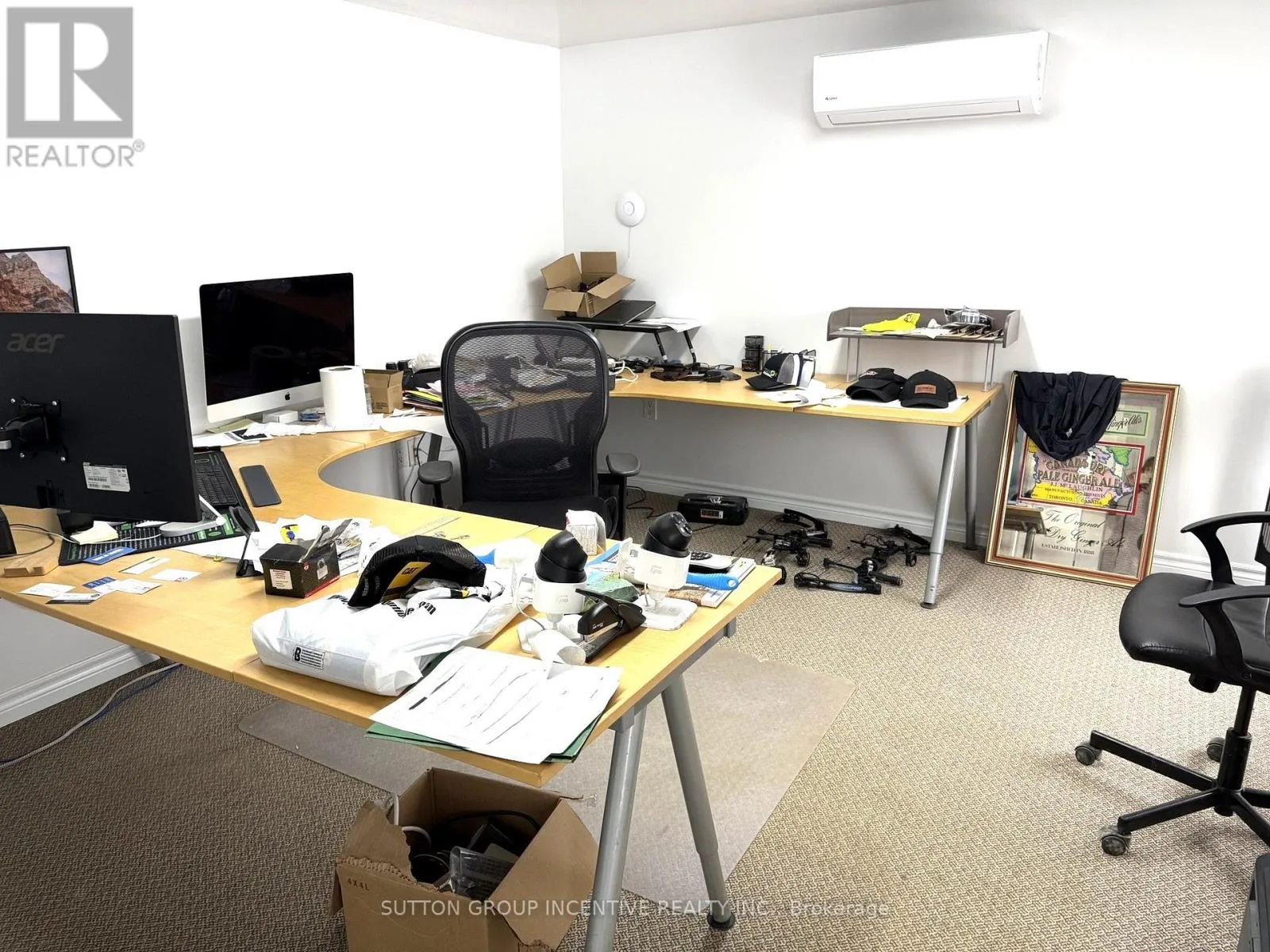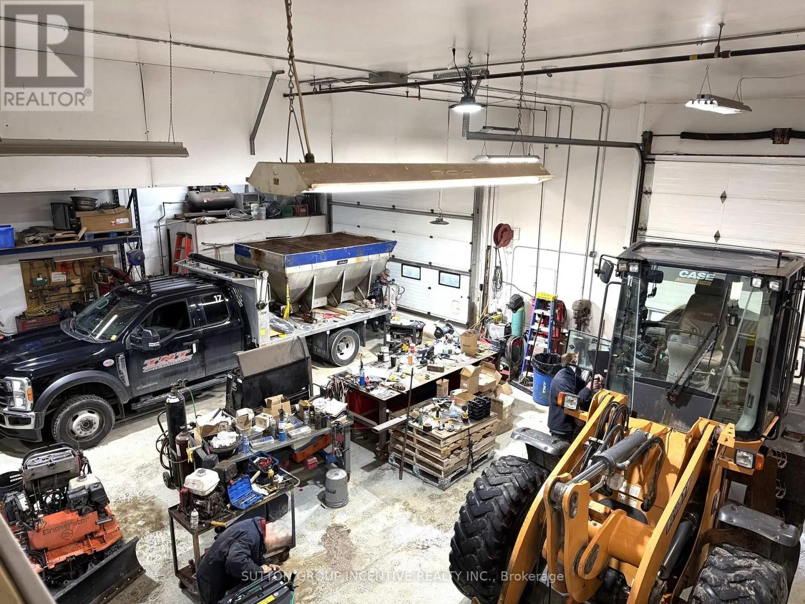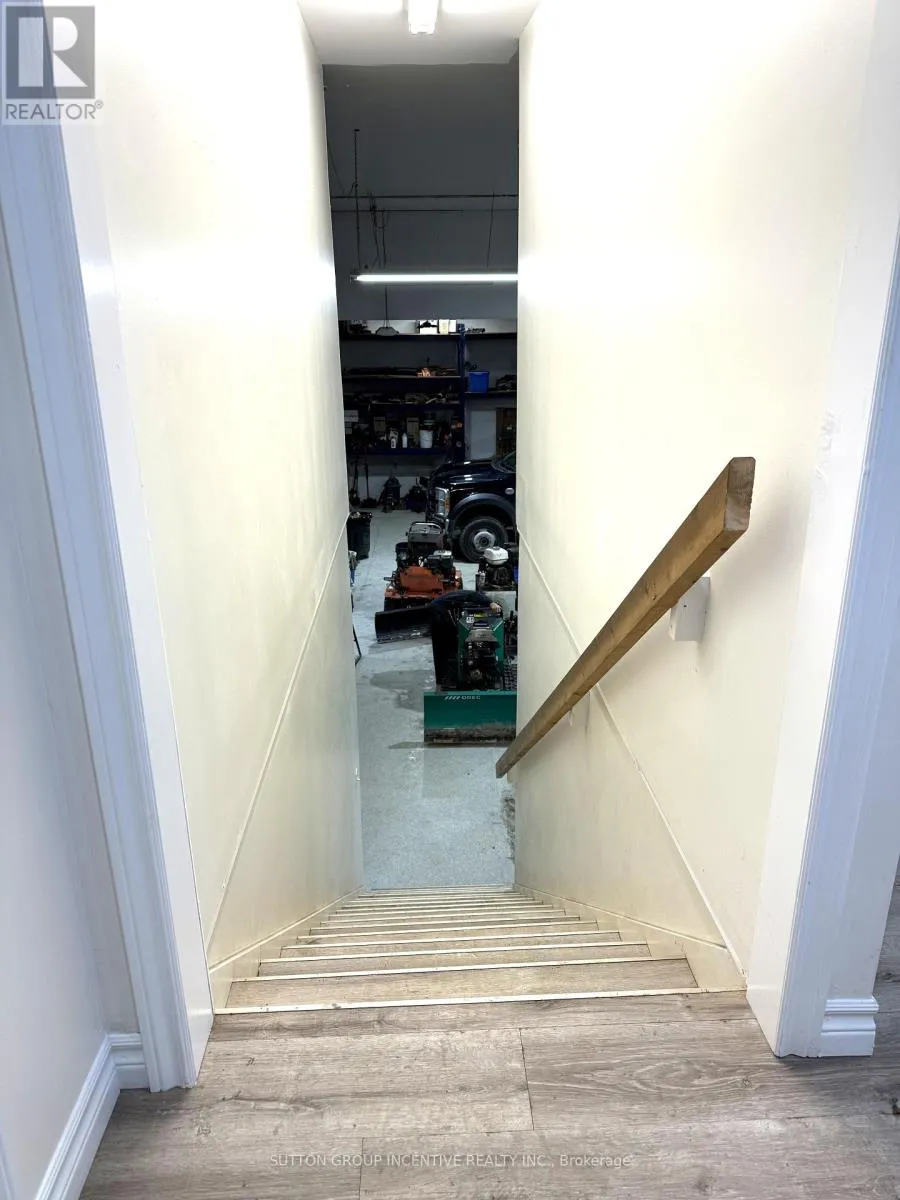 Shop (2,430 sq ft)- Two bays with three roll-up doors: 2 at 12' 14', 1 at 14' 14' Concrete floors, painted drywall walls, 18' ceilings, hanging LED lighting- In-floor heating with back-up overhead gas furnace- Includes: office (SE corner), parts room, 2-piece washroom, electrical room- Washroom finished with ceramic tile, 8' ceilings, LED lighting. Air Exchanger, Ac, Oil Grid Separator, Alarm System, In Floor Boiler System. Mezzanine (1,040 sq ft)**Finished (860 sq ft):**- Office (200 sq ft): carpet, painted drywall, 7' ceilings, LED lighting- 3-piece washroom and boardroom (660 sq ft): industrial vinyl flooring, painted drywall, 7'ceilings, recessed LED lighting. Unfinished (180 sq ft): - Storage Access: Front parking lot entry to office and shop; interior stairs to mezzanine. Security, fire/smoke alarm systems, , exterior lighting. (id:27476)