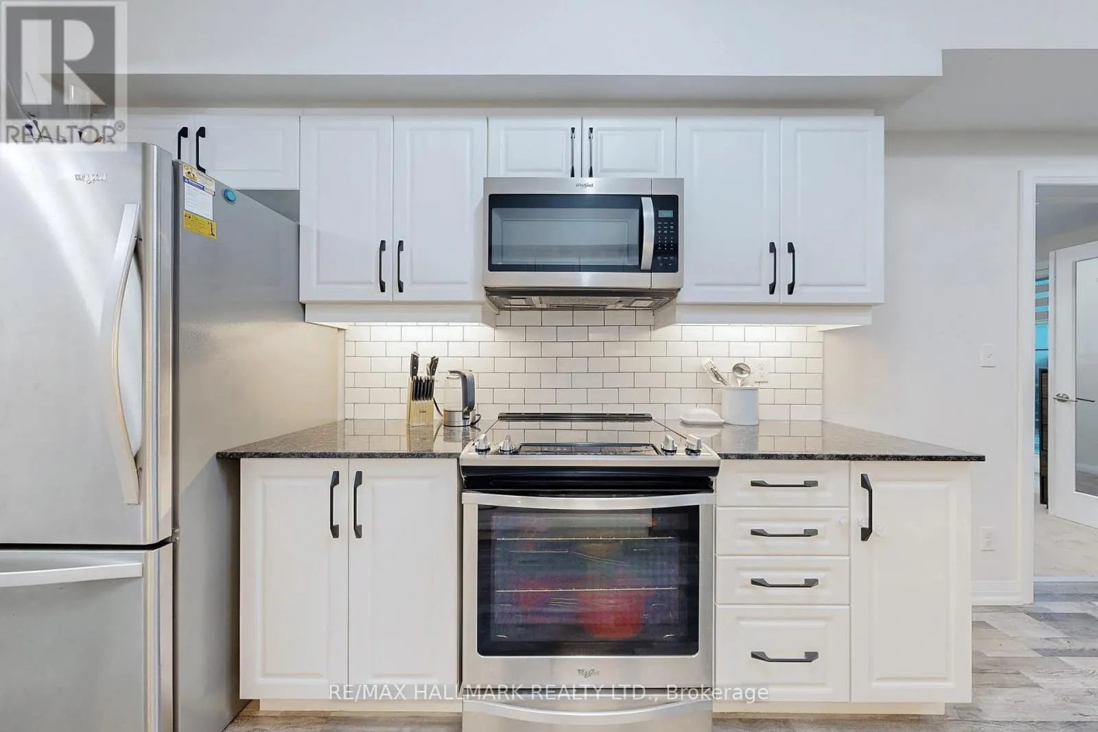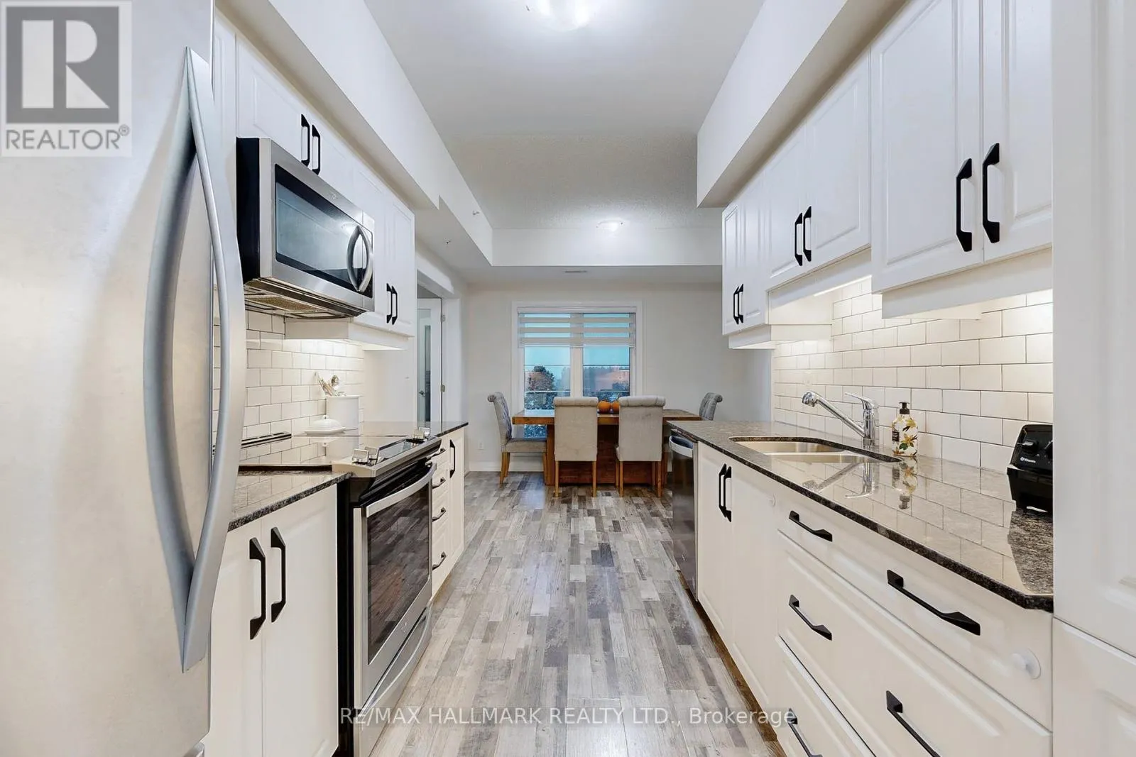 The stylish galley kitchen is beautifully appointed with stainless steel appliances, a built-in microwave and dishwasher, granite countertops, a sleek tile backsplash, and abundant cabinetry for optimal storage. A sunlit dining area with a large picture window flows seamlessly into the spacious living room, where sliding doors lead to a private balcony with picturesque south-facing views, perfect for relaxing or entertaining. The primary bedroom includes 2 large closets and a 3pc ensuite with a frameless glass shower and granite-topped vanity. The second bedroom features a large window with roller blinds, while the third bedroom, framed by French doors and a picture window, offers versatility as a guest room, home office, or den. A separate 4pc bathroom with a soaker tub, shower, granite-topped vanity, and ensuite laundry completes the layout. Residents of 'Kodiak' enjoy family-friendly outdoor amenities, including a playground and chess court. Ideally situated in a vibrant community surrounded by scenic trails, parks, top-rated schools, and everyday conveniences, this home combines modern comfort with timeless appeal. An exceptional opportunity to call Bear Creek Ridge home! (id:27476)