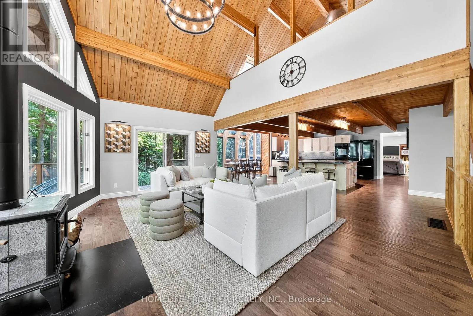 The open-concept family room is great for entertaining guests and features a new HearthStone wood-burning stove. Master suite includes skylight views to watch the stars, walk-in closet, and heated floor ensuite. *3500 sqft of total finished space includes fully finished basement with separate entrance and full bathroom. It offers an entertainment area with marble bar, pool table, a large media room with barn door (doubles as extra BR) and projector, and 4th bedroom with walk-in closet. 2-car garage comes lots of tool cabinets, shelves, and epoxy floor. Outdoor paradise includes 3 decks, tranquil pond with artificial waterfall and fountain, year-round swim spa, a large wood-burning sauna, and 3 storage sheds. Complete privacy with forest backing. Minutes to Wasaga Beach, Snow Valley skiing, and Barrie amenities. Perfect luxury retreat combining privacy, nature, and convenience. Carson Dunlop home inspection report available upon request. Click on "More Information" link below to see 360 view of the house! (id:27476)