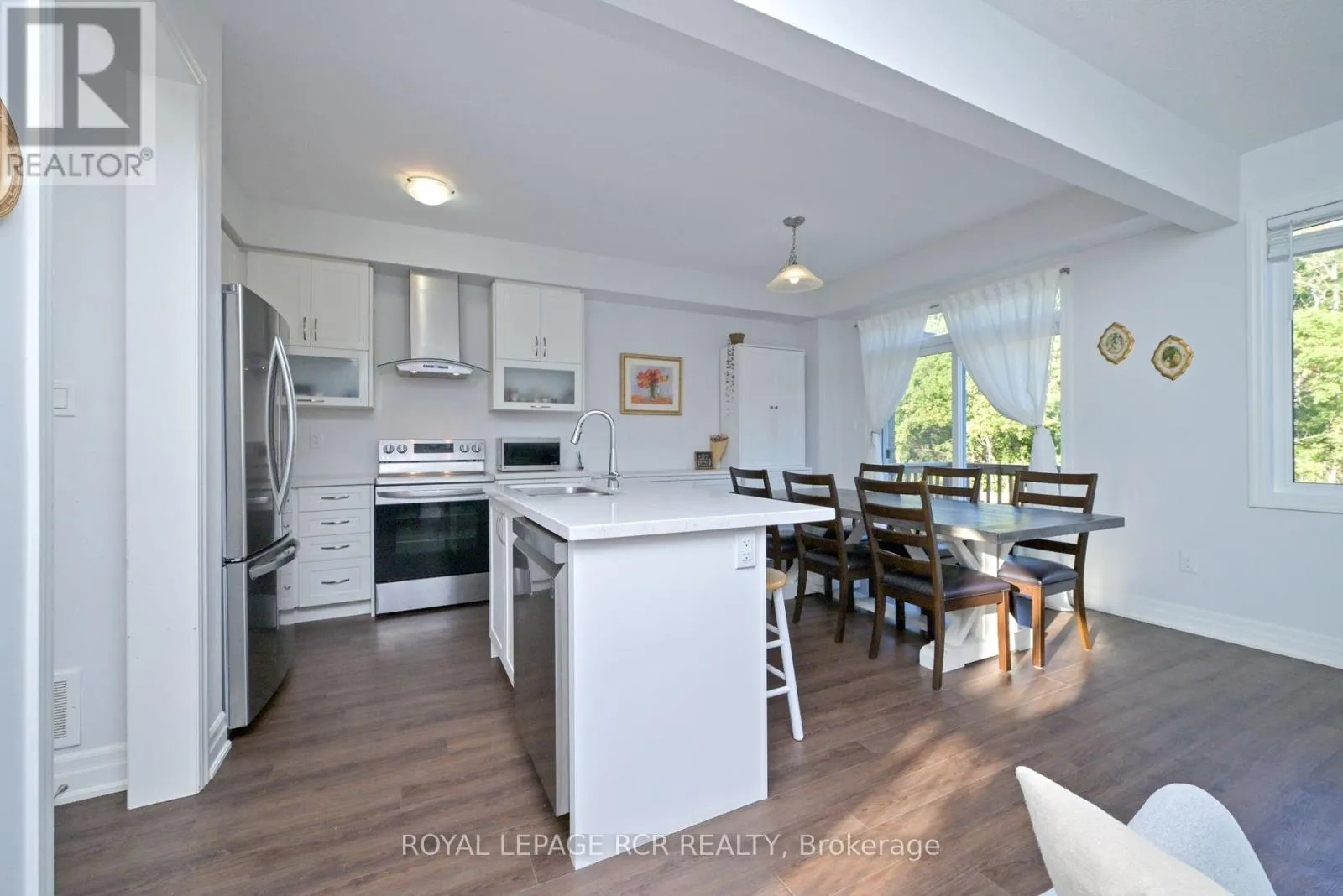 Step inside to a welcoming foyer with soaring 18 ft ceilings and oversized windows that fill the home with natural light. The main floor open concept layout perfect for busy family life and weekend entertaining. At the heart of the home is a stylish kitchen with quartz countertops, white cabinetry, stainless steel appliances, and a large island with breakfast bar seating. The adjoining dining area walks out to a balcony with tranquil views - ideal for morning coffee or family dinners with a sunset backdrop. Upstairs, you'll find 3 generous bedrooms, including a serene primary suite with walk-in closet and spa-like ensuite featuring a soaker tub, double vanity, and glass-enclosed shower. The unfinished walkout basement with bathroom rough-in offers amazing potential - whether its a playroom, home gym, in-law suite, or media room. The possibilities are endless. Located in a friendly, well connected neighbourhood just minutes from schools, shopping, parks, major highways and Base Borden, this home combines peaceful living with everyday convenience. ** This is a linked property.** (id:27476)