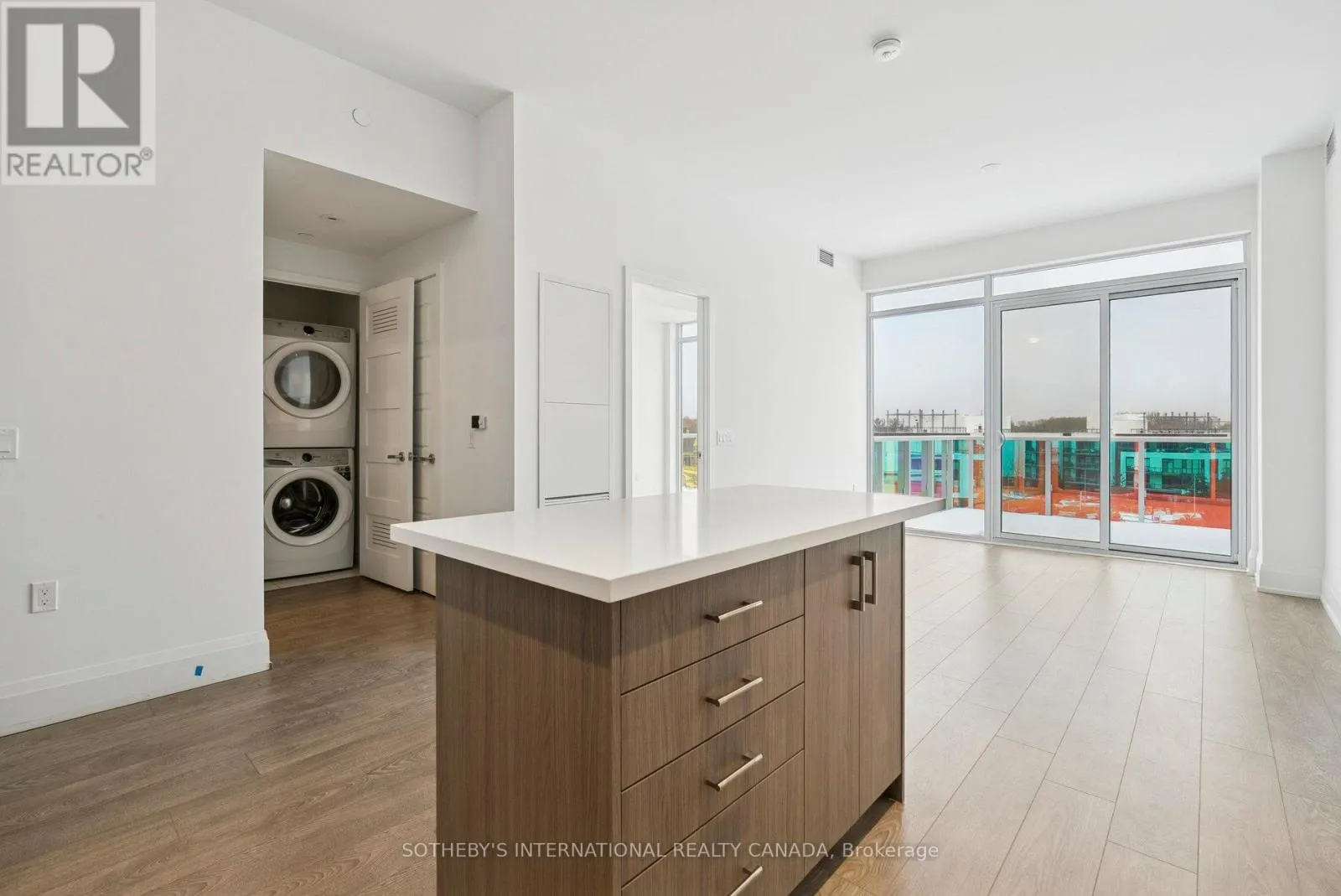 Cross Streets: Sunseeker/Riva. ** Directions: Friday Harbour Resort. Experience the pinnacle of luxury living in this brand new, never-lived-in suite on the coveted penthouse level of Sunseeker at Friday Harbour. This premium unit is distinguished by its impressive 10-foot ceilings throughout creating an enhanced sense of space and light. The elegant, open-concept design is perfect for entertaining, featuring high-end laminate engineered flooring.