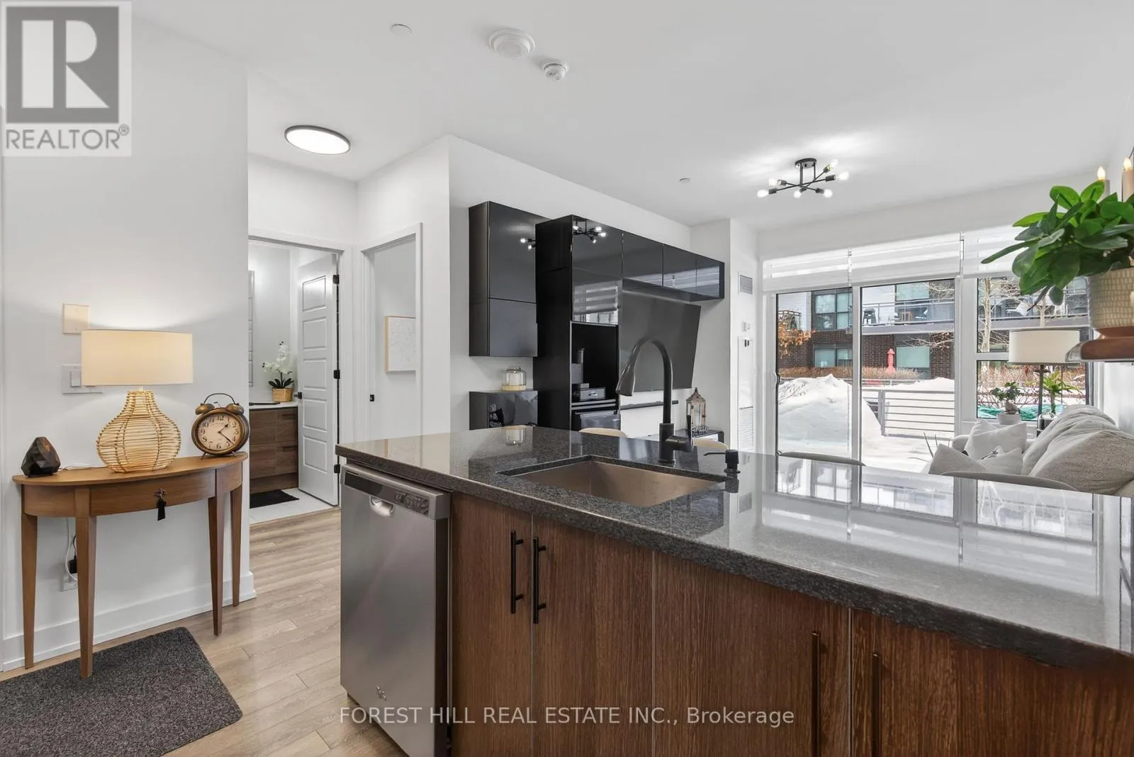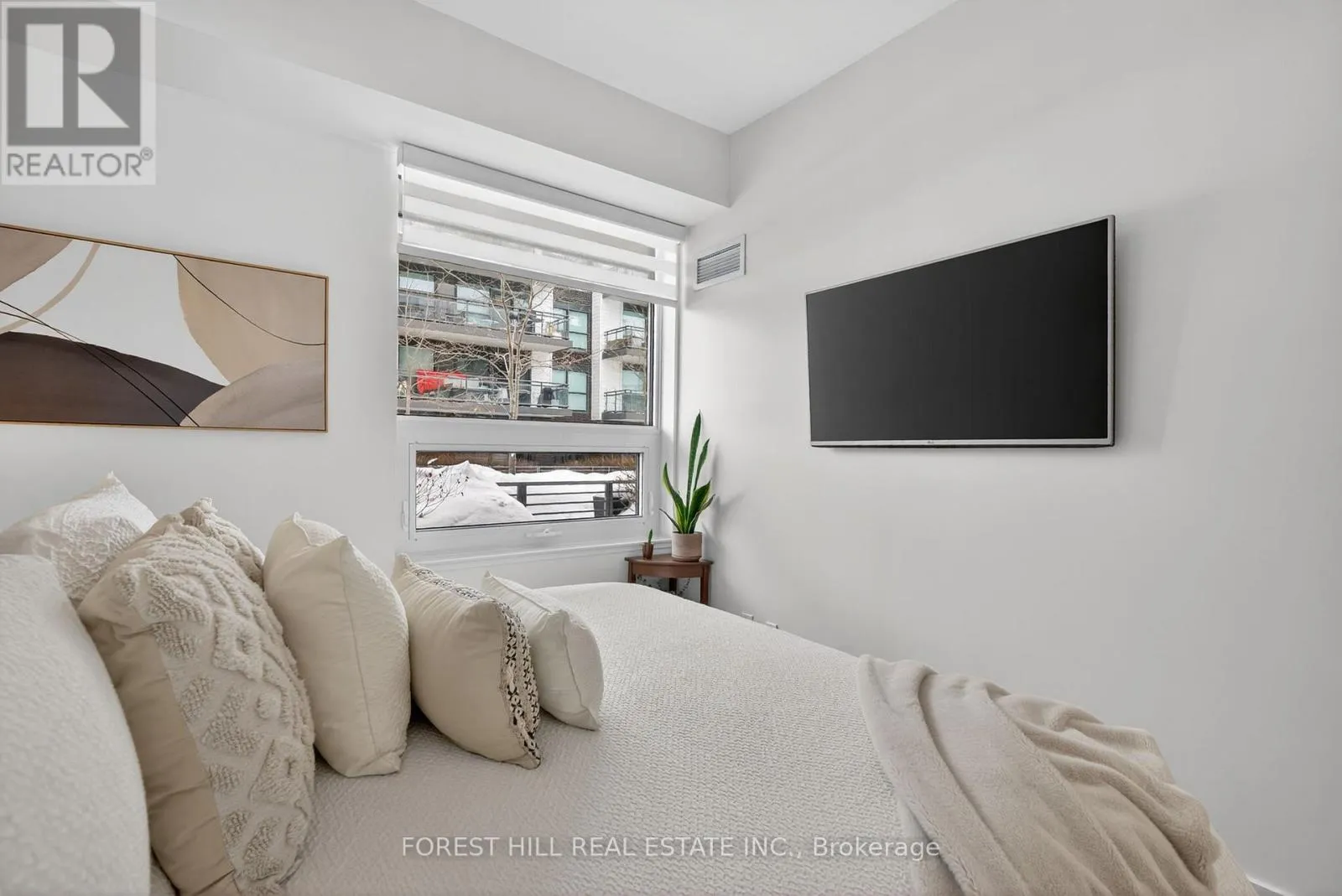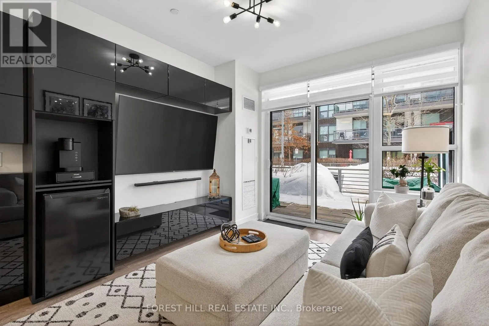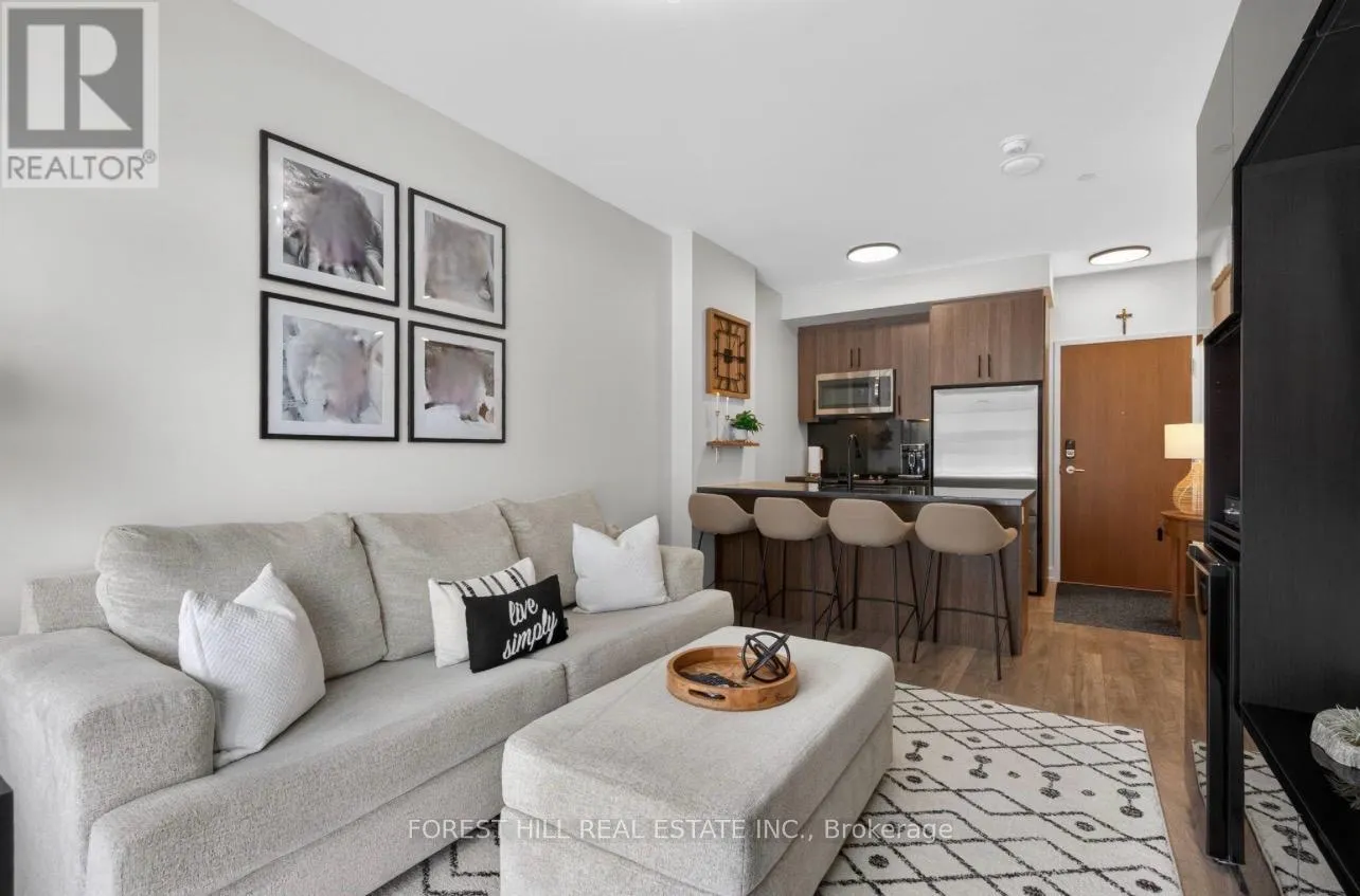 Friday Harbour/Big Bay Point Welcome to waterfront living at its finest! This immaculate, east-facing ground floor 1-bedroom, 1-bathroom unit showcases true pride of ownership. Beautifully maintained and tastefully decorated, this fully equipped open-concept suite is completely move-in ready, just unpack and enjoy. The bright living space flows seamlessly into the kitchen and dining area, creating an inviting atmosphere for everyday living.