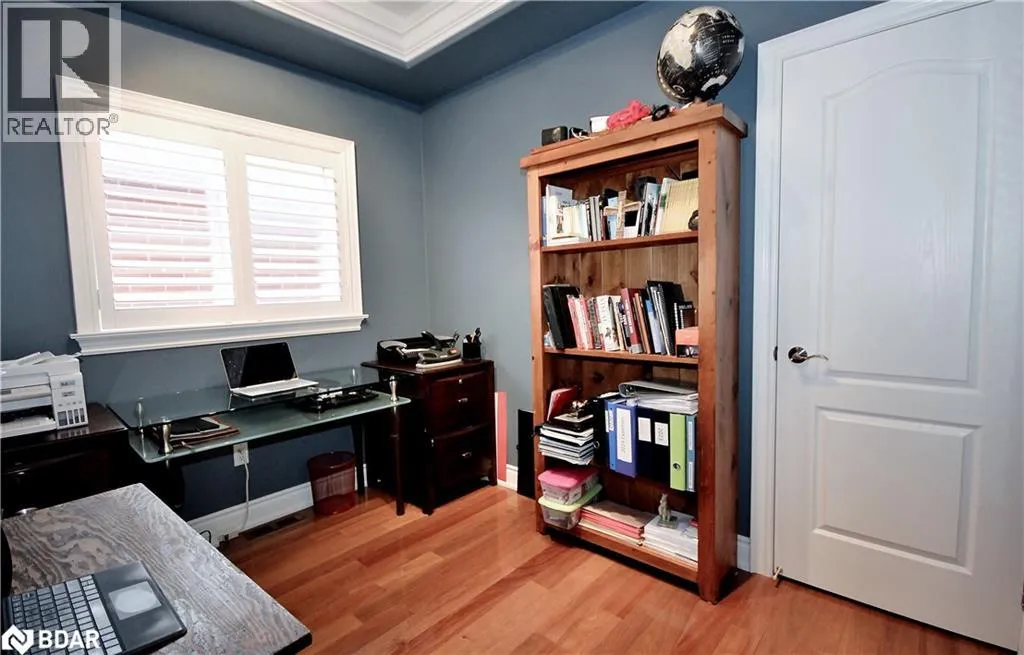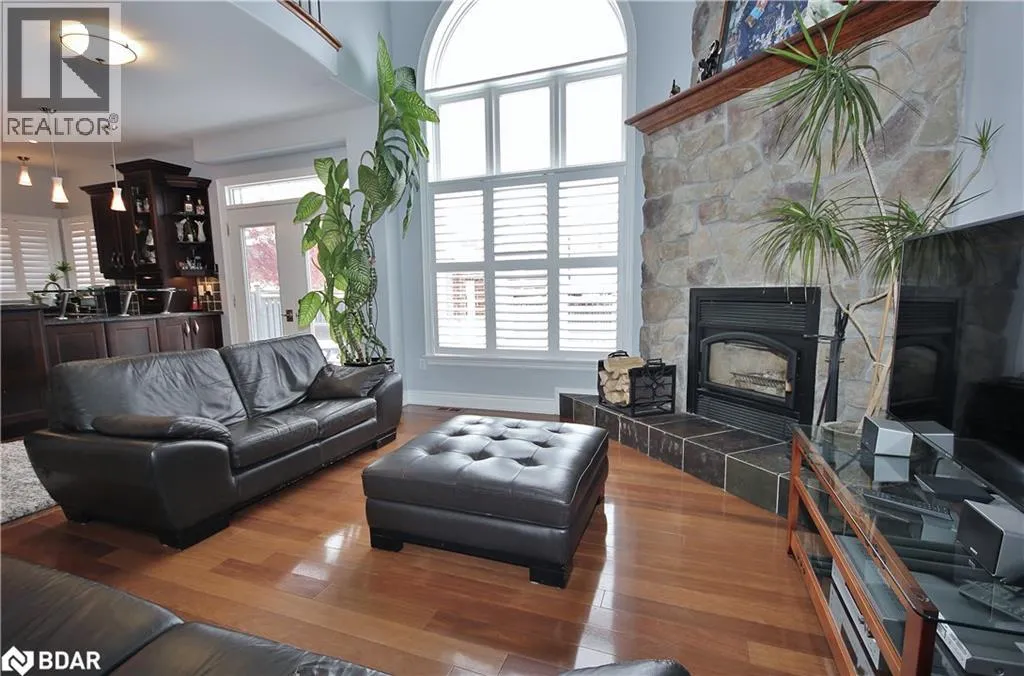 A striking wood-burning fireplace with a full-height stone façade anchors the space, creating a warm and inviting atmosphere. The main floor features a dedicated office, convenient laundry room, and a chef-inspired kitchen that flows seamlessly into the living and dining areas. Upstairs, generously sized bedrooms provide comfort and privacy, while the finished basement offers a completed 4-piece bathroom and a rough-in for a future barâideal for hosting guests or creating your dream rec room. Outside, enjoy a charming brick and stone shed for added storage and functionality. The double car garage adds convenience, and the quiet court location ensures peace and privacy. This home is a rare blend of luxury, character, and thoughtful designâperfect for families seeking space, style, and sophistication (id:27476)