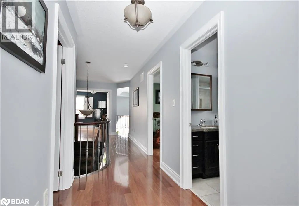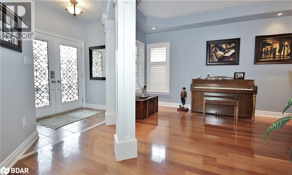 Innisfil Beach Road/Jans Blvd South/Mitchell Court Stunning Custom 2-Storey Home on a Quiet Court Welcome to this beautifully crafted 4+ bedroom, 4-bathroom residence offering approximately 2400 sq ft of elegant living space. Nestled on a serene court, this home boasts exceptional curb appeal with an interlock driveway, walkways, and a spacious backyard patio perfect for entertaining. Step inside to discover a grand oak staircase with wrought iron railings, open to below, leading to a soaring family room open to above.