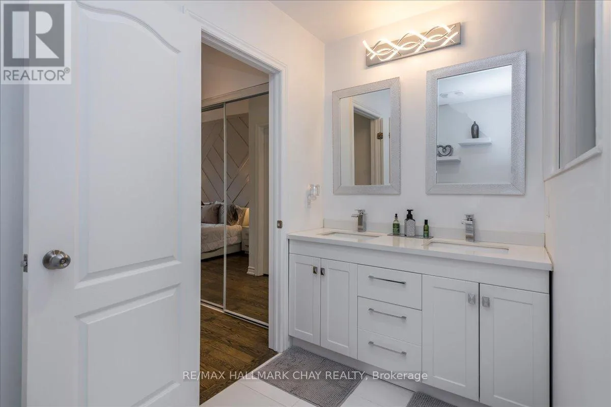 The stunning eat-in kitchen is beautifully appointed with stainless steel appliances, a breakfast bar, and stylish backsplash-perfect for family meals and hosting guests. The main-floor primary suite offers a private retreat complete with a walk-in closet and a beautifully updated ensuite bathroom. Upstairs, two generously sized bedrooms provide comfortable accommodations for family or guests and share a modern full bathroom. The fully finished lower level expands the living space with a large family room ideal for movie nights or relaxing evenings, along with an additional bedroom, full bathroom, cantina, and ample storage. Enjoy outdoor living in the fully fenced backyard featuring a patio, gazebo, and dedicated barn area with natural gas line-perfect for summer entertaining. KEY UPDATES: Kitchen, primary and basement bathrooms, front entry and garage doors, flagstone walkway and patio, select flooring, stair runner, trim, pot lights, and paint. Additional highlights include a 4-car driveway with no sidewalk, double garage with inside entry, attractive brick and stone exterior, covered front entryway, and impressive 9' and vaulted ceilings on the main floor. AREA HIGHLIGHTS: Fantastic location in Alcona, close to the waterfront of Lake Simcoe and Innisfil Beach Park. Enjoy nearby parks, schools, shopping, and restaurants along Innisfil Beach Road, with convenient access to Highway 400 and just minutes to Barrie. The perfect layout for growing or extended families! (id:27476)