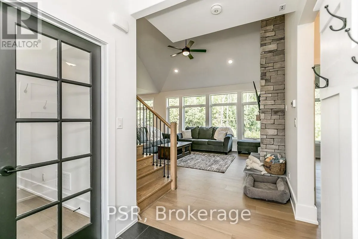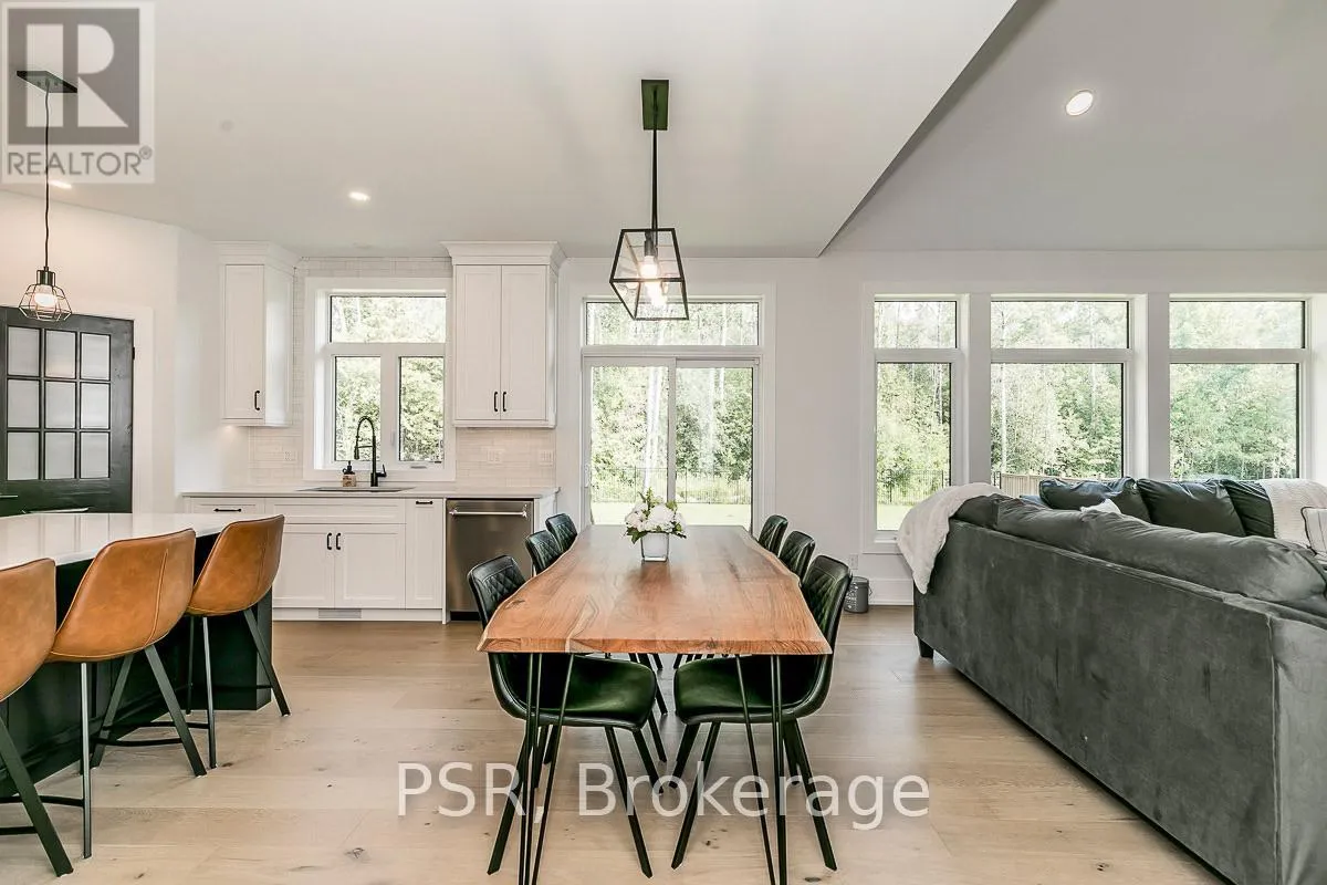 20th Sideroad, and Killarney Beach Road This stunning 2022 custom-built bungaloft combines modern luxury, thoughtful design, and natural surroundings. Perfect for those seeking a peaceful retreat just steps from Lake Simcoe. Backing onto a protected conservation area, the home offers nearly 2,200 sq/ft of beautifully finished living space, featuring white oak flooring, vaulted ceilings, and expansive windows that flood the interior with natural light and forest views.