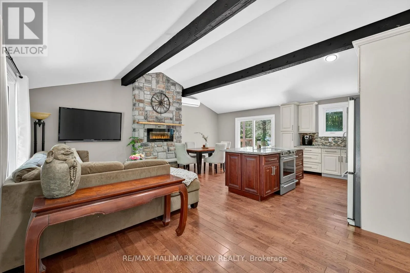 Spacious Kitchen Features Granite Counters, Stainless Steel Appliances, Backsplash, Double Sink, & Large Centre Island, Perfect For Preparing Any Meal With Lots Of Extra Cabinet Space! Conveniently Combined With The Dining Area, Walk-Out To The Backyard Wrap Around Pressure Treated Wood Deck, Ideal For Hosting Family Summer BBQ's Or Enjoying Your Morning Coffee! Living Room With Gorgeous Stone Accent Electric Fireplace & Large Windows Overlooking The Front Yard. 3 Large Bedrooms Each With Closet Space & Vaulted Ceilings, Plus A 4 Piece Bathroom With Granite Counters. Backyard Is Surrounded By Mature Trees, Enjoy Tons Of Green Space Perfect For Children To Play Or Add Your Personal Touch! Insulted Crawl Space With Heater. Heat Pump & Ductless A/C Unit (2020). Hardwood Flooring (2018). Granite Counters (2018). 200 AMP Panel In Home + Separate 60 AMP Panel For Garage. Asphalt Shingle Roof (2018). Backyard Deck (2018). Water Filtration System (2023). Perfect Location Just 5 Minutes Drive To Friday Harbour Resort With Activities For The Whole Family To Enjoy, 4 Minute Walk To Big Bay Point Golf & Country Club, & 2 Minutes Drive To Big Bay Point's Dock! All While Still Being Just 15 Mins Away From Barrie, Park Place Plaza, Groceries, Shopping, Parks, Schools, & Highway 400! (id:27476)