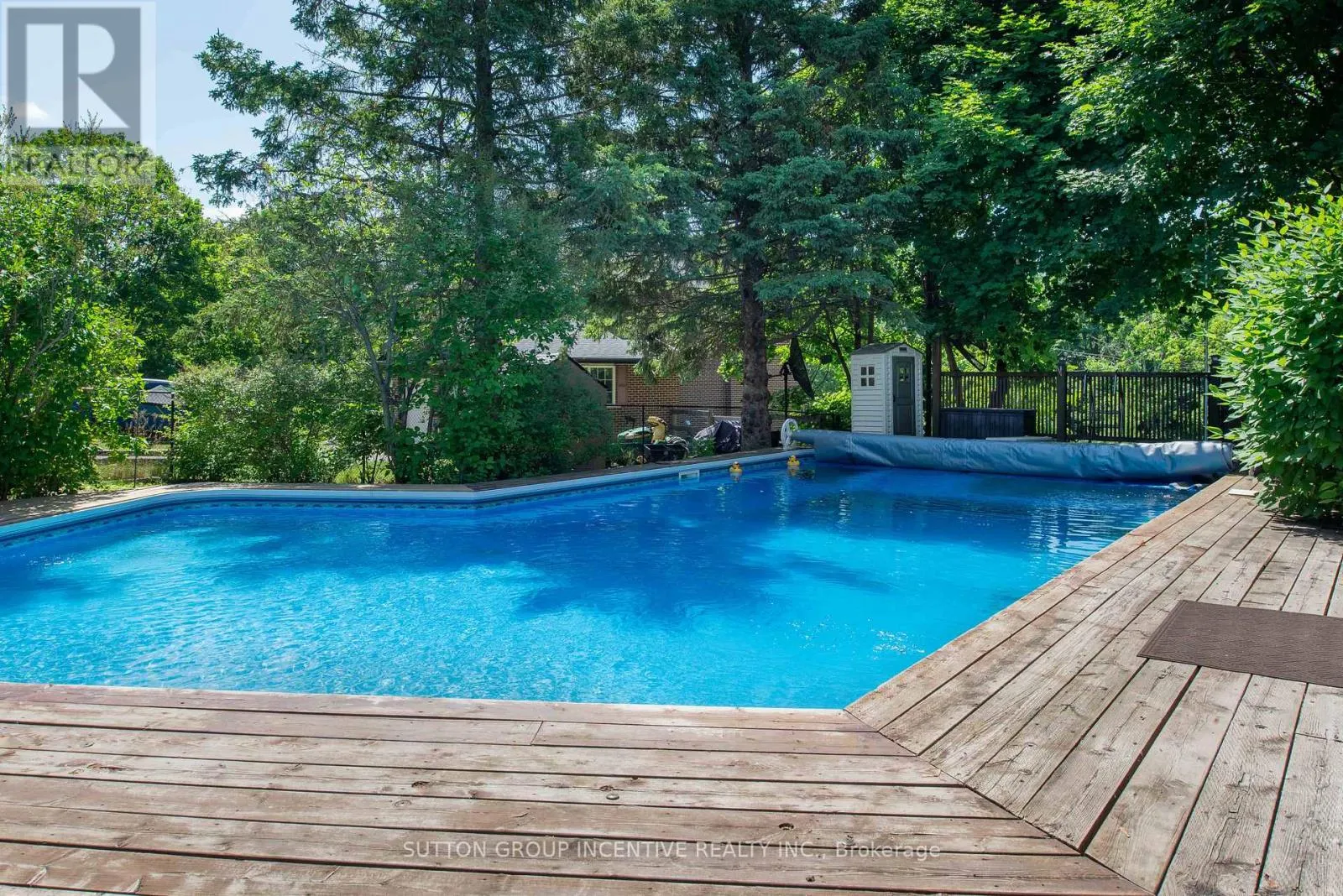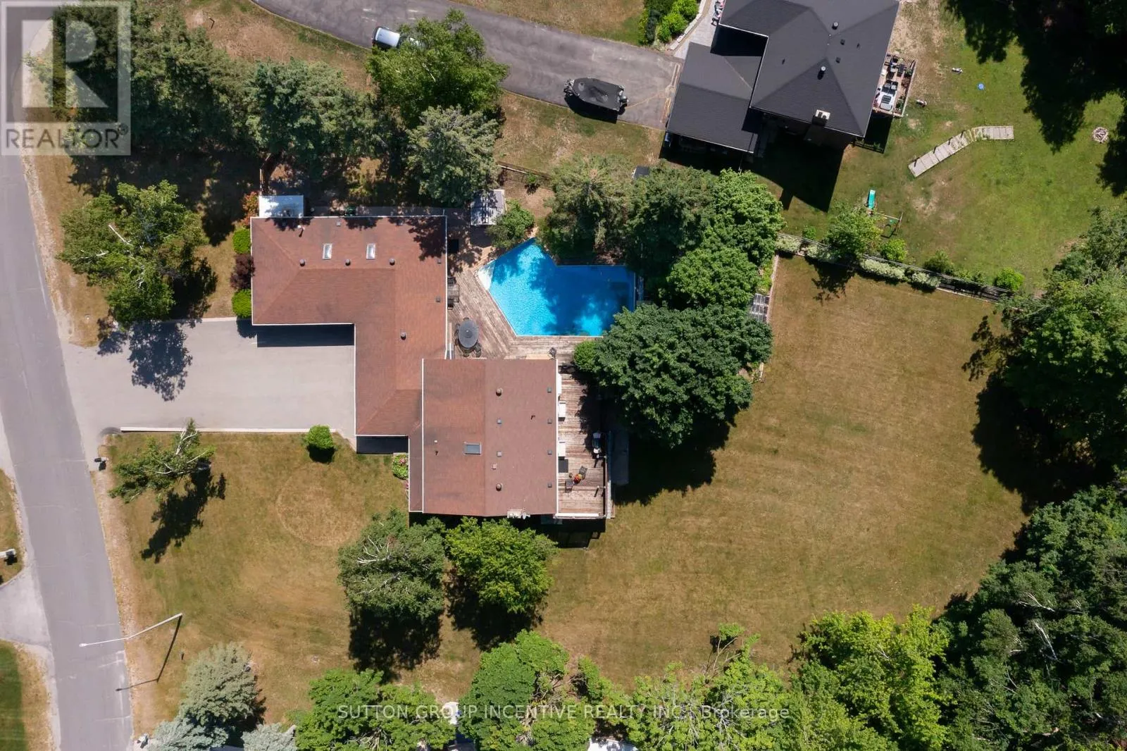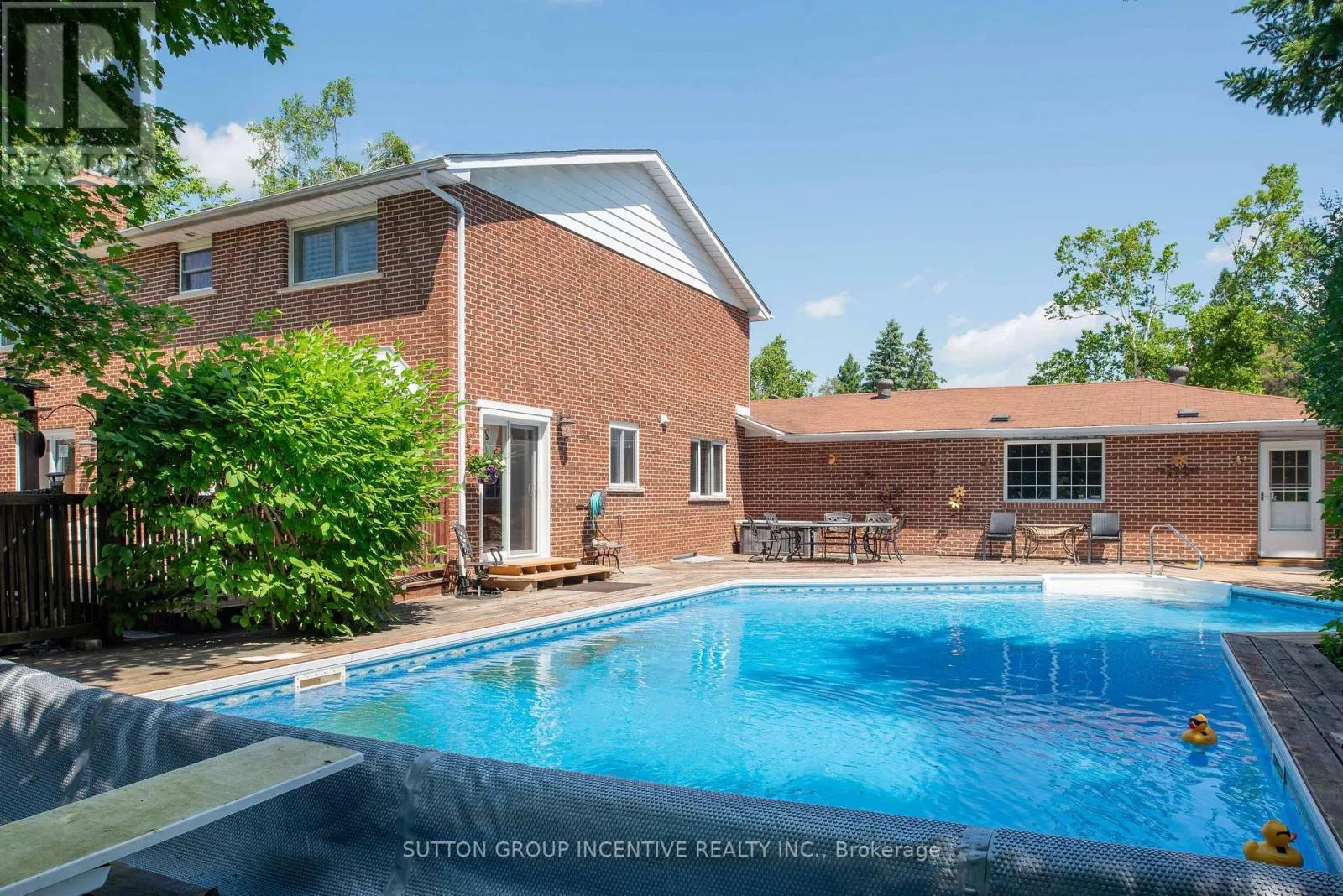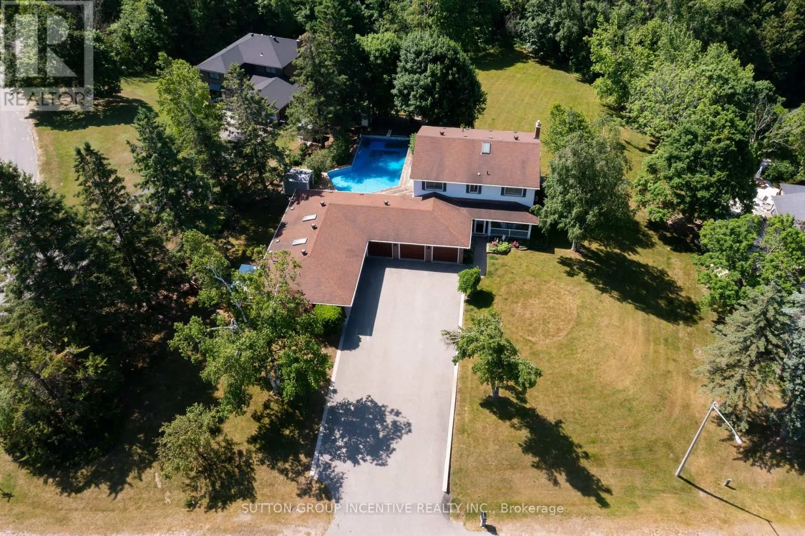 The property features a long driveway leading to a 5-car garage with an additional carport, as well as a spacious deck overlooking the private, treed setting. A 22' x 46' inground saltwater pool is positioned within mature landscaping, creating a peaceful outdoor environment. Inside, the home includes large principal rooms, a functional layout, a gas fireplace, and well-maintained classic finishes, offering a solid foundation for future updates. The walk-out basement provides considerable potential for additional living space, an in-law suite, or recreation areas once completed. This location offers privacy while remaining close to local amenities, schools, and commuter routes, including convenient access to Highway 400, making it suitable for buyers seeking space, flexibility, and long-term value. (id:27476)