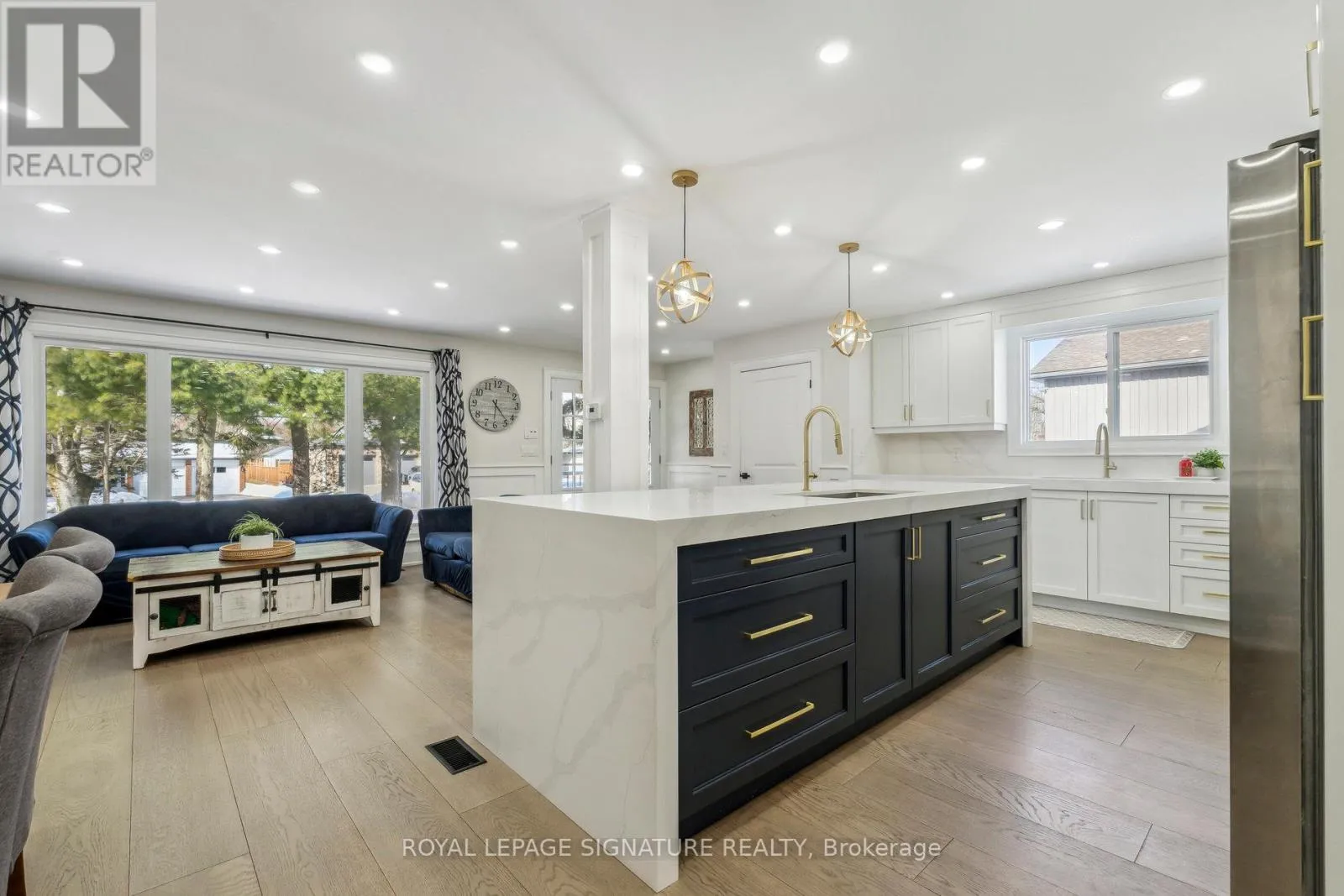 Leslie Dr. & 25th Side Rd. Absolutely Stunning! This fully renovated home has been meticulously upgraded with no expense spared, showcasing remarkable attention to detail. Step through the elegant double-door entry into a bright, open-concept main floor featuring a 3-bedroom layout. The custom kitchen is a chef's dream featuring top-notch appliances equipped with a 60" Whirlpool Fridge & Caloric 36" Stove, a grand island, and a convenient water filler.