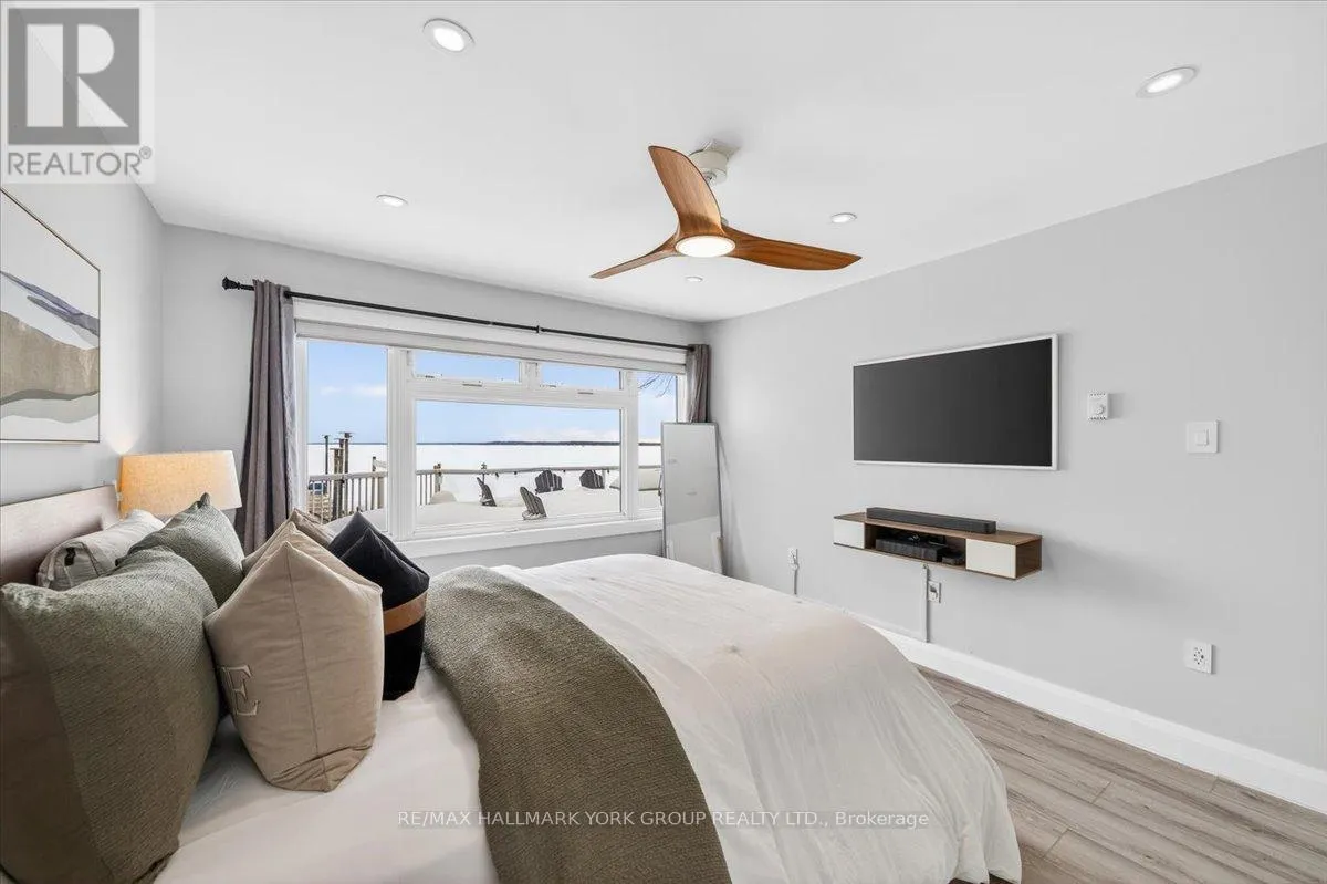9th Line & Leonard St Wake up every morning to breathtaking sunrises and sweeping panoramic views over Lake Simcoe. Set along one of Innisfil's most sought-after stretches of sandy shoreline, this beautifully renovated 4-season waterfront bungalow offers 53.59 feet of rare, natural waterfront and the ultimate turnkey lake lifestyle. Blending timeless charm with modern efficiency, this home features over 2,100 sq ft of open-concept living with vaulted ceilings and expansive windows that frame the lake from multiple angles.