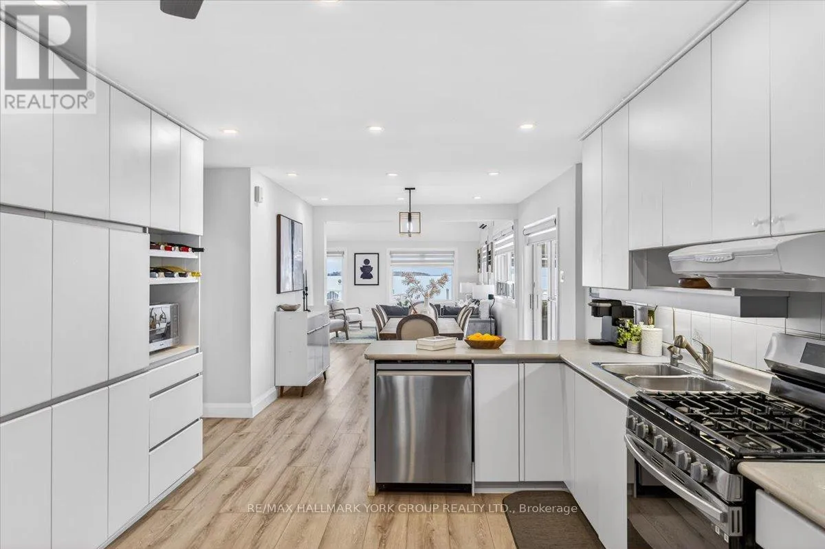 Thoughtfully upgraded throughout with new vinyl floors, pot lights, spray foam insulation for enhanced efficiency, concrete subfloors, and a heat pump system in the living room. Baseboard electric heating with smart thermostats ensures comfort and control in every season. The redesigned kitchen combines style and function with WiFi-enabled smart appliances, including a gas stove. Additional upgrades include a gas tankless water heater, water softener, reverse osmosis system, security cameras, and remote-controlled blinds in the front bedroom - truly move-in ready inside and out. Step outside and embrace waterfront living at its finest. A spacious remodeled deck with aluminum and glass railings overlooks the water, while the backyard firepit creates the perfect setting for summer evenings under the stars. At the shoreline, enjoy a 30-ft dock, a 15x10 lakeside seating area, plus a boat lift and 3 jet ski lifts, designed for effortless days on the lake. Out front, a detached garage with a Tesla charging station, upgraded interlock walkway, and ample parking add convenience and curb appeal. Whether you're boating, entertaining, or simply enjoying the peaceful rhythm of the water, this move-in ready lakefront retreat delivers comfort, style, and year-round recreation on one of Lake Simcoe's most desirable sandy shorelines. (id:27476)