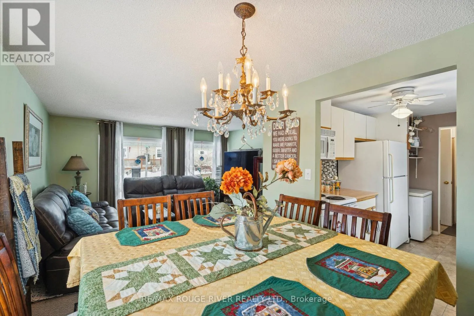 The adjoining dining area flows into a functional kitchen offering ample cabinetry, generous counter space. The home includes two comfortable bedrooms, including a peaceful primary suite with large windows, along with a versatile second bedroom perfect for guests, hobbies, or a home office. At the back of the home, an additional finished space provides exceptional flexibility-perfect as a large family room, entertainment area, craft space, or easily utilized as a 3rd bedroom-and features a walkout to a private deck that extends into the backyard for peaceful outdoor enjoyment. A clean, well-kept bathroom, dedicated laundry area, and thoughtful storage throughout add everyday convenience. The property is surrounded by mature landscaping and enjoys a quiet location within this beautifully maintained 300-acre community filled with greenery and walking paths. Enjoy resort-style amenities including three full clubhouses featuring two outdoor heated pools, a fully equipped fitness centre, shuffleboards, darts, billiards, hobby and craft rooms, a woodworking shop, libraries, social lounges, dedicated event spaces, and a full calendar of activities such as dances, theatre nights, bingo, cards, exercise classes, arts and crafts, and community gatherings. The on-site Sandycove Mall adds everyday convenience with a drugstore, variety store, restaurant and caf, hair salon, clothing boutique, and foot-care clinic, while professional management provides snow removal, grounds care, and community maintenance for a low-stress, maint free lifestyle. (id:27476)