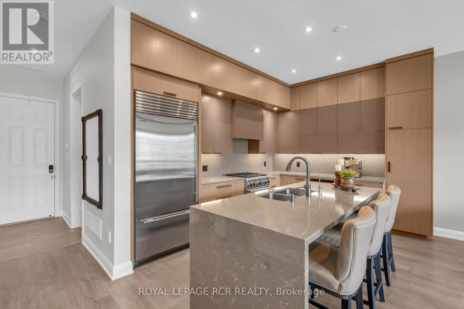 Ferretti Court and Riva Ave. Welcome to your dream escape in the prestigious Ferretti Island enclave at Friday Harbour Resort. This fully furnished, remodelled 3-storey waterfront townhouse offers elegance, and comfort. Inside are three+spacious bedrooms, including a primary with a unique bonus office space, plus 3 spa-inspired bathrooms and, a newly remodelled designer powder room. The open-concept main level showcases a stunning Bateman custom kitchen with Wolf and Sub-Zero appliances, waterfall quartz countertop, abundant storage with pull-out drawers, and an extra-deep oversized double sink.
