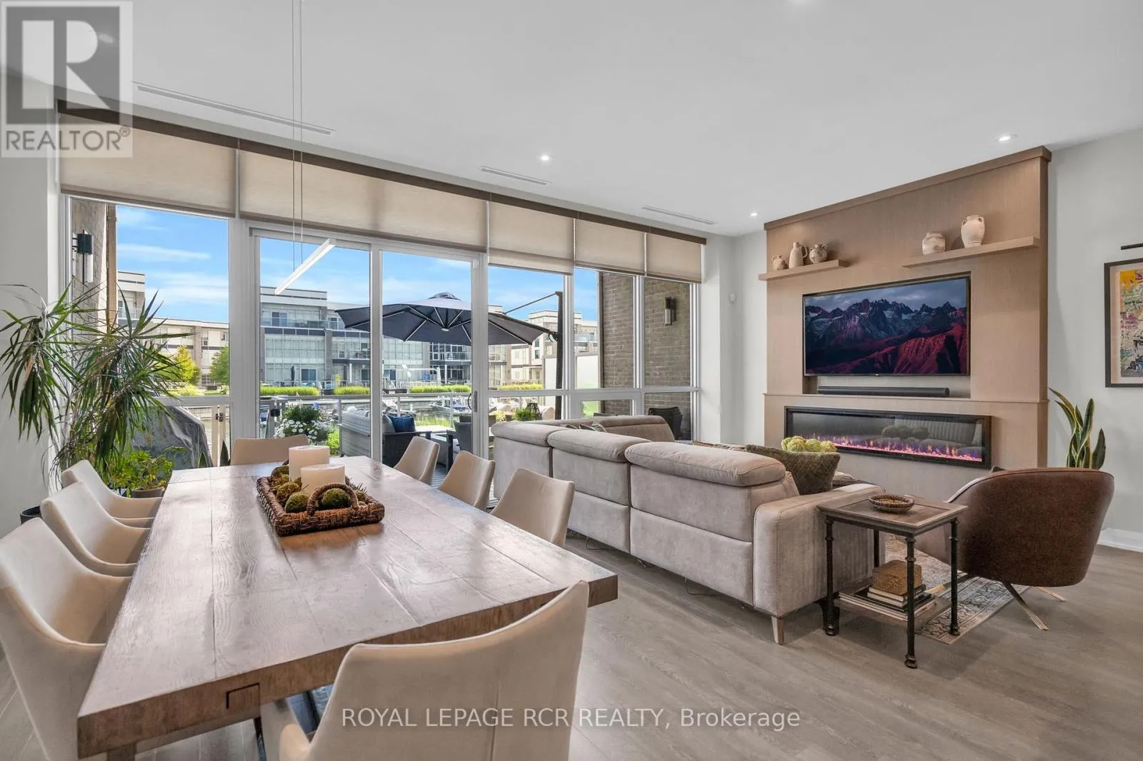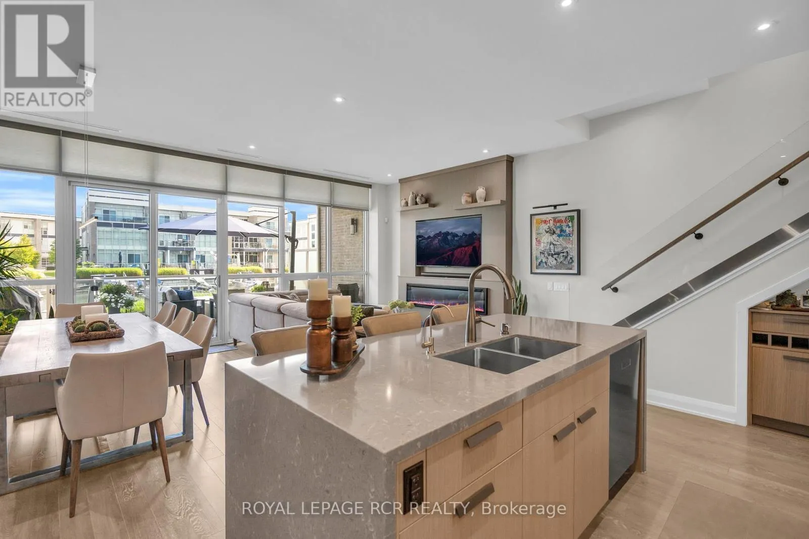 The space flows seamlessly into the dining and living areas, perfect for everyday living and stylish entertaining. Expansive windows and electric - floor to ceiling blinds fill the home with natural light and provide privacy when required.Designer built-ins, two custom fireplaces, made to measure closets, and pot lights throughout, add warmth, character, and functionality. The third floor offers a flexible layout ideal as a guest bedroom or a spacious great room.Outdoor living is exceptional, with expansive decks and terraces for true indoor-outdoor enjoyment. A waterfront deck, private boat slip with an extra-long, wide dock, and a newly installed safety gate are all perfect. *With the inclusion of premium furnishings from Restoration Hardware, Hauser, and Fouka, this is both a move-in ready home and a vacation retreat. Enjoy resort access to the world-class marina, beaches, nature trails, vibrant boardwalk, waterfront dining, championship golf, and year-round activities. Simply arrive, unpack, and embrace the ultimate waterfront lifestyle. Resort Association Fees: $5281.17/year (for all Amenities incl. pools, lake club, fitness ect.). Monthly Resort day to day fees (garbage, gardens, ploughing ect): $299.96. Local condo Resort fees (specific to Ferretti area & common elements): $381.45. 2% + hst Friday Harbour entry fee based upon purchase price. (id:27476)