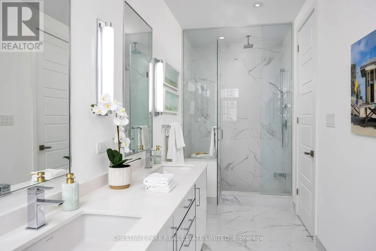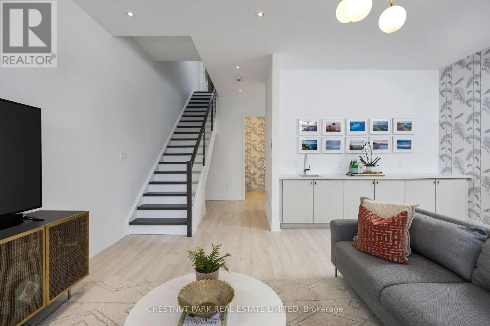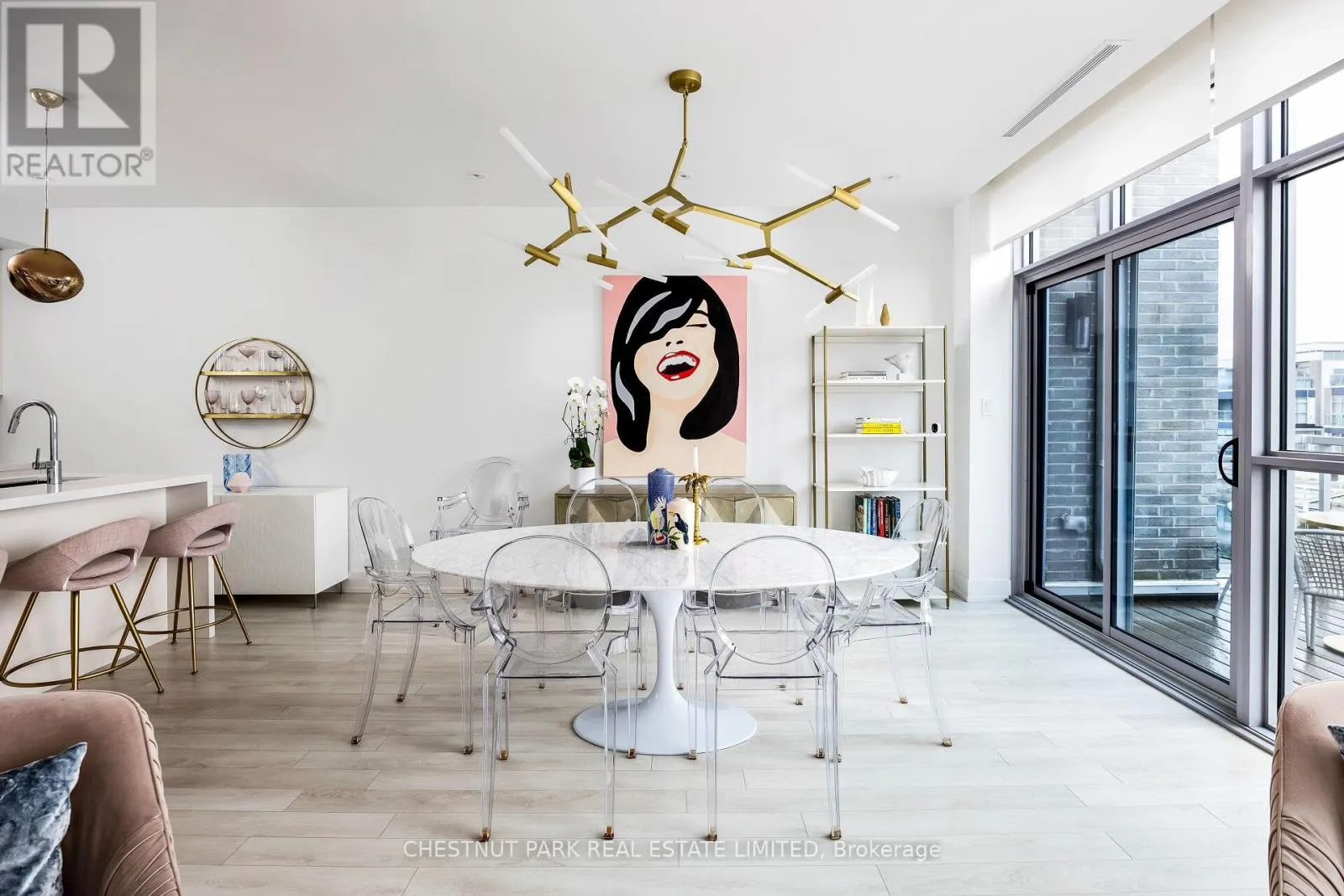 Soaring ceilings, oversized floor-to-ceiling windows, and a premium west exposure carry the light, the sunsets, and the water through every level. The ground level opens with a built-in 2-car garage, an oversized Statuario Venato tile foyer, and an entertainment room with a full built-in bar that walks out to the deck and the boat slip. The second level is the heart of the home: open-concept Paris Kitchens cabinetry, a quartz waterfall island, KitchenAid stainless steel appliances, and a living and dining room that flow out to a glass-railed balcony. The primary suite anchors this floor with a walk-in closet and a five-piece ensuite featuring a soaker tub and oversized glass shower. The third level holds two further bedrooms, each with a private ensuite, opening to a generous terrace. Mangusta residents enjoy exclusive use of a private pool and cabana - shared only among the island's 68 owners. Full Lake Club access includes pool, hot tub, restaurant, fitness centre, and theatre. The Nest golf course, the 200-acre nature preserve, and Mount St. Louis Moonstone are minutes away. Highway 400 keeps Toronto close. A fully furnished, turn-key option is available, including the boat and golf cart. Newly priced at $1,499,000 - a deliberate move, made with intent. The right buyer will recognize it on first walk-through. (id:27476)