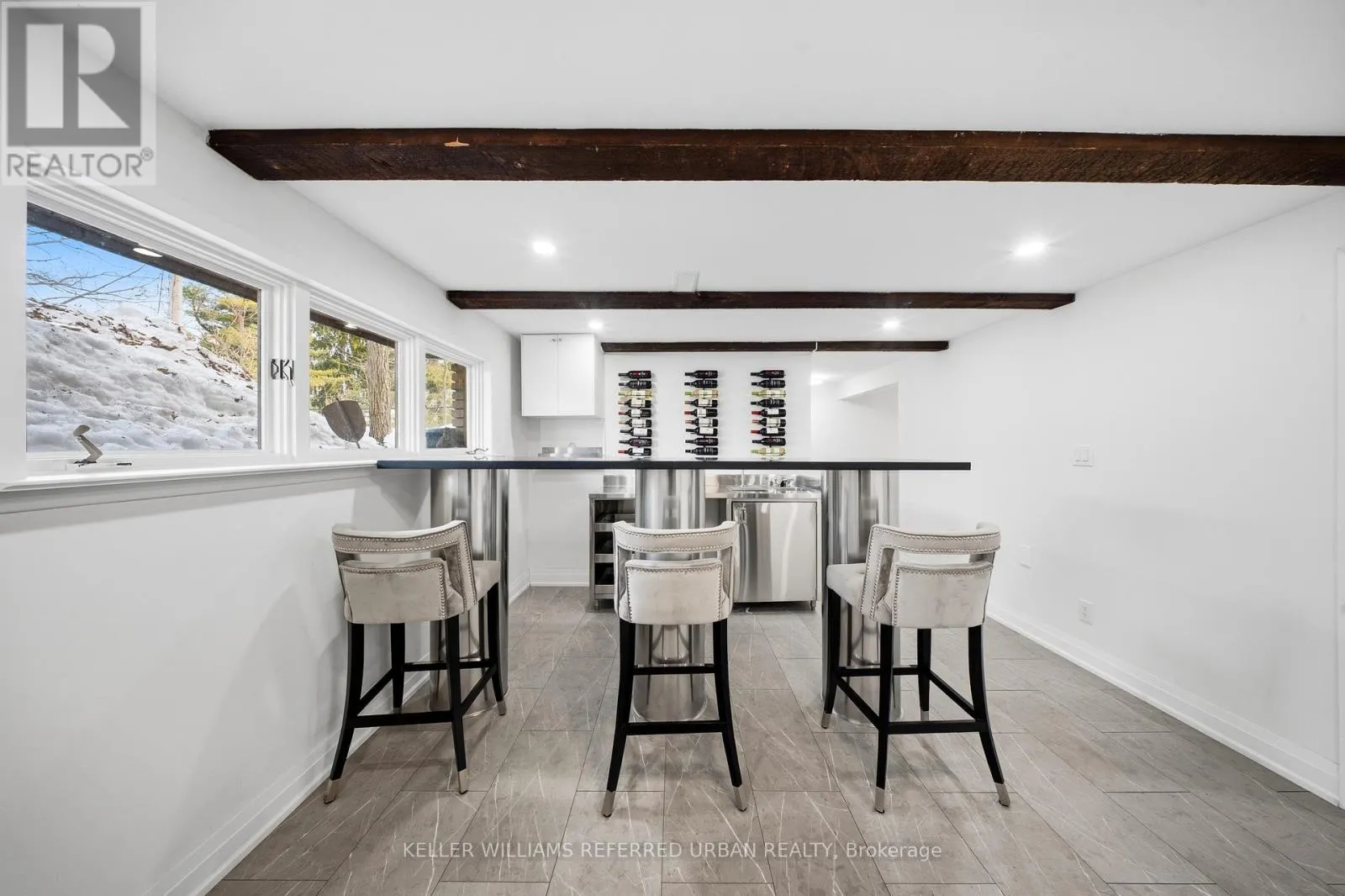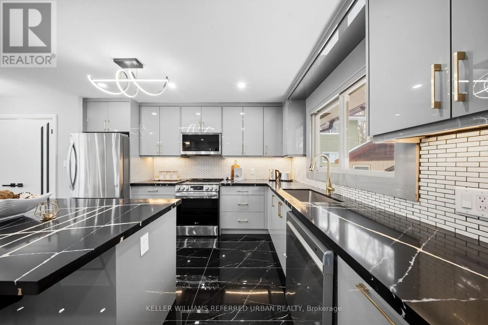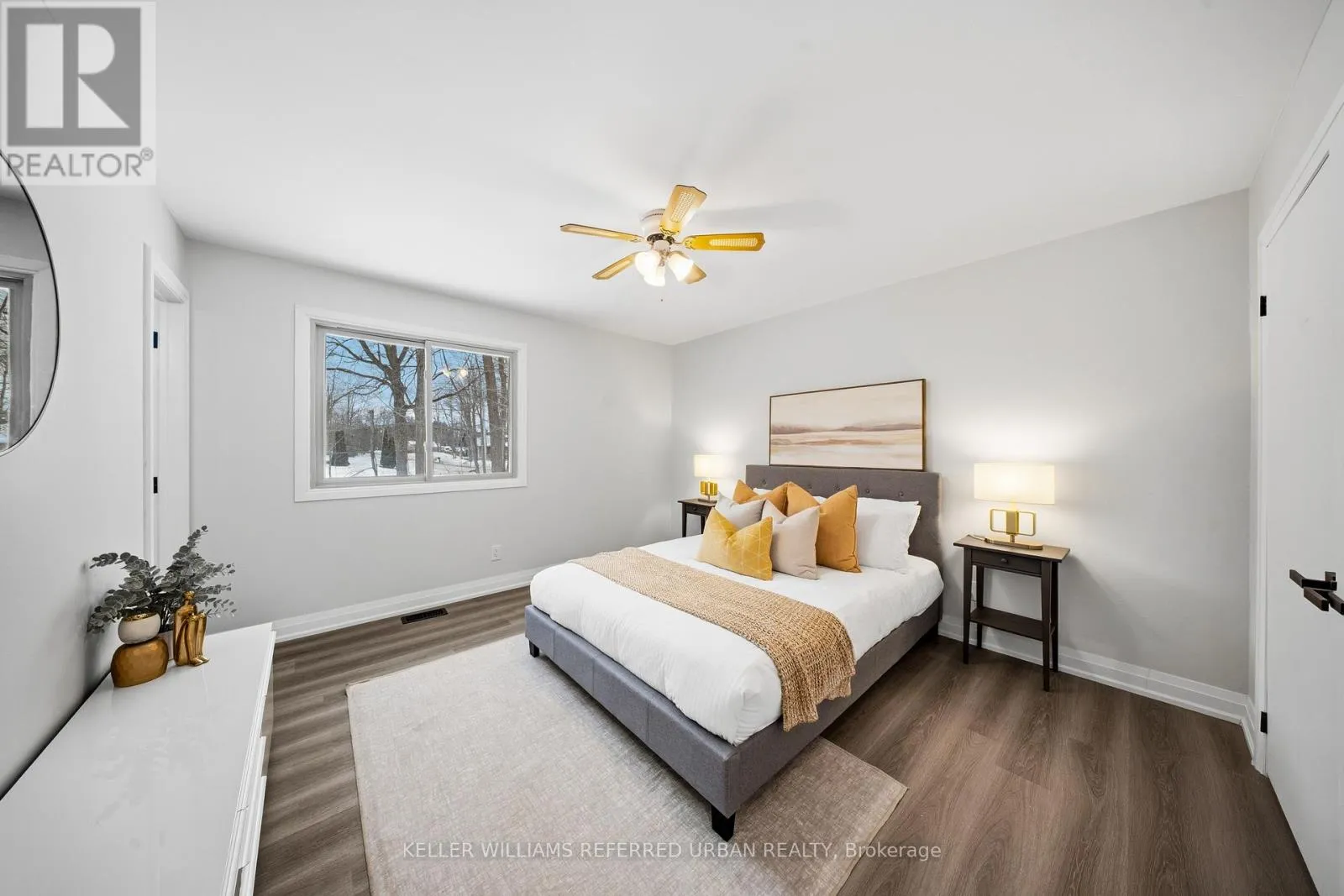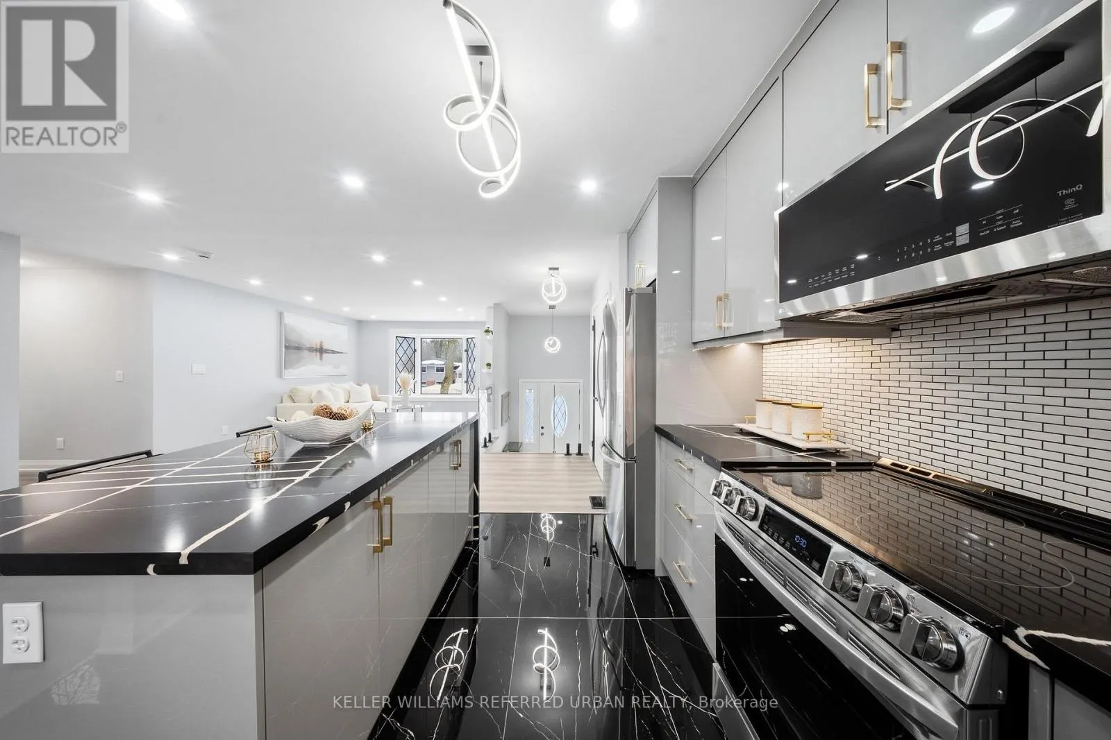 The bright open-concept layout creates an impressive great room ideal for entertaining, anchored by a welcoming living area featuring an electric fireplace, custom built-in shelving, and a sun-filled bay window that floods the space with natural light. The brand new designer kitchen is a true showpiece, complete with granite countertops, new stainless steel appliances, and an oversized island perfectly suited for hosting and everyday living. Retreat to the large primarily newly renovated 3-piece ensuite and beautifully updated spa-inspired bathrooms. Comfort and efficiency are enhanced with newer exterior & garage insulation, updated windows and doors, newer basement insulation, and a durable metal roof (under 15 years) with updated roof insulation. Outdoors, enjoy a spacious two-tier deck large enough for a gazebo, a 24 x 16 ft detached workshop, a garage with convenient backyard access, and a new gravel driveway at the rear for extra parking for your trailer and toys. Ideally located just 5 minutes from Friday Harbour Resort and 15 minutes to Barrie and Highway 400, this remarkable property seamlessly blends lakeside living, privacy, and luxury. (id:27476)