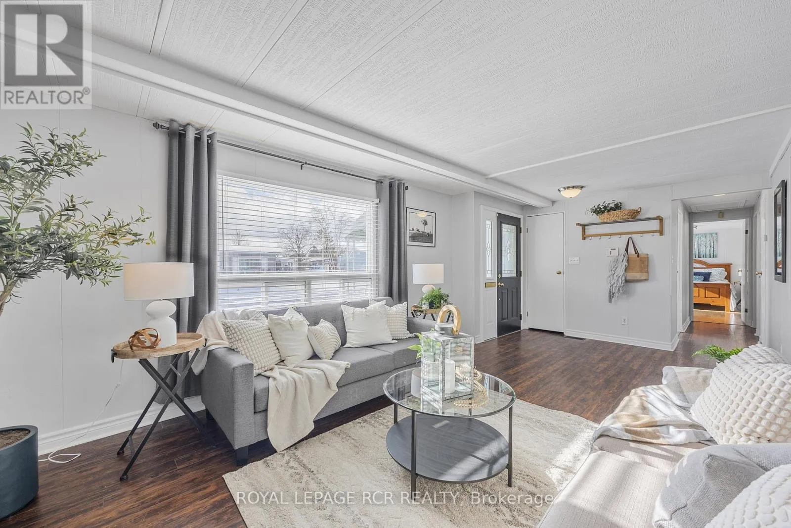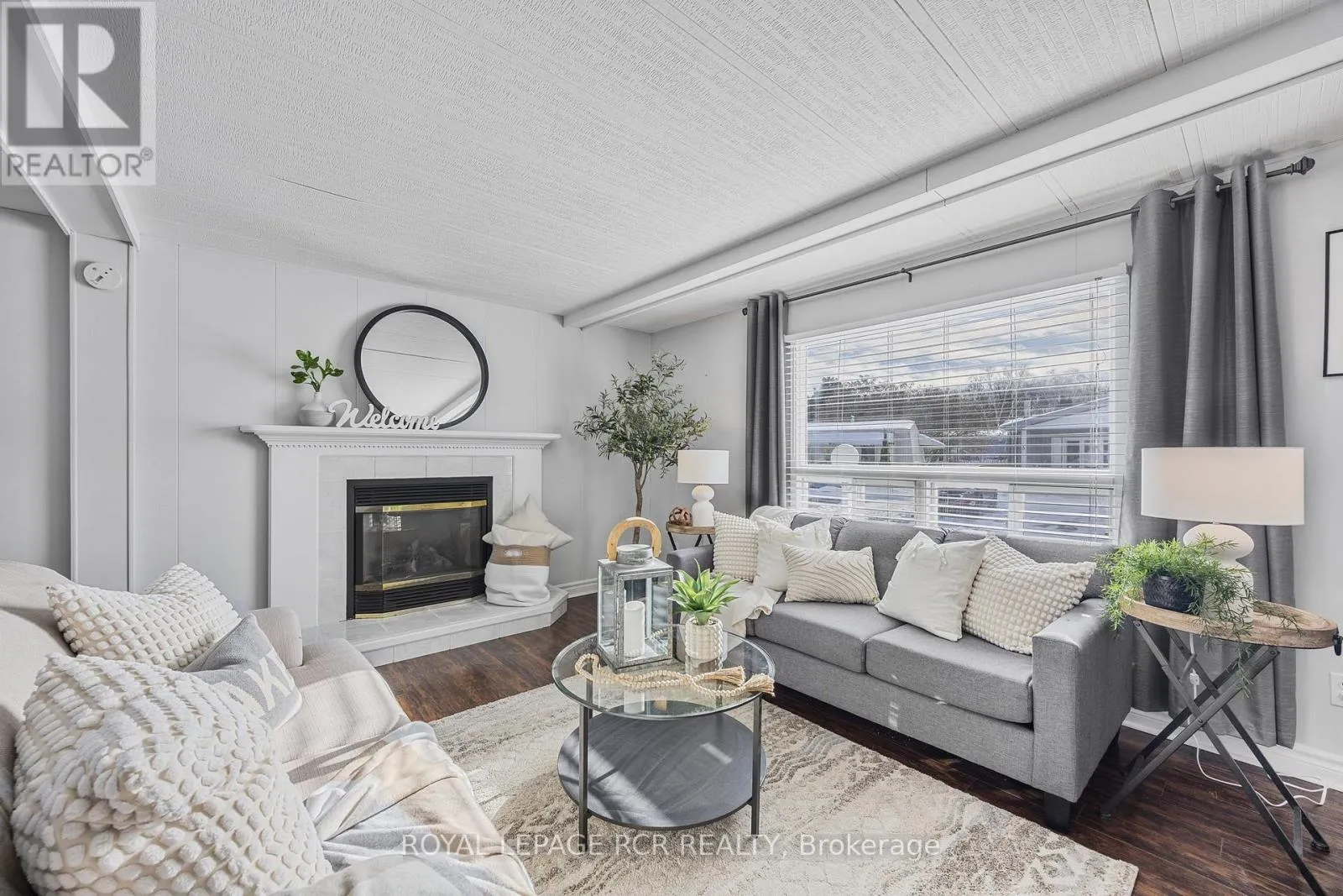 Lockhart to Weeping Willow Welcome Home! This Beautiful Monaco Style One Level Land Lease Home in the Adult Lifestyle Community of Sandy Cove Acres is Almost 1400 sq ft and is Bright and Spacious. Brand New Grey Flooring Throughout . Open Concept Dining Room and Living Room with Gas Fireplace. Two Bedrooms, Two Bathrooms, 2 Private Parking Spaces. Large Kitchen with Stainless Steel Appliances and Lots of Storage.