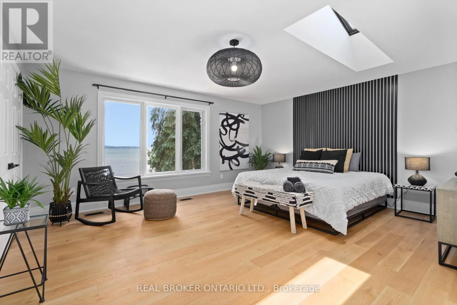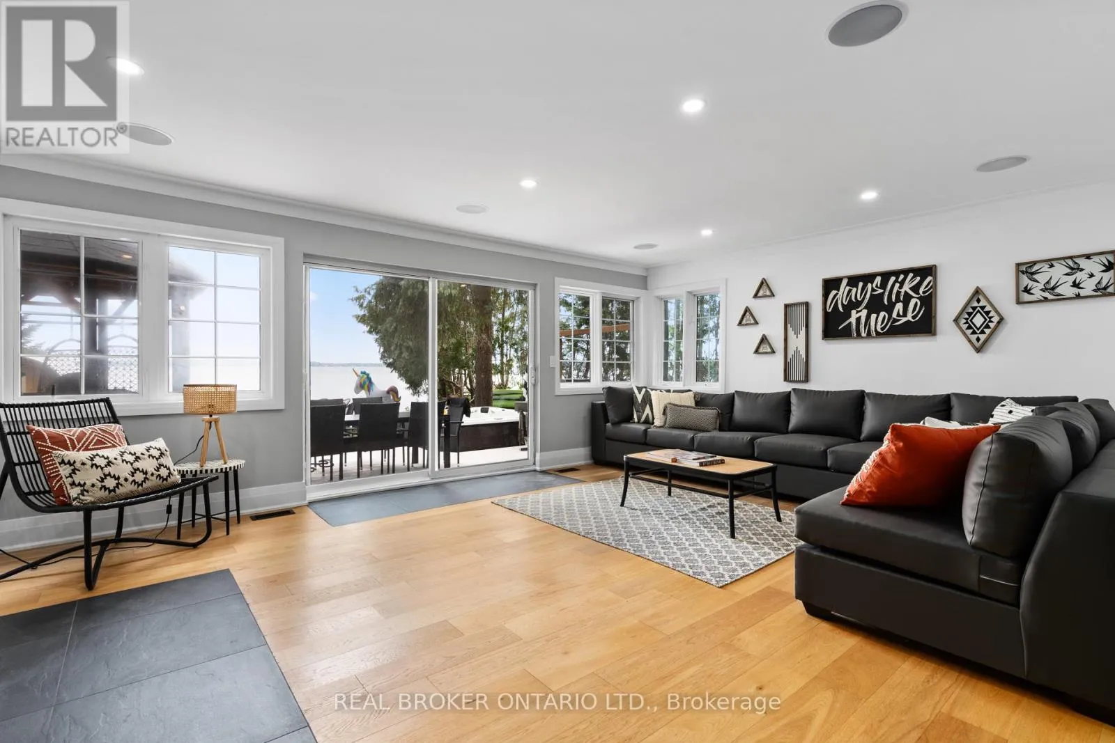 KILLARNEY BEACH AND EWART ST Stunning fully renovated waterfront home on long private property nestled on the shores of Lake Simcoe. With 5 bedrooms plus office (2 being in a private in-law suite) and 5 full bathrooms, this home has room for the whole family! Whether lounging outside by the gas or natural fireplace, out on the custom composite dock, in the 12-person sauna or 8-person hot tub or on the composite deck, you will love every inch.