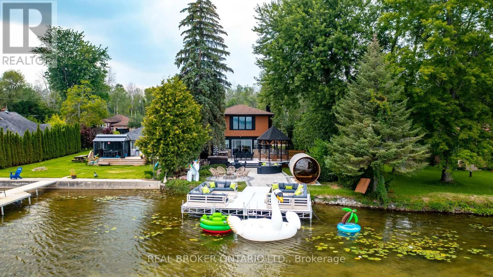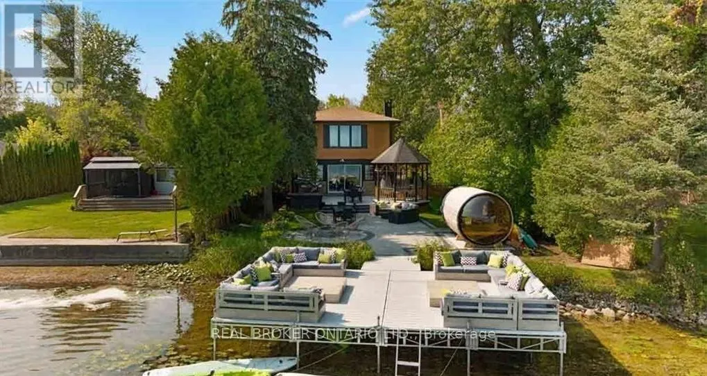 Not to mention inside with master suite facing Lake Simcoe with complete privacy, enjoy dual closets and ensuite. Two wings and staircases to this home are perfect for large families, or for the teenagers to have their own space. Two kitchen areas (both with quartz countertops), two living rooms, and bathrooms at every turn. Cozy up inside with the fireplace while relaxing music plays throughout the whole home's sound system. Dual second floor laundry is just another bonus but with almost everything being 2-4 years young it is turnkey move in ready to say the least. Gas BBQ hookup, parking for 9 vehicles in oversized driveway, 4 car garage (double tandem) and just down from popular marina and restaurant, this lake home will leave you in awe. Dont miss the well-lit up home at dusk with pot lights everywhere or turn off the lights, take in the sunset and enjoy the views under the gazebo. This waterfront beauty has perfection written all over it. 2025 garage door openers, 2024 pressure tank, 2021 Ac, and furnace, 2022 all landscaping and extensive patio areas and firepit, 2022 dock, 2021 hot water tank, 2016 uv system, 2025 uv light, 2025 Professionally painted Benjamin Moore (id:27476)