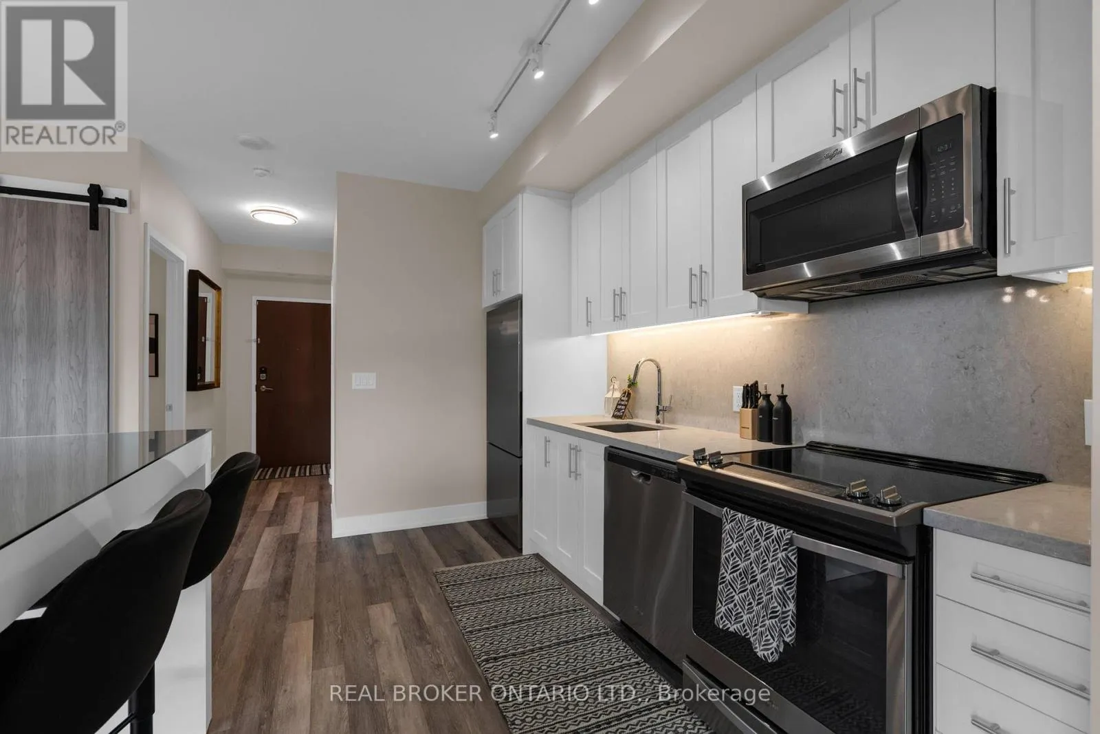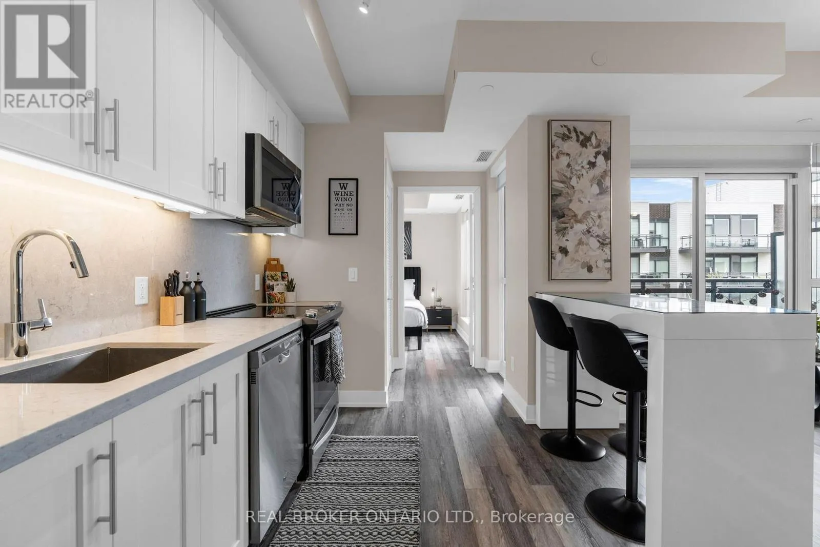 Cross Streets: 25th Side Road & Big Bay Point. ** Directions: . Friday Harbour Resort, a four-season waterfront lifestyle community on Lake Simcoe.This upgraded 2-bedroom, 2-bathroom *corner suite offers over 800 sq ft in one of the *larger 2-bedroom layouts (Green Ash model), featuring a bright open-concept design with floor-to-ceiling windows. The kitchen includes quartz countertops and stainless steel appliances, opening into a functional living and dining space.