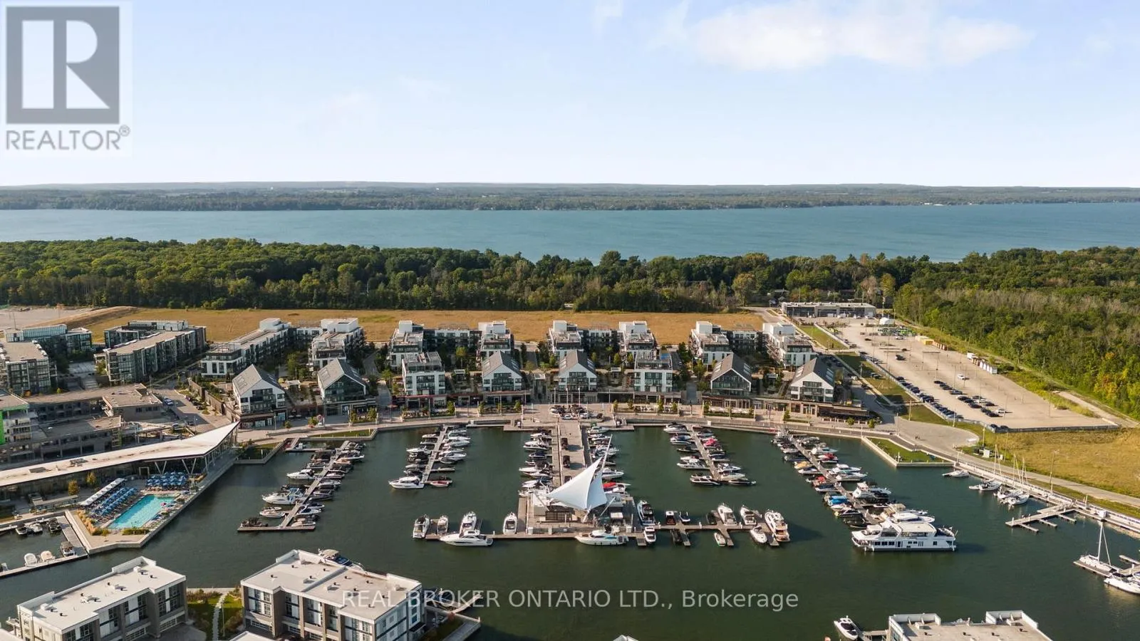Step out onto your private covered terrace *overlooking the courtyard, with *views of the marina and Lake Simcoe. The primary suite features a walk-in closet and ensuite, while the second bedroom offers a generous size for guests or a home office and a separate bathroom. Includes 1 underground parking space and 1 storage locker. Enjoy access to the marina, beach club, boardwalk, restaurants, the Nest golf course, spa, fitness centre, sauna, pools, and over 600 acres of nature trails. A place you can use all year round... or escape to when you need it. *Option to purchase it fully furnished. ***EXTRAS*** Lifestyle investment:$230.60/month lake club fee monthly, $756.86/month condo fee, Annual fee $1,806.80/yr. Buyer to pay onetime 2% plus hst Friday Harbour association fee. (id:27476)