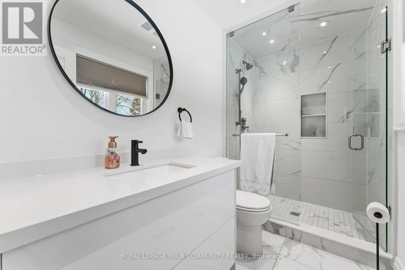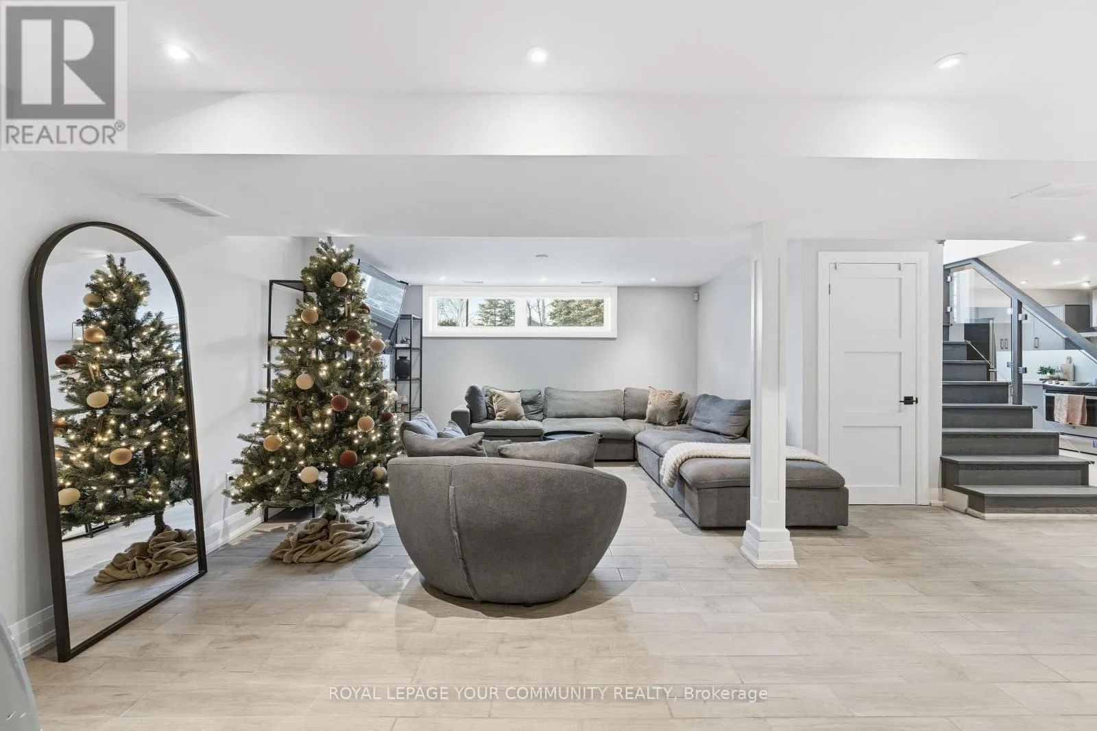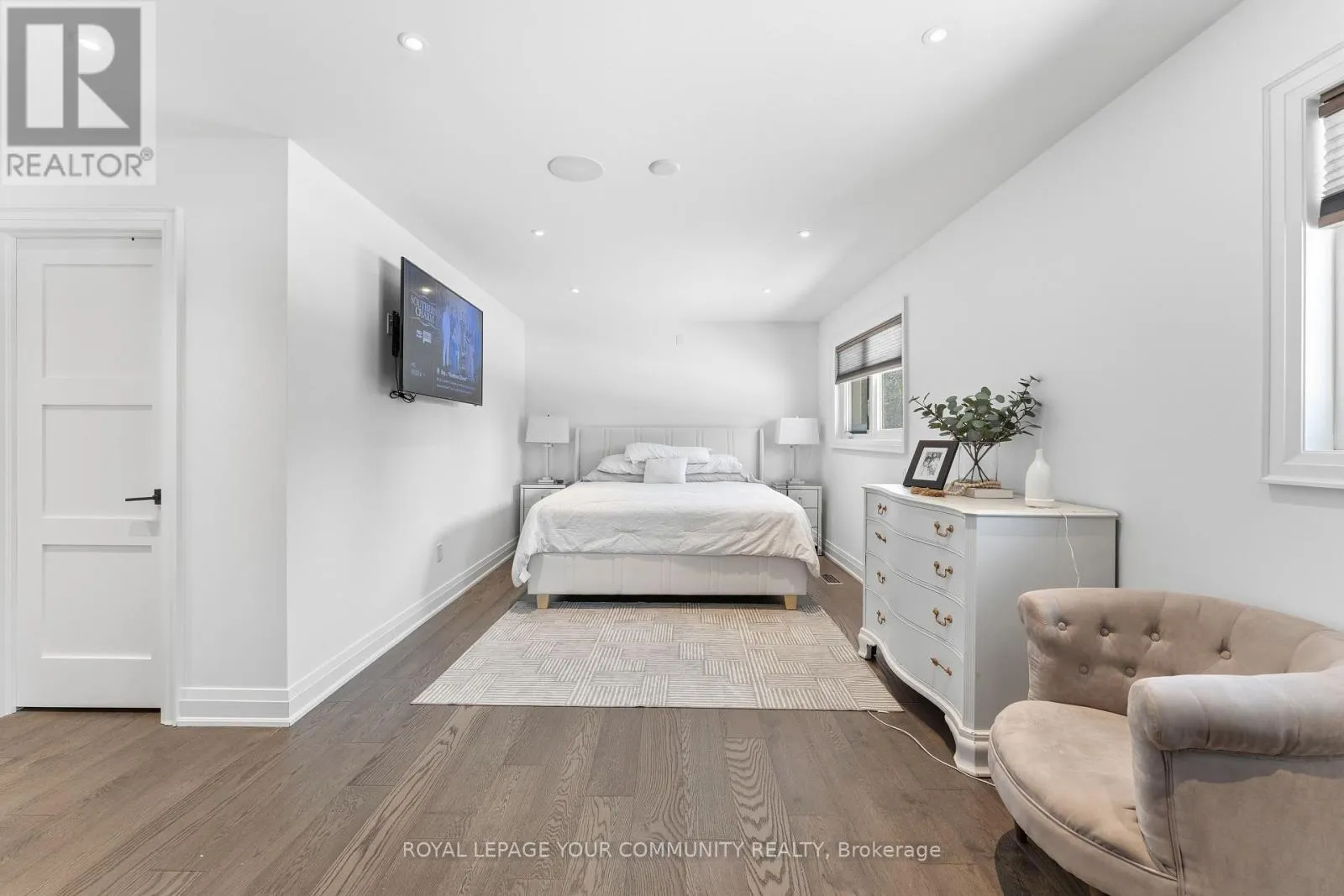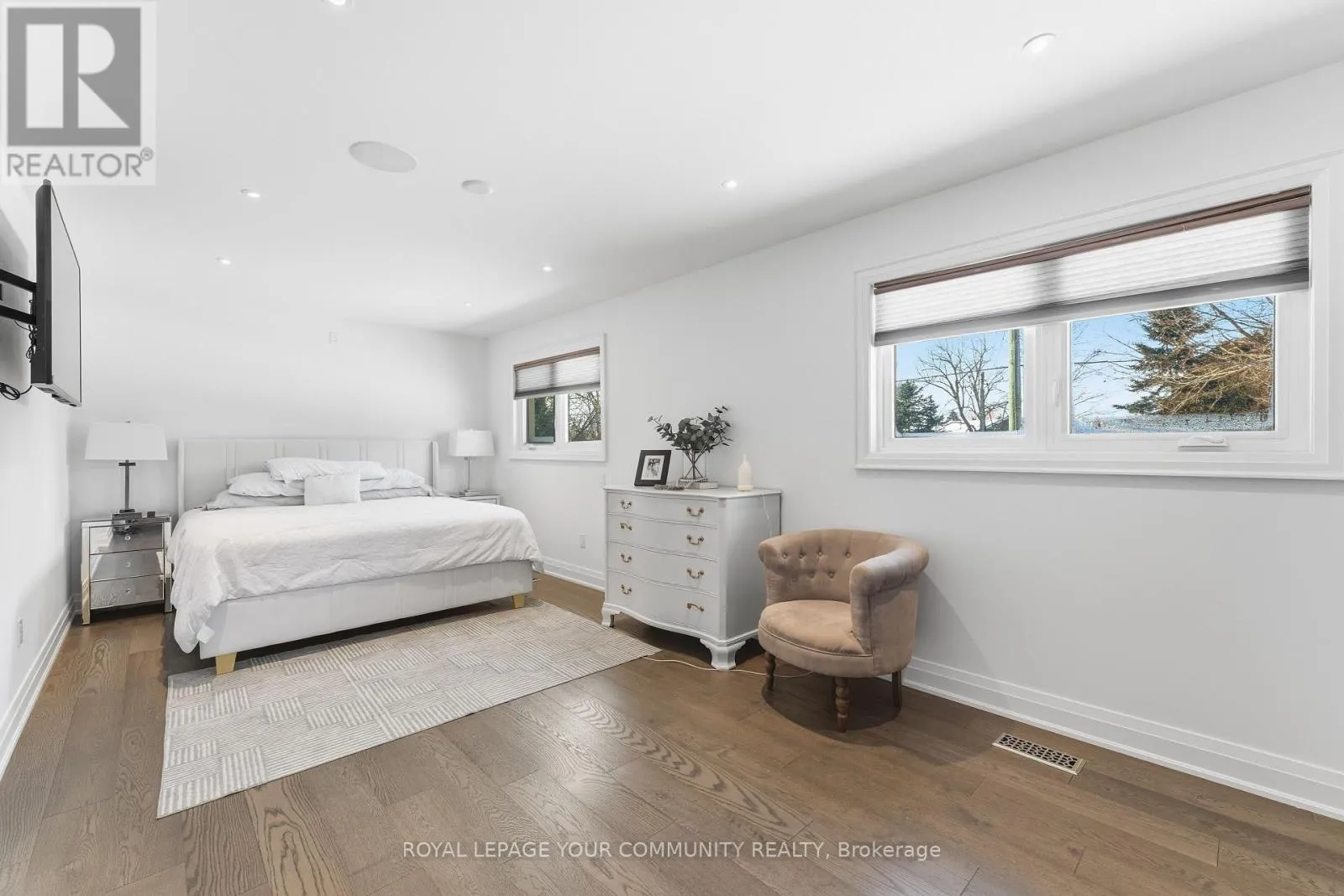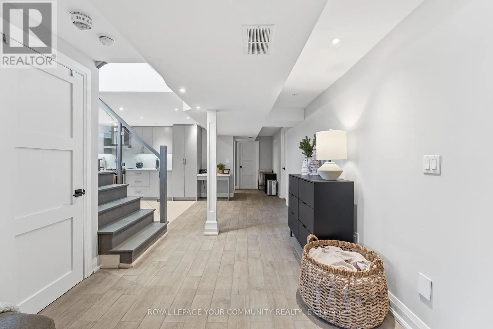 Two spacious primary bedrooms each offer spa-like ensuite bathrooms, walk-in closets with custom organizers, and built-ins. A third bedroom is located on the lower level, also complete with built-ins. The home includes two gourmet kitchens and a bright look-out basement with large windows that flood the space with natural light. (id:27476)