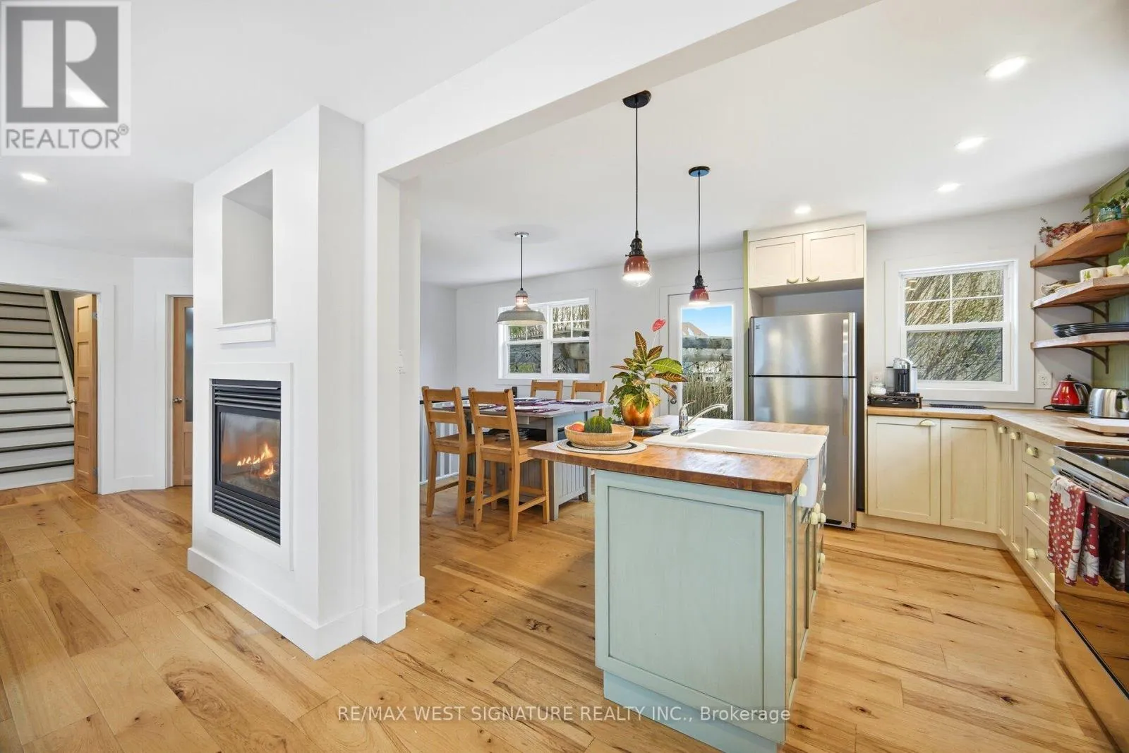 Main St/ Highway 27 /Highway 9 Beautifully appointed home in historic small town Schomberg with a farm house vibe, vintage charm + modern simplicity!! Completely renovated from top to bottom, large open floor plan with bright sun filled windows, wide plank hickory floors, eat- in kitchen with 2 sided gas fireplace + walkout to deck/yard. Main floor office/den/bedroom has many possibilities. Solid wood staircase leads to a large cozy family room, spacious bedrooms & modern bathrooms! Prof fin lower level features a rec rm/gym, premium cork flooring, 4th bedroom & laundry rm with slate floor! Stunning curb appeal with cozy front porch, cobblestone interlock driveway & well set back from road.