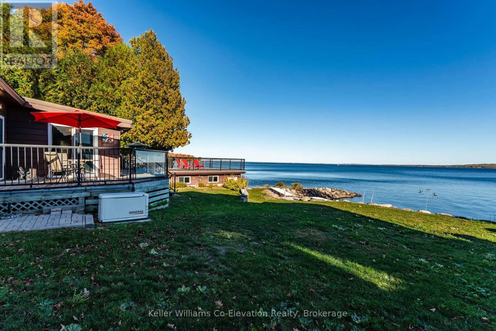 Enjoy panoramic views from the boathouse deck, relax in the hot tub, or spend the day on your sandy beach with deep water for swimming and boating. A detached double garage, Bunkie, and updated windows add convenience, while the steel roof, furnace, A/C, and water heater (all new in 2021) plus a Generac generator provide peace of mind. With its open-concept design, natural light, and warm log interior, this home blends rustic charm with modern comfort-an exceptional opportunity to own a true piece of Georgian Bay waterfront. (id:27476)