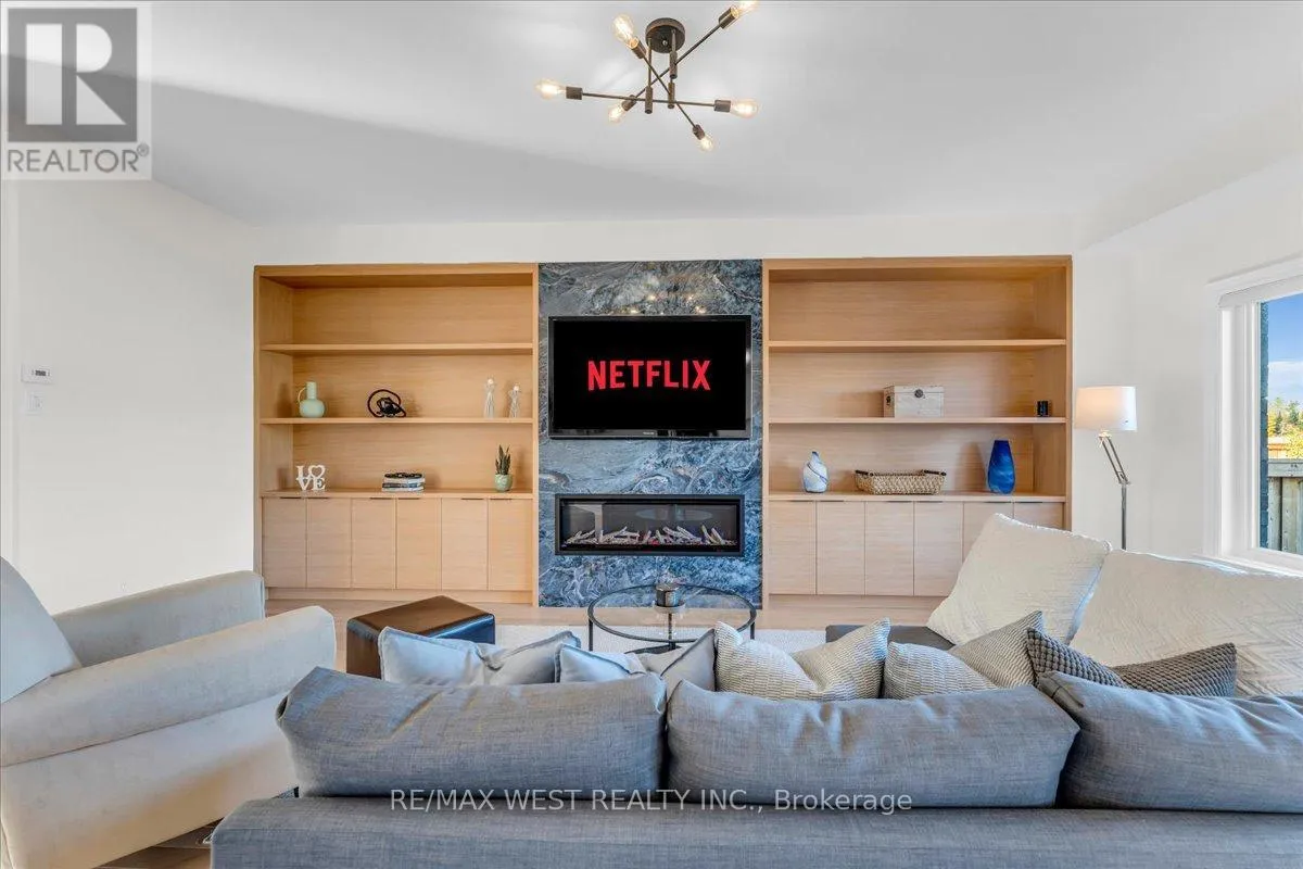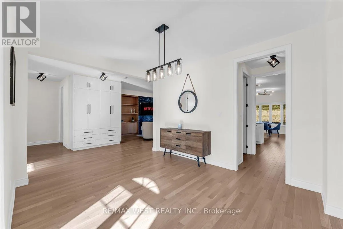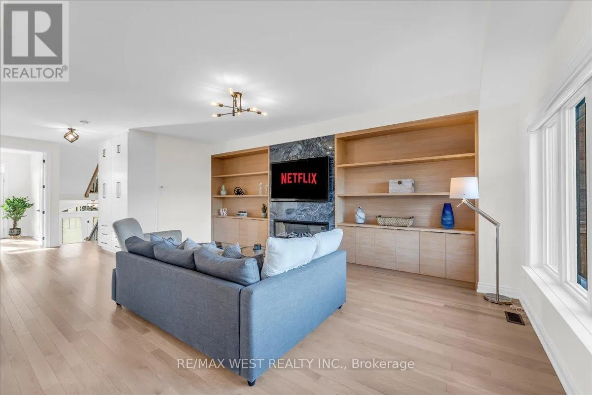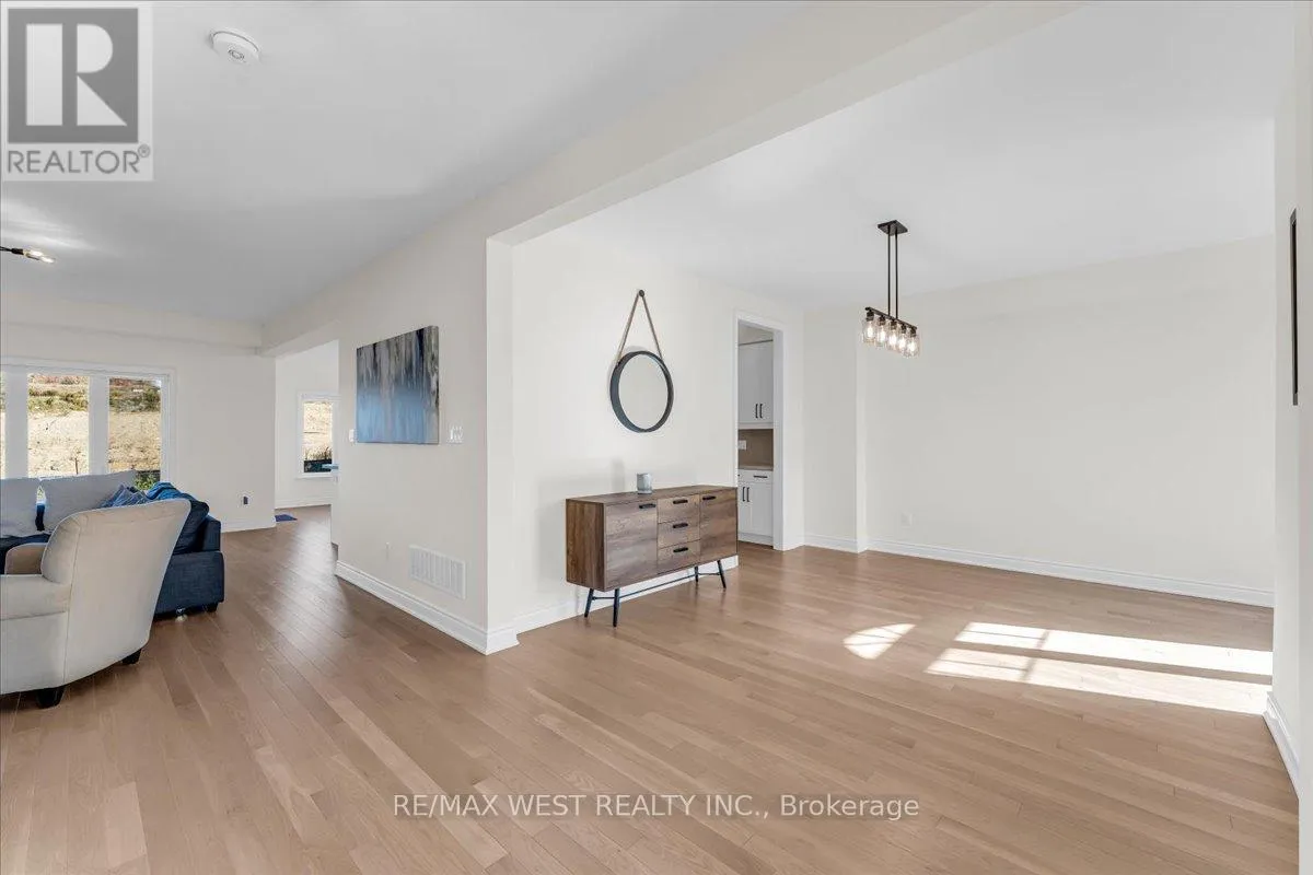 Highway 89 & 10th Side Road Stunning 4-bedroom, 4-bath home with tons of money spent on upgrades! This meticulously maintained home offers an open-concept layout with large rooms, smooth ceilings, and hardwood flooring throughout. The custom kitchen boasts built-in appliances, upgraded countertops, an extended central island, and a walk-in pantry, complemented by a convenient servery. The spacious family room includes a striking feature wall with built-in cabinetry and fireplace, perfect for entertaining.