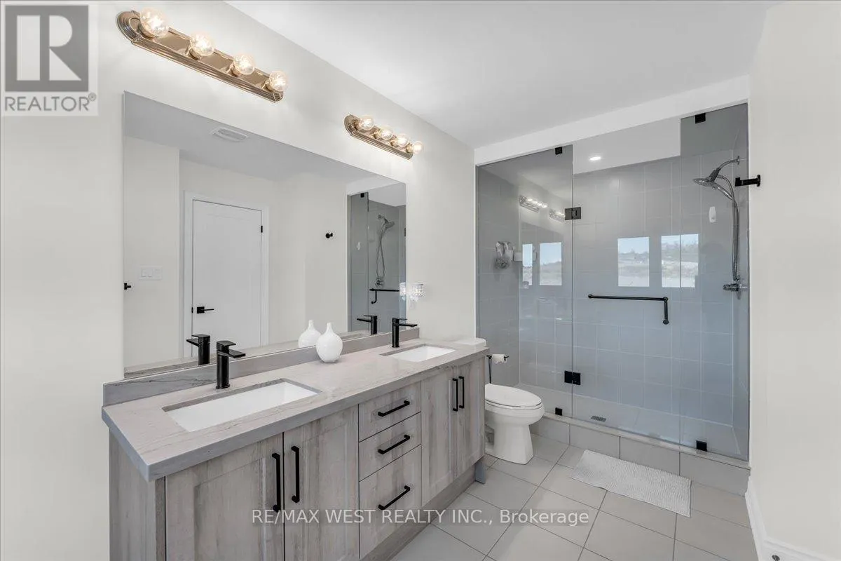 Upstairs, you'll find 4 generous bedrooms with built-in closets, 3 baths, and a second-floor laundry room for added convenience. The luxurious primary ensuite showcases his & hers sinks, a free-standing soaker tub, and a seamless glass shower with upgraded fixtures. Custom blinds and upgraded lighting throughout the home enhance its modern elegance. Attention to detail for the most selectful buyers! (id:27476)
