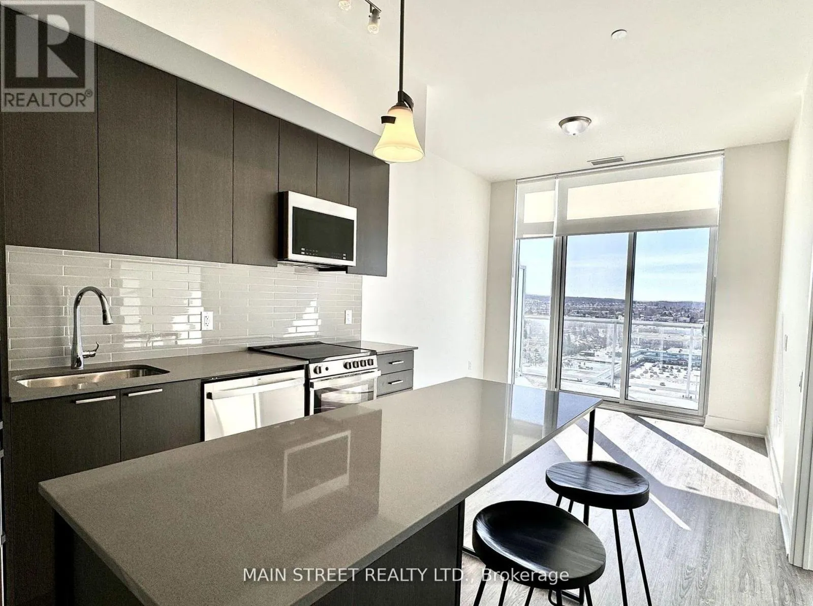 Cross Streets: Davis Dr. and Yonge St. ** Directions: Yonge to Davis Dr. to Deerfield. Top floor - Penthouse suite | Best unobstructed views in the building | Impressive 10' ceilings exclusive to penthouse level | Floor to ceiling windows with western exposure and tons of natural light | Oversized balcony with city view to the horizon | New build finished in 2024 | Thousands spent in upgrades | Upgraded kitchen with quartz counter top and built-in stainless steel appliances | Under mount sink and glass top stove | Upgraded Island with built-in breakfast bar | Great one plus one bedroom floor plan with two washrooms | Separate den great for office, kids or guest room | Main bedroom with floor to ceiling windows | Stunning views | Custom fitted window coverings | Full ensuite 3pc bath with glass shower doors, vanity with quartz countertop, and linen closet/shelf | Main 4pc bath with full tub | Laminate flooring and tiled bathrooms through out | Walking distance to everything including shops, dining, groceries, transit, Upper Canada Mall | Amenities include fully equipped gym, games room, office, outdoor terrace, multiple common area lounges and playground for the kids | Maintenance fees include Rogers internet (id:27476)