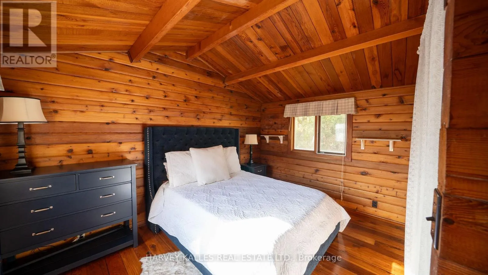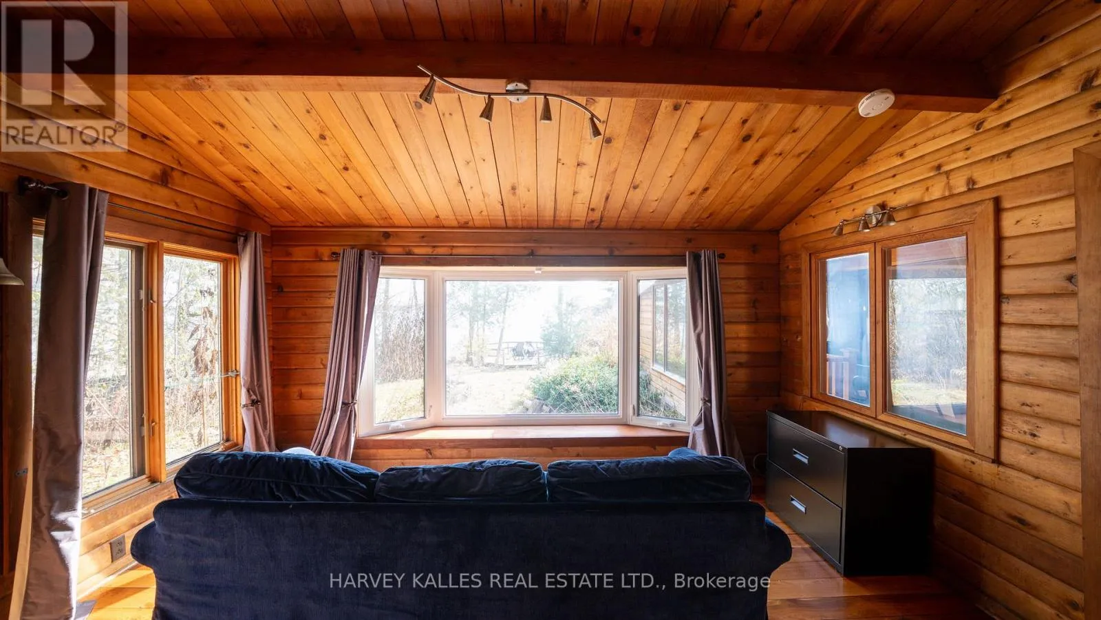 Range Road And Line 4 South Rare opportunity to own an original log home on one of Kempenfelt Bay's most prestigious private roads, neighbouring some of the area's most notable luxury waterfront estates. Set on approximately 100 feet of prime, south-facing waterfront, this property enjoys all-day sun and stunning sunrise views over the bay.The interior showcases the preserved original log construction, complemented by soaring high ceilings, original wood flooring, and skylight windows that flood the home with natural light while enhancing its authentic character.