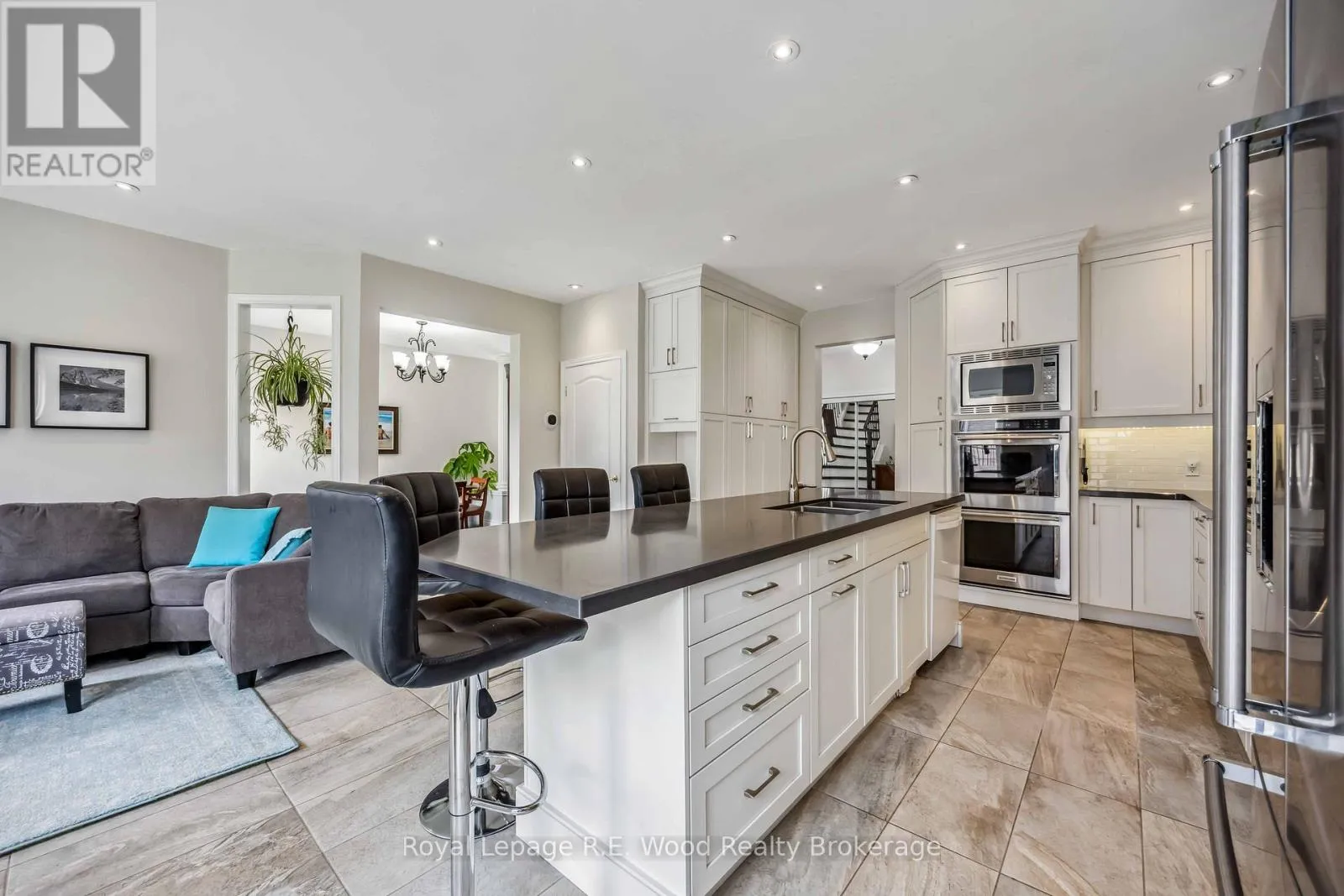 Clearly well maintained, showing pride of ownership throughout with lots of updates including an eye popping central staircase. The open concept fully remodelled, modern kitchen including double wall ovens, built in microwave oven, an induction top range and the massive island which provides lots of extra seating is perfect for those aspiring chefs, or just as a great entertaining space to gather with friends and family. The nicely landscaped, pie shaped lot that's 60 ft wide at the rear, has lots of perennial plantings for easy care and maintenance. The main floor boasts 9 ft ceilings throughout as well as an elegant 2 storey cathedral ceiling in the large living room which is an immediate wow when you walk into the home. A professionally finished basement offers a massive storage room, a spacious recreation room, 3 piece bath as well as an office space. The double car garage has direct access through the main floor laundry room. The grand entry sets the tone for the entire home visit.....and this should be the only home you need to view! (id:27476)