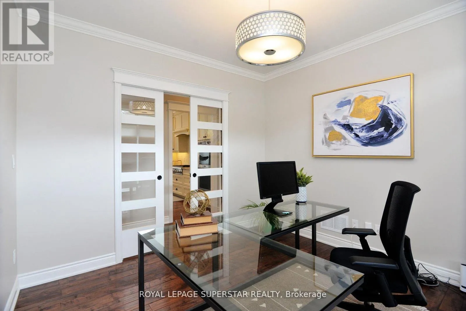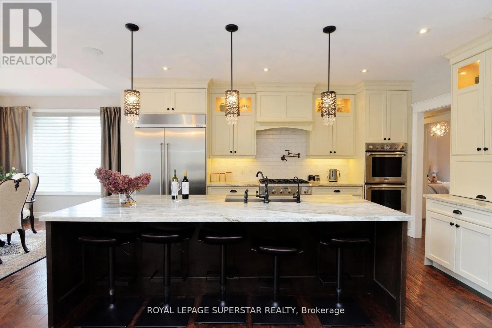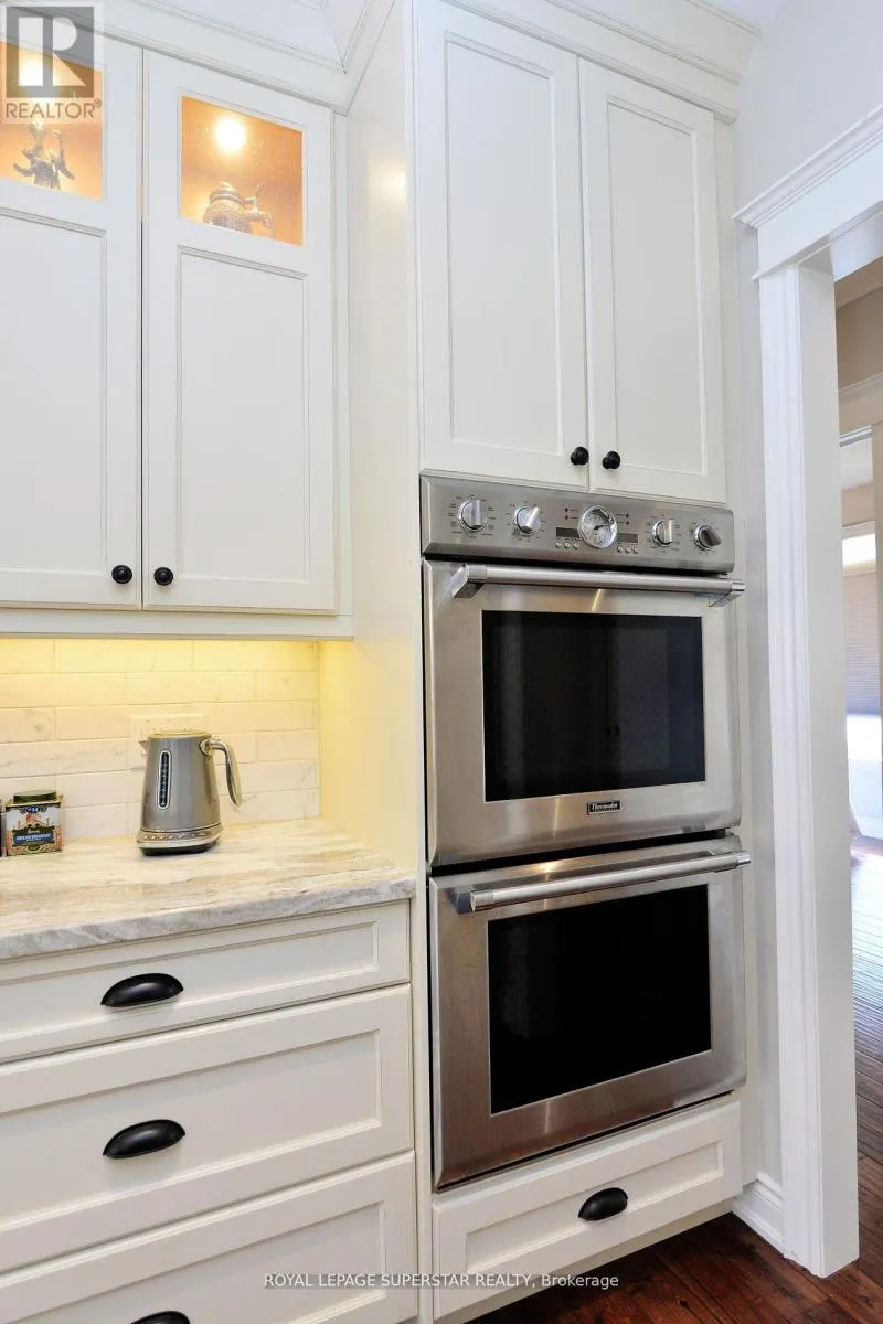 This is a Corner property with 3 + 2 BR & 3.5 WR, and this exclusive estate home comes with 2 elegant offices, one office is conveniently located on the main floor and the other office, boasts of custom executive office cabinetry, is in the basement. The Kitchen has high end appliances has Shaker style Cabinets, glass inserts & undermount Lighting. Open concept layout has Family Room w/ Cathedral Ceiling & 9 Sliding Glass door opening to a stunning Backyard. The professionally landscaped backyard is a private oasis, complete with a newer inground pool, an automated sprinkler system, and a fully serviced cabana with hydroideal for hosting and relaxing in style.Hand scraped H/W Flooring in the home, spacious Master Bedroom Has Walk-in-Closet & Luxury 5-Piece Ensuite. Mud Room has custom shelving & quartz Counters. 4-Car Garage w/ high ceilings & 2 built in Car Lifts. Custom closets throughout the home including the basement. Lower Level has entrance from Garage, and has 2 BR, 1 WR, A large Family Room, wet bar & Custom-made Office. The Basement has legal approval for legal second dwelling with plans in place for a large 3 BR basement with a huge living area and a chefs kitchen. Home offers a great lifestyle with hiking, water sports, skiing, Golf, and quick access to all amenities of Barrie. This exceptional residence combines refined craftsmanship with modern comforts, offering an elevated lifestyle in an exclusive estate setting. (id:27476)