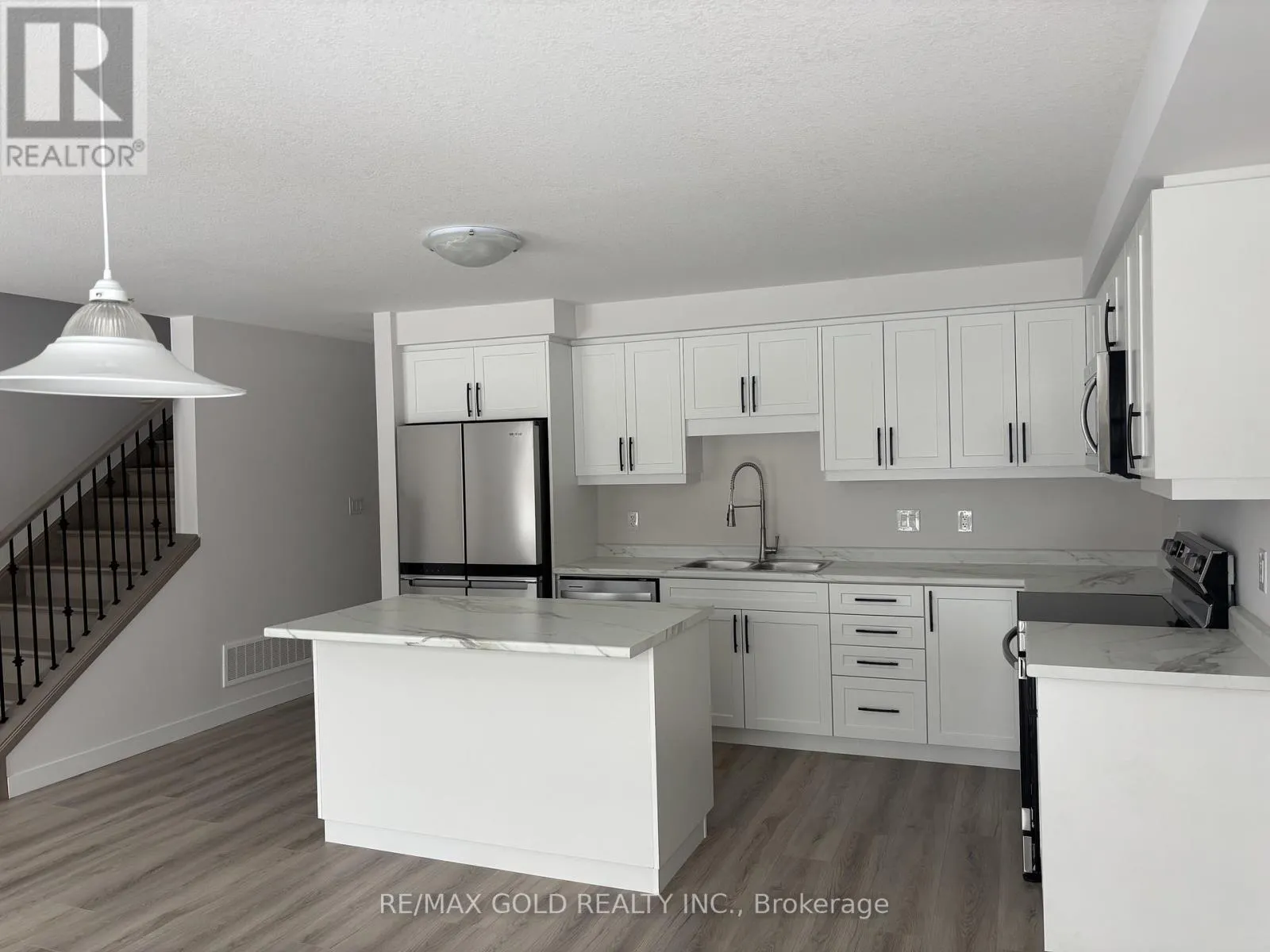Yonge St S/Queen St W Discover refined living in this beautifully upgraded Moonstone model, featuring $35K in premium builder enhancements and now offered with $30K off the purchase price for a limited time only. This move-in ready home showcases a designer kitchen with upgraded cabinetry, an extended island with breakfast bar, elegant countertops, matte black hardware, and stainless steel appliances.