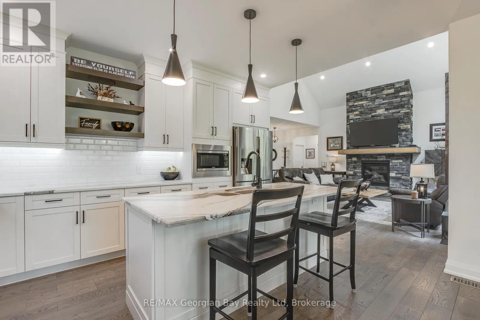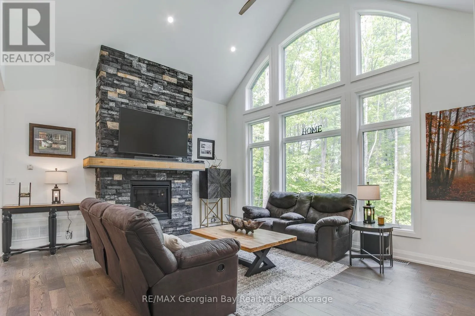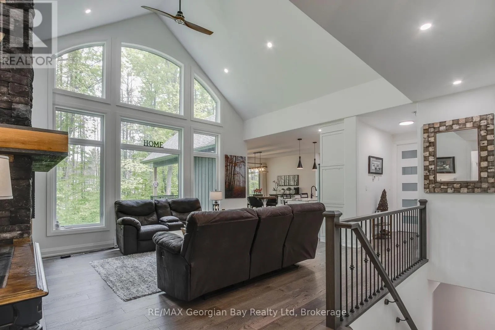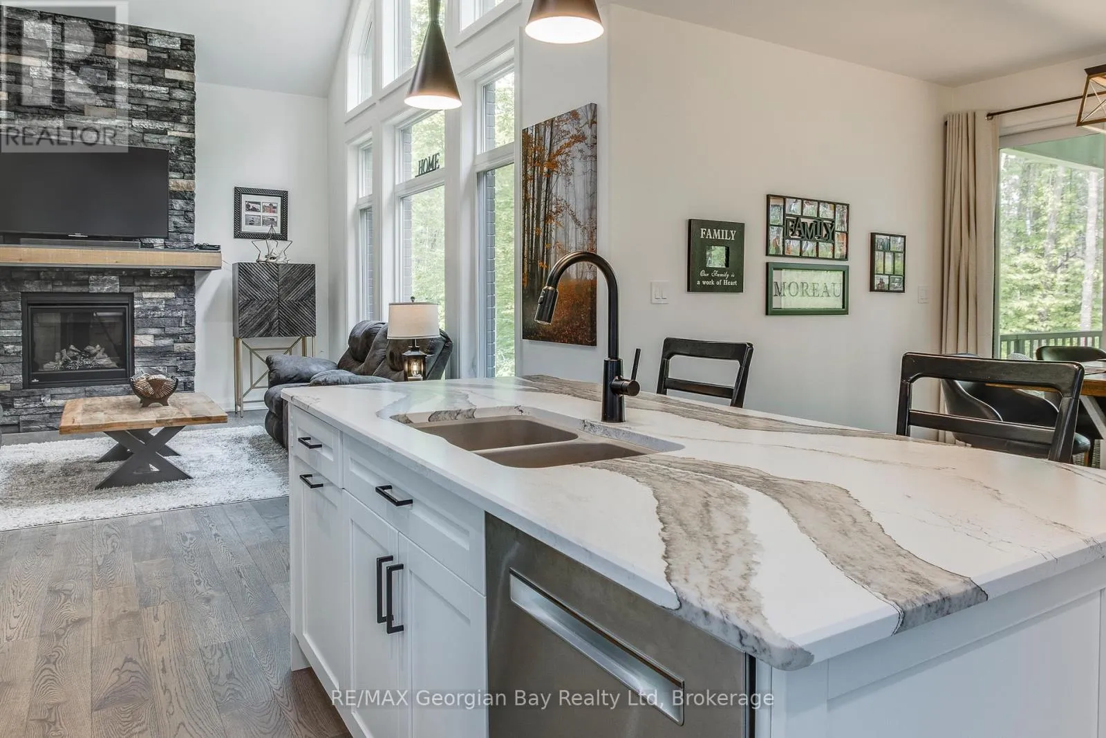 The open-concept dining and living area features a stunning gas fireplace and a walkout to a covered porch, ideal for relaxing summer evenings. With 3 bedrooms upstairs and 2 more on the lower level, there's plenty of space for family, guests, and a home office setup on main level. With 3 baths in total the primary bedroom suite boasts a beautiful ensuite bath, while the other 2 bathrooms throughout the home ensure convenience for all. The fully finished walkout basement offers even more living space, including a large rec/family room, a second fireplace, and an open layout that's perfect for In-law potential or entertaining family or friends. Outside, you'll find a 3-car heated garage with epoxy floors, a paved driveway, and a landscaped yard all designed for style and practicality. With gas heat, central air, ICF foundation and thoughtful finishes throughout, this home offers comfort year-round. Centrally located between Barrie, Orillia, and Midland, and just minutes from town and the stunning shores of Georgian Bay. This is the one you've been waiting for you wont be disappointed. (id:27476)