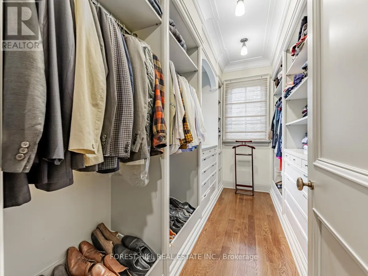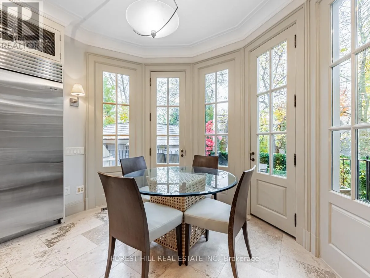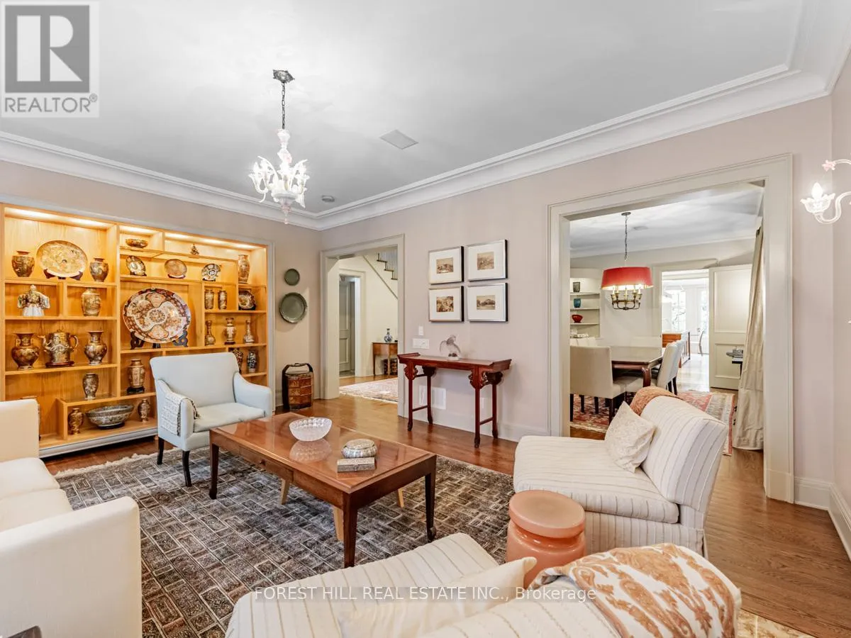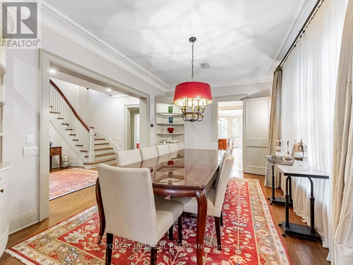 Spadina Rd This exceptional residence, custom-designed in 2000 by the esteemed firm of Katharine Newman and Peter Cebulak, exemplifies luxurious living with the finest materials throughout. Lot pies out to 60 feet in rear. The home begins with a vestibule featuring an armoire closet and a chic two-piece powder room. The expansive layout flows effortlessly from the large foyer into spacious principal rooms, creating an airy and inviting atmosphere.