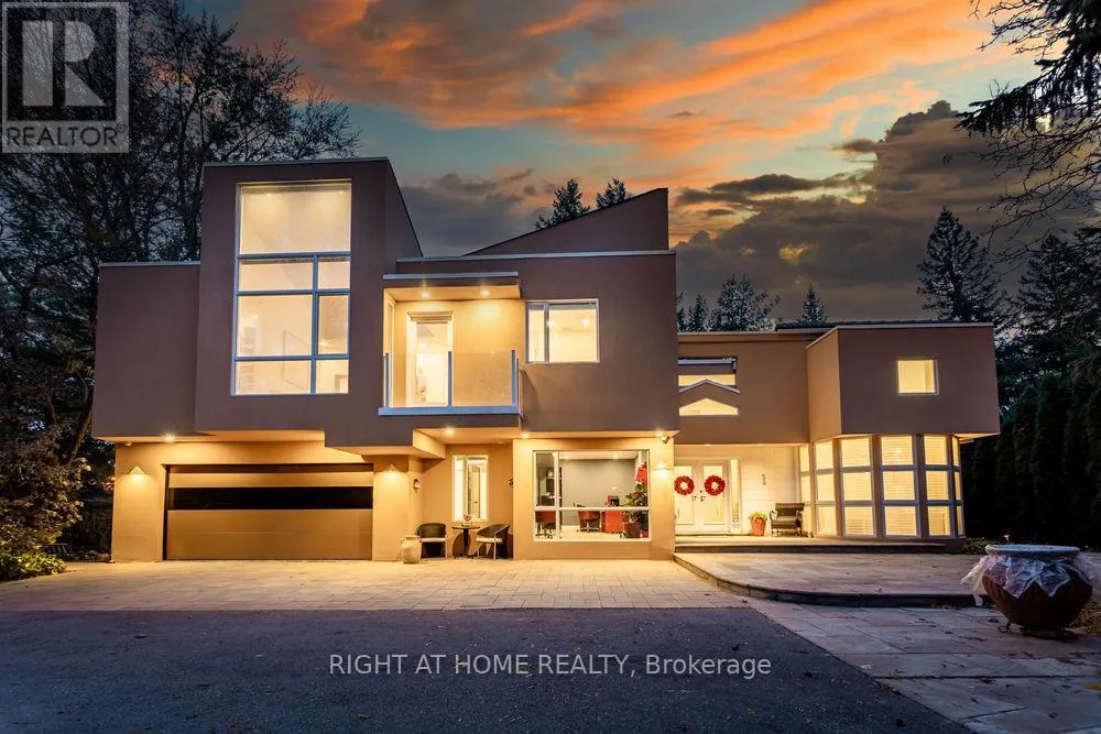 Originally Built In 1990 And Later Re-Imagined Through An Extensive Renovation And Expansion Personally Supervised By The Architect, The Home Blends The Warmth And Elegance Of Spanish-Revival Architecture With Bold, Avant-Garde, Mid-Century Modern Design. Offering Over 7,500 Square Feet Of Interior Living Space, The Home Features Soaring 17-Foot Ceilings, Expansive Windows And An Open-Concept Layout Filled With Natural Light. Premium Materials Imported From Europe Elevate Every Detail, Including Italian Granite Flooring, Italian Black Lacquer Interior Doors, European Vanities, Porcelain Bathroom Finishes, And A Breathtaking Murano Glass Chandelier Anchoring The Dining Room.The Resort-Style Backyard Is Nothing Short Of Spectacular. Fully Fenced And Professionally Landscaped, It Features An Award-Winning Inground Pool And Spa, Outdoor Kitchen With Two Built-In Lynx Barbecues, And Multiple Entertaining Areas Surrounded By Mature Trees And More Than Ten Varieties Of Rare Japanese Specimens, Including A Prized Shishigashira Maple. Outdoor Stone Imported From Arizona Completes The Setting. Additional Highlights Include A Private Elevator Serving All Three Levels, Two Staircases, A Finished Basement With Above-Grade Windows, Integrated Home Audio, Heated Front Stone Patio, Generator, Irrigation System, Circular Driveway With Parking For Up To Ten Cars, And An Attached Two-Car Garage. Minutes From Transit, Parks, Shops, Schools, Golf Clubs, And Less Than Fifteen Minutes From Pearson Airport, This Is A Rare Offering For Those Who Value Architectural Distinction Without Compromise. (id:27476)