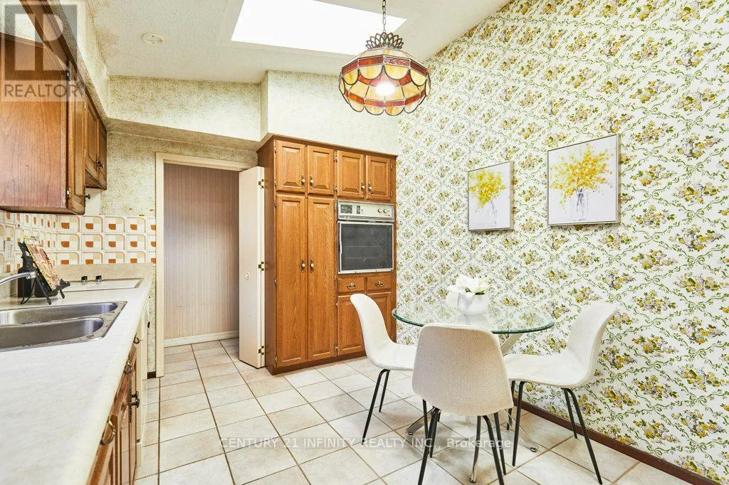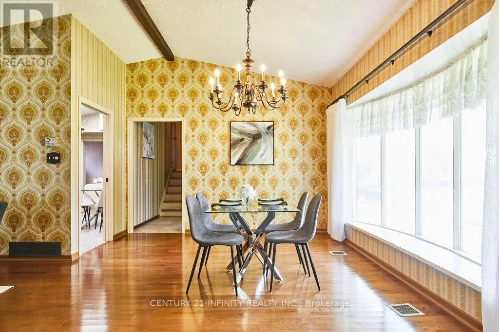 The main floor showcases a breathtaking open-concept great room featuring gleaming hardwood floors, soaring vaulted ceilings, and a striking floor-to-ceiling oversized brick wood-burning fireplace. This versatile space combines the living room, dining area, and an optional home office nook, perfect for today's lifestyle. The bright and spacious eat-in kitchen is equipped with tiled floors, high ceilings, and a skylight, adding to the home's charm. A separate entrance to the basement is conveniently located just off the kitchen. Upstairs, an impressive addition over the two-car garage has created two exceptionally large bedrooms, each featuring double closets and oversized windows that invite the sunshine in. Three additional bedrooms and a 4-piece bathroom round out the upper level, providing ample space for family and guests. The basement is a true bonus, offering an expansive crawl space for all your storage needs, a utility room complete with laundry facilities, and a massive recreation room with ample above-ground windows and a dry bar. You'll also find a convenient 3-piece bathroom and interior access to the two-car garage. Ideally located in the highly sought-after Agincourt area, this home is mere minutes from Highway 401 and boasts proximity to top-rated schools, shopping centers, places of worship, Agincourt Go Station, and public transit.. Don't miss out on this incredible opportunity - make this house your forever home! (id:27476)