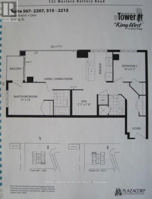 King/Strachan Welcome to this bright and stylish 2 bedroom + den corner suite in the heart of Liberty Village. Offering approximately 893 sq. ft. plus a balcony, with 1 parking and 1 locker. Functional split-bedroom layout with a spacious den, perfect for a home office. Floor-to-ceiling windows fill the unit with natural light. Modern kitchen with granite counters, stainless steel appliances, and two walkouts to the balcony.