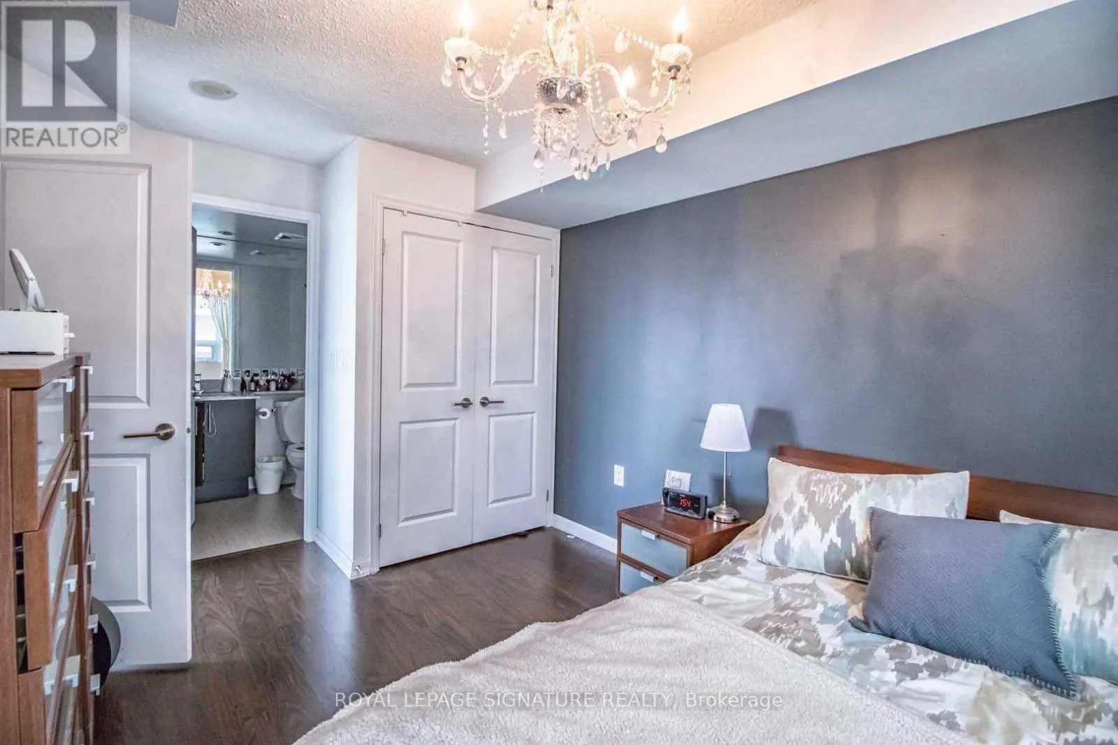Primary bedroom comfortably fits a king bed. Enjoy top-tier amenities including a fitness centre, media and games room, theatre lounge, and a 29th-floor party room with stunning views. Just steps to Metro, Goodlife, LCBO, banks, Starbucks, TTC, and the best of Liberty Village living. (id:27476)