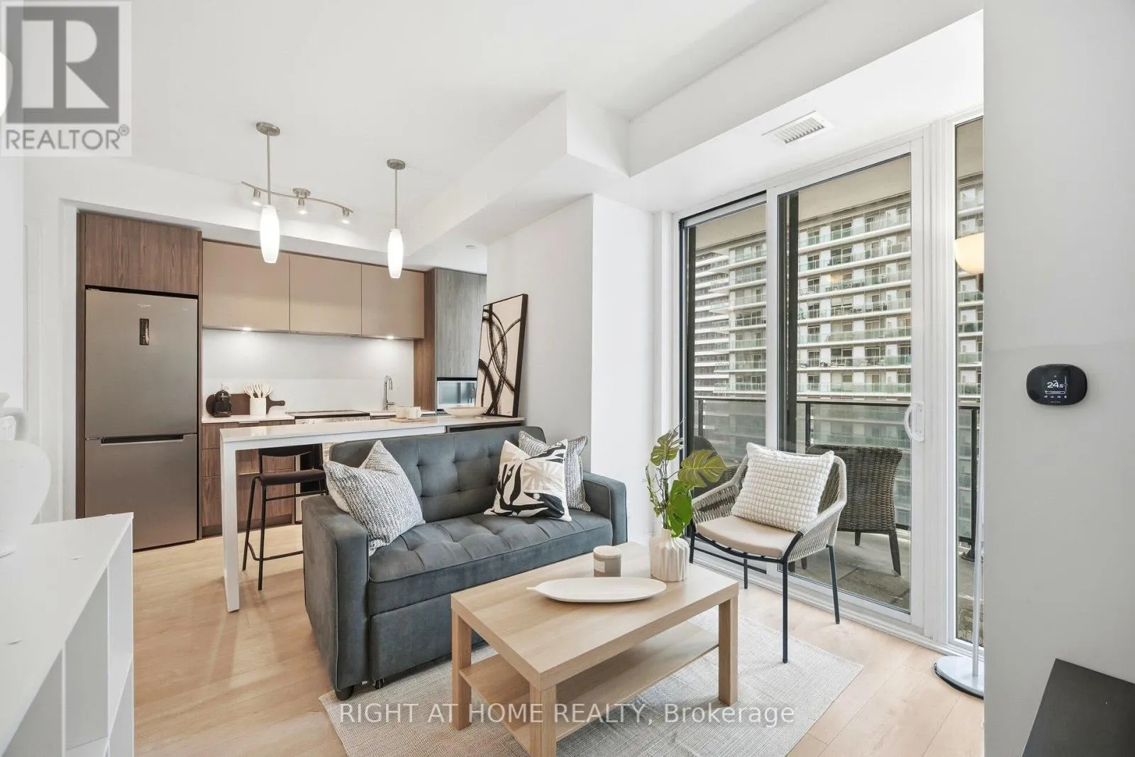 Floor-to-ceiling sliding glass doors in both the living room and bedroom open to a spacious 30' x 5' private balcony, extending the living space and views of the waterfront setting. Upgraded builder package added. includes granite backsplash, washroom cabinets, custom wall sconces and a TV wall-mount receptacle. The primary bedroom is complete with a private ensuite bathroom featuring a glass-enclosed shower, while a separate 4-piece bathroom with tub provides added functionality.Den can be used as bedroom or office with sliding glass doors for privacy. Residents enjoy modern amenities including a fitness centre, outdoor pool, and a refined party room and billiards lounge with fireplace and large-screen TV. An expansive terrace with outdoor barbeque area, lounge seating, and gas firepit creates an ideal setting for entertaining and relaxing by the lake.Located within walking distance to local lakeside restaurants and cafés, scenic walking and biking trails, nearby parks, and the beach-offering the best of waterfront living and outdoor lifestyle. Transit at your doorstep.Walk to nearby shopping for all your needs. Mimico Go train to Union Station in 15 minutes. (id:27476)