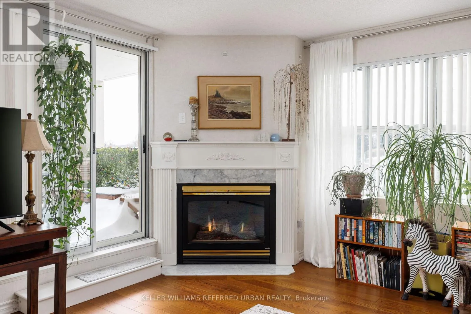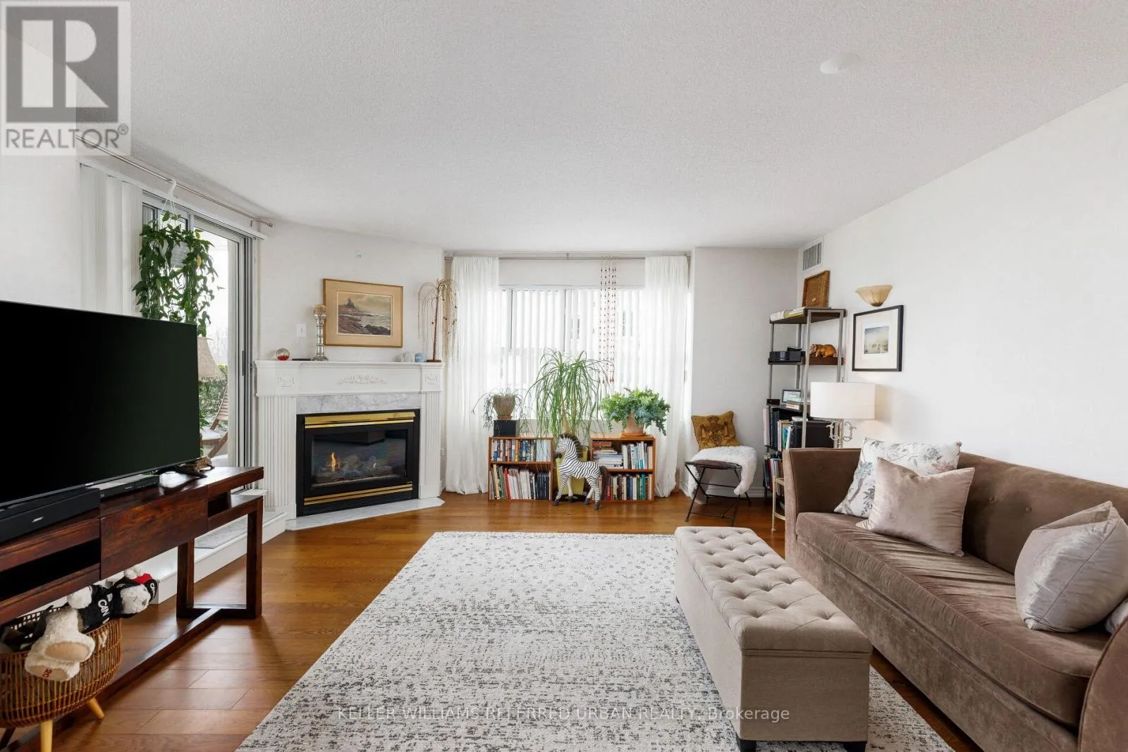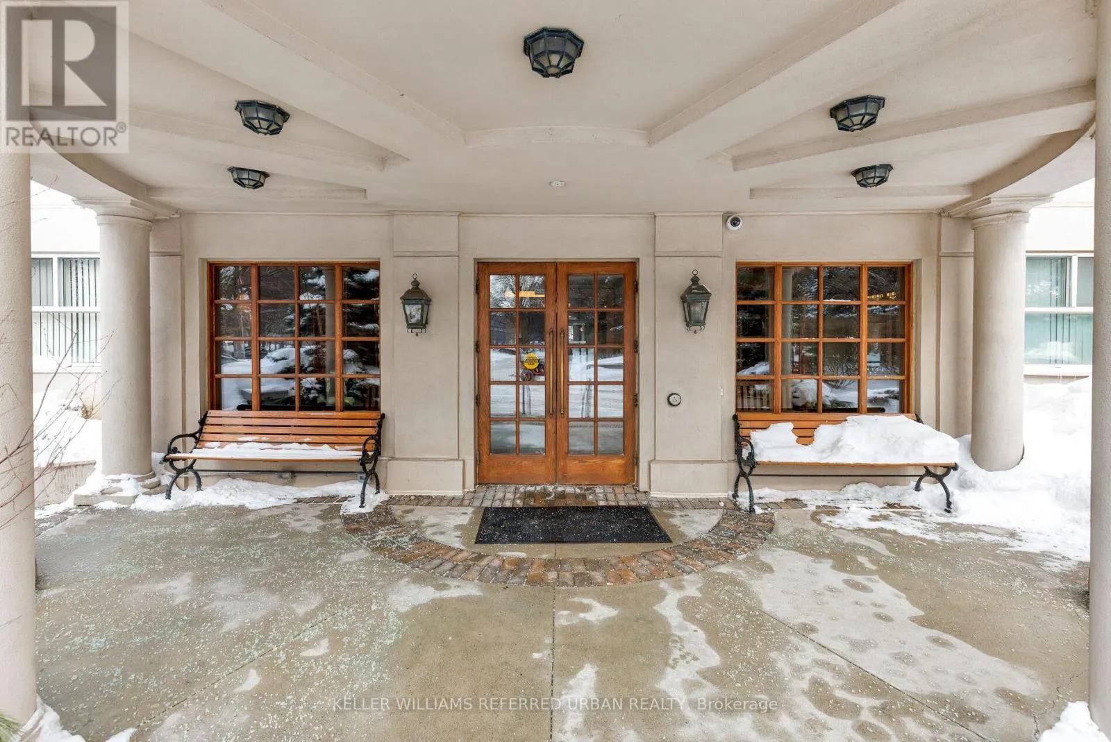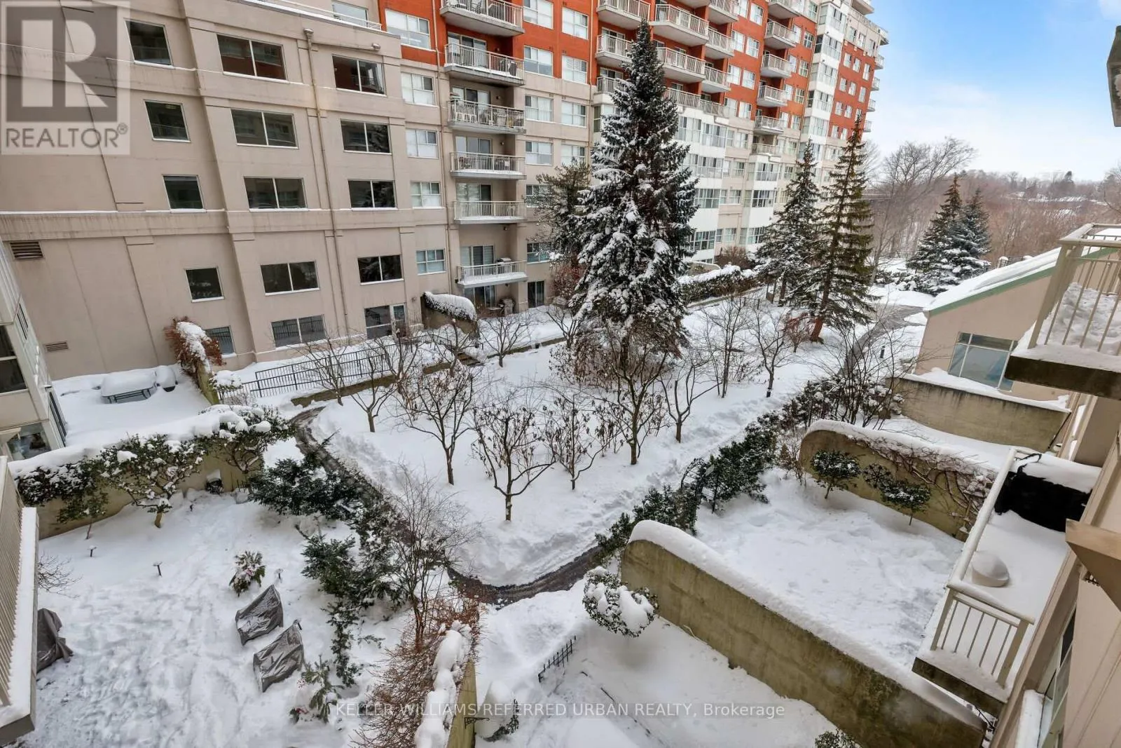 Wynford Dr & Concorde Pl Welcome to The Courtyards of Concorde Place, a private, luxury enclave in the heart of Don Mills. This sun-filled corner 2 bedroom + den, 2 bathroom suite offers approximately 1,550 sq. ft. and is tucked away in a quiet corridor with only six suites. Enjoy the rare convenience of same-level parking with step-in access-no elevator required. The spacious kitchen and dining area overlook a serene ravine, while the living room features a gas fireplace and walkout to a balcony with gas BBQ hookup.