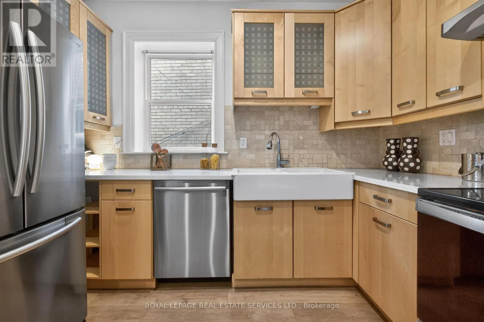 From the moment you step inside, the soaring ceilings, original stained glass accents, and gleaming hardwood floors create an atmosphere of refined elegance. The open-concept main floor is a host's dream, flowing seamlessly from the spacious living areas to a convenient main floor powder room, making it the perfect backdrop for grand entertaining or intimate family gatherings. At the heart of the home lies a renovated kitchen, designed for both style and function. It boasts a sleek breakfast bar, quartz countertops, and a sophisticated tumbled marble backsplash. The upper levels continue to impress with a spa-like family bathroom and a sun-drenched office featuring a skylight and offering breathtaking views of the treetops and vibrant sunsets. Outdoors, the lifestyle is equally impressive, with two walk-outs to private decks and terraces, providing serene spaces for morning coffee or evening relaxation. The versatility of this property extends to the fully developed lower level, which functions as a complete secondary living space. Featuring its own kitchen, living room, bedroom, washroom, and a separate entrance, it serves as an ideal nanny or in-law suite. Situated on a quiet, child-friendly cul-de-sac, you are just steps away from the lush trails of High Park, the ambiance and shops of Bloor West Village and the convenience of the subway station. This is a rare opportunity to own a turnkey historic gem in one of Toronto's most vibrant and walkable neighborhoods. (id:27476)