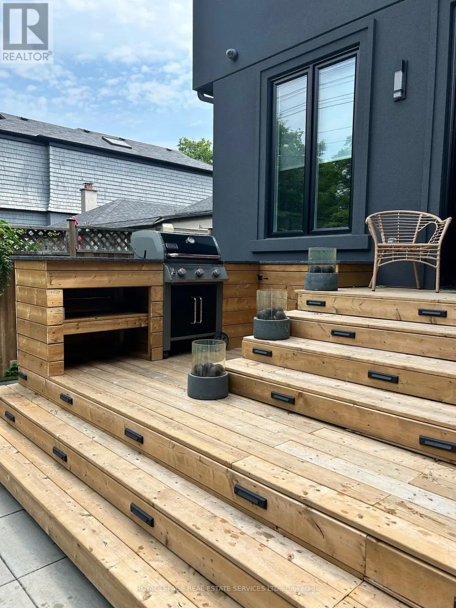 The main floor features grand principal rooms and an ideal layout for family life. A formal living room (perfect as a home office), elegant dining room, powder room, and direct garage access are complemented by the show stopping open-concept family room and chef's kitchen. The kitchen is a true centerpiece, boasting a Quartz waterfall centre island, Caesarstone countertops, herringbone marble backsplash, and stainless steel KitchenAid appliances. Sunlight floods the space, with a seamless walk-out to the deck and professionally landscaped, ultra-private backyard, complete with a built-in BBQ - an entertainer's dream. Upstairs, you'll find 4 generous bedrooms, all with spacious closets and custom organizers, plus the convenience of upper-level laundry. The primary retreat is truly special, featuring a spa-inspired 5pc ensuite and a large walk-in closet designed for comfort and luxury. The lower level offers incredible versatility, with a large recreation room, ample storage, a 5th bedroom or home gym, and a walk-up to the backyard - perfect for guests, teens, or multi-generational living. Modern, beautiful, and completely move-in ready, this is a home made for hosting, relaxing, and making memories. Steps to Bloor Street's cafés, restaurants, shops, and subway, and priced exceptionally well for a home of this calibre in such a coveted neighbourhood - this is Kingsway living at its finest. Ideally located within walking distance to top-rated schools including Lambton Kingsway Junior Middle School, Etobicoke Collegiate Institute, and Kingsway College School - perfect for families seeking exceptional education close to home. (id:27476)