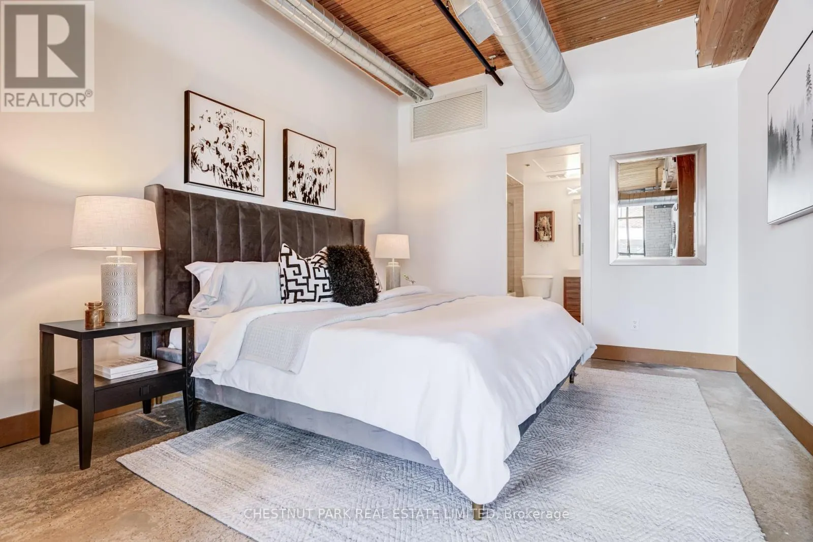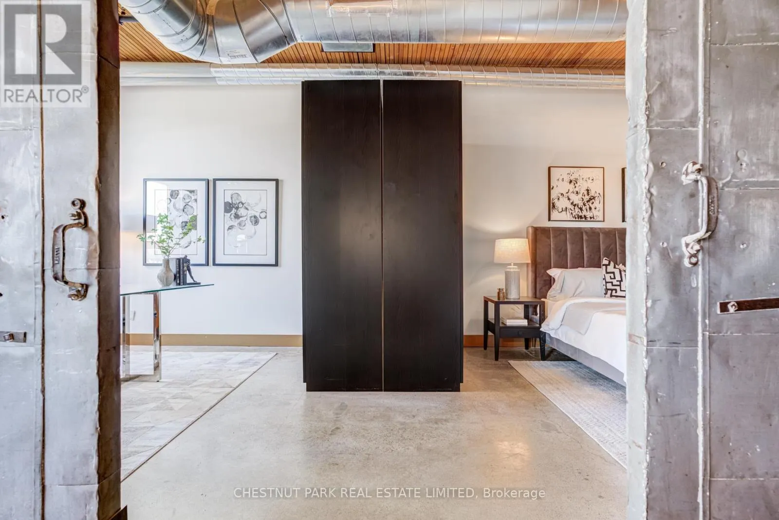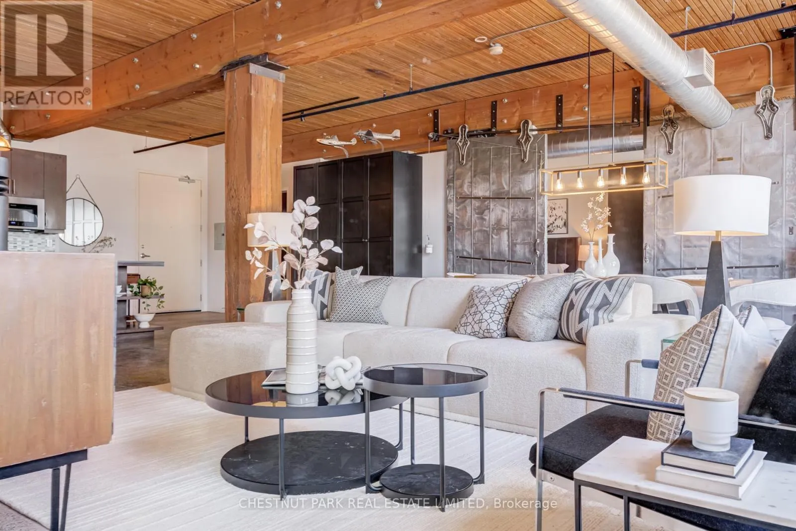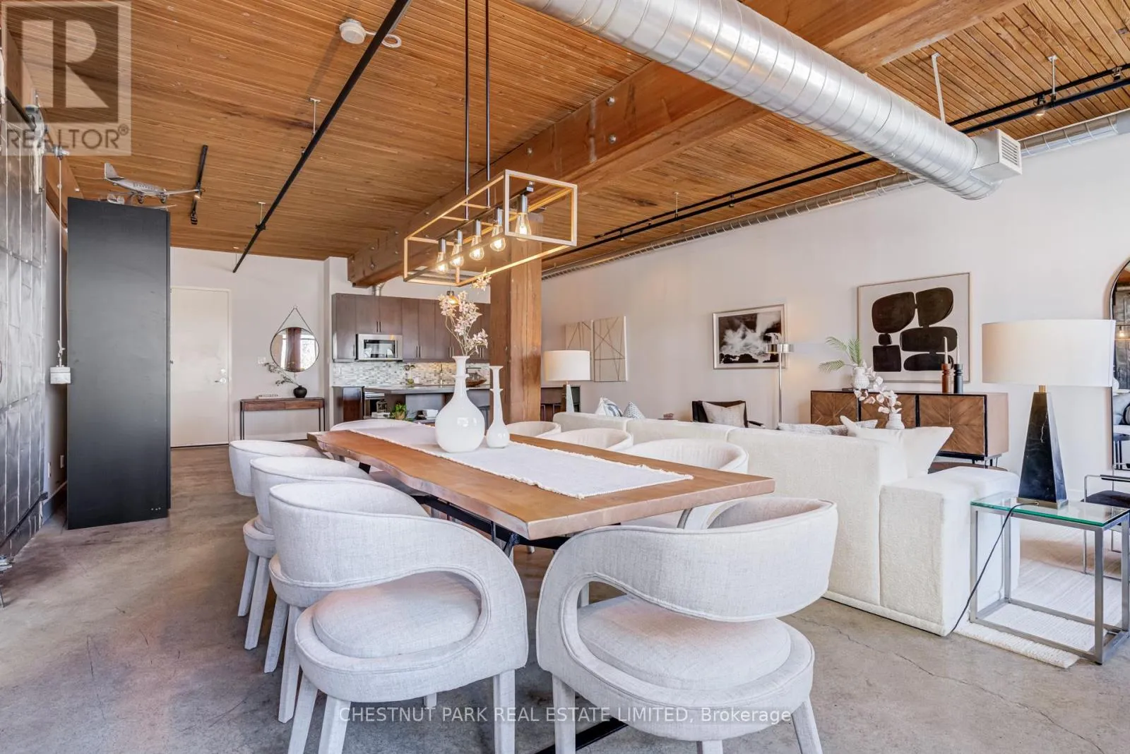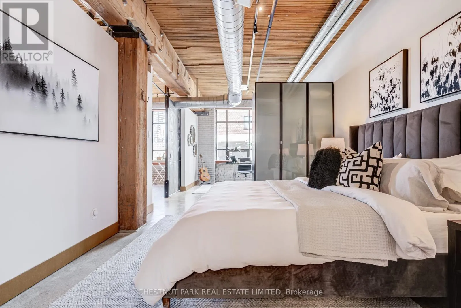 From the moment you enter, the architectural details make a statement. Soaring 10.5 ft. wood beam ceilings, original Douglas fir posts, exposed brick walls, polished concrete floors, oversized warehouse windows, and original metal doors create a dramatic yet warm aesthetic that simply cannot be replicated in new construction. Every element reflects the building's rich history while offering the comfort and functionality modern urban professionals expect.The expansive open-concept layout provides exceptional flexibility for entertaining, working from home, or creating distinct living and dining zones without sacrificing flow. The extra width of the suite enhances the sense of volume and light, while two full bathrooms offer rare practicality in authentic hard loft living. Whether hosting dinner parties, enjoying quiet evenings in, or designing a space that reflects your personal brand and creativity, this loft adapts effortlessly to your lifestyle.Exclusive underground parking and a large locker add everyday convenience, while the surrounding neighbourhood offers some of the city's best cafés, restaurants, boutiques, fitness of the studios, and transit options just steps from your door.This is more than a condo. It is a statement space in a landmark building, offering scale, statement space authenticity, and an unmatched east-end energy that continues to define Toronto living. (id:27476)