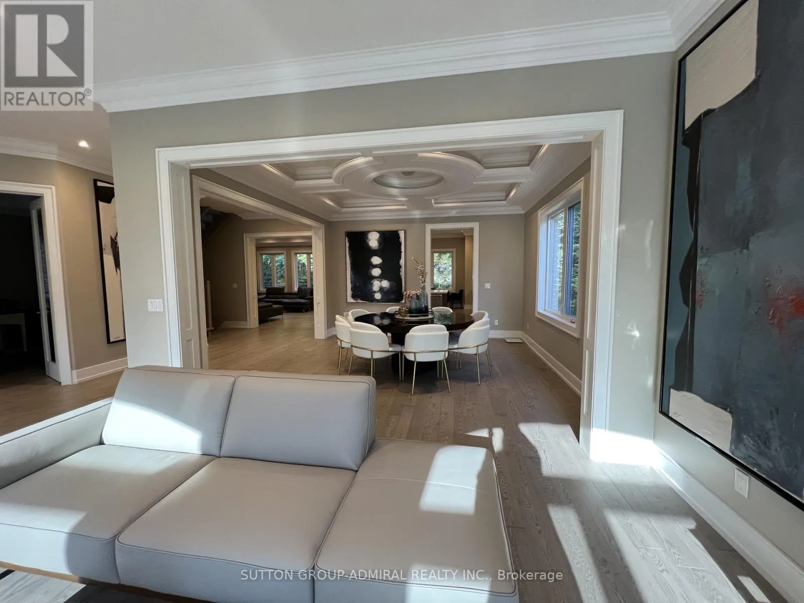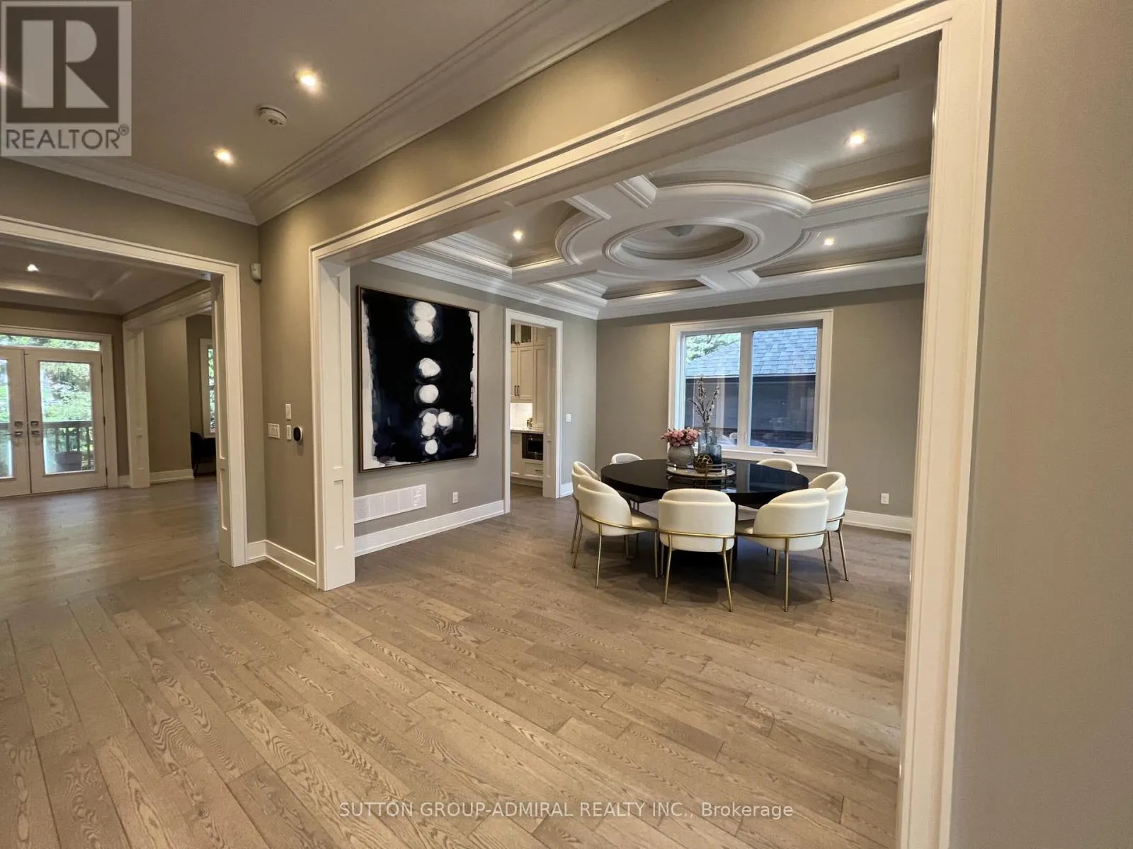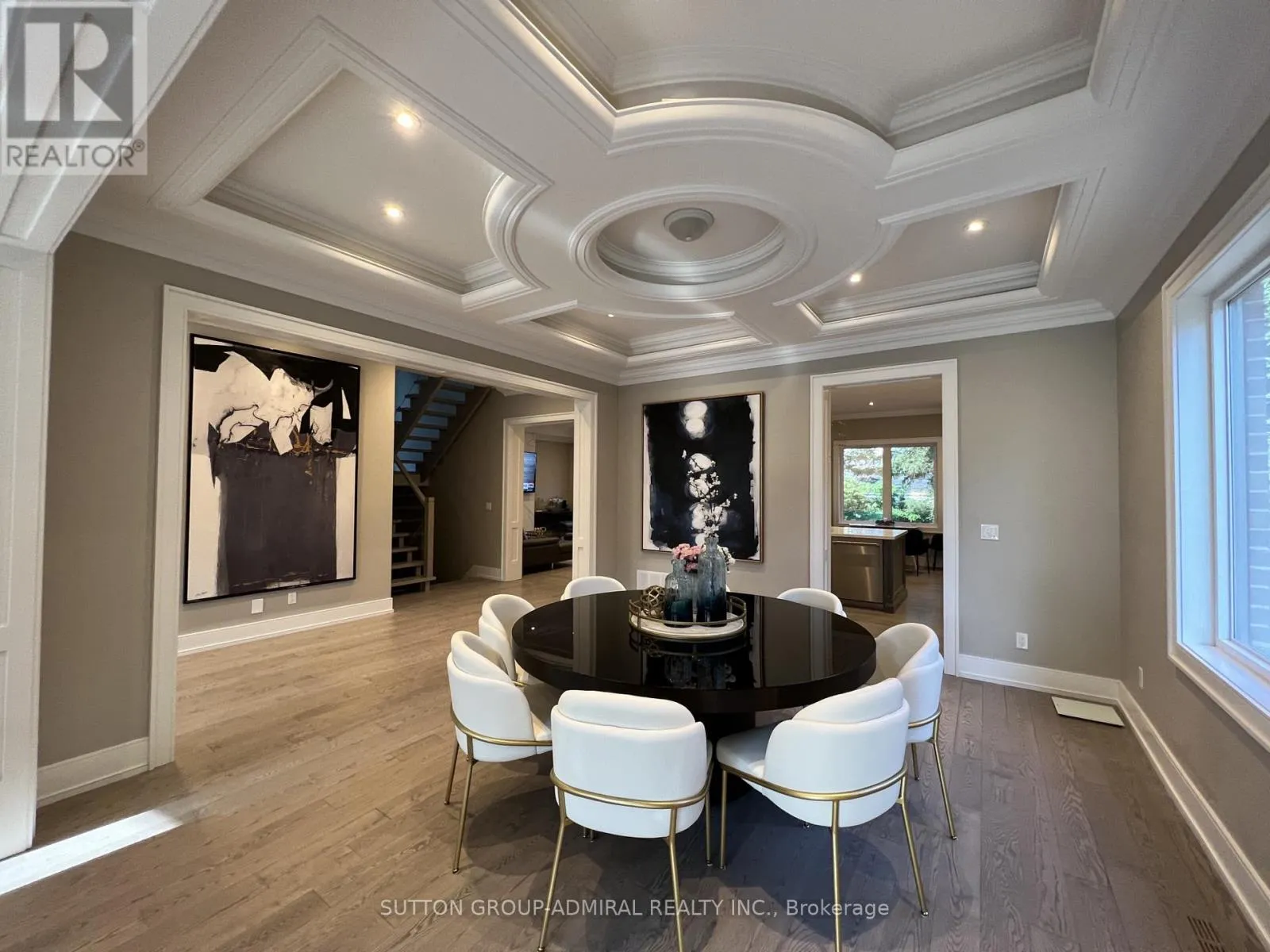 Round coffered ceiling in dining room, centre island in kitchen that overlooks backyard trees.Stainless steel top appliances and quartz counters in kitchen.Breakfast area as well.Family room with gas fireplace and walk out to deck.Stairs lead to upstairs hallway with big skylight and access to fairly huge Primary Bedroom featuring walk in closet,5 piece ensuite bath with free standing tub and dual vanity sink.Other 3 bedrooms on the same floor all come with own ensuite baths and 2 with walk in closets as well.Laundry on the same level and linen closet for your convenience.Finished above ground basement features 2nd Family room with glass enclosed wine storage wall, full bath, extra bedroom and rec room.Walk out from basement to backyard and garage.Close to subway station, airport,city.Very desirable school district.Close to park, shops,mall.Amazing house great for entertaining and very comfortable to live in. (id:27476)