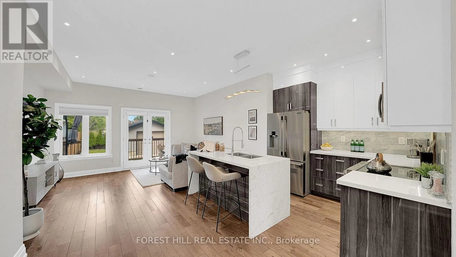 DUFFERIN ST. /BRIAR HILL AVE Welcome to 1070 Briar Hill, a modern custom home, built in 2015 with over 2,600 sq.ft. of thoughtfully designed living space. The main floor combines style and function with tall ceilings, expansive windows, hardwood floors, LED lighting, and a walkout to the backyard deck. Centered around a marble breakfast bar, the kitchen impresses with high-end stainless steel appliances, while a separate dry bar, generous dining room and a stylish powder room enhance the home's entertaining appeal.