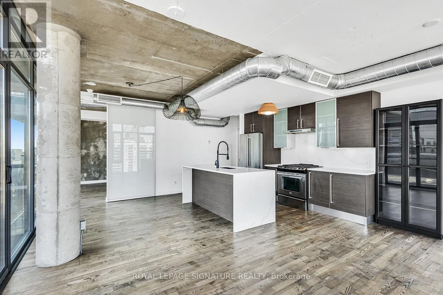 The main balcony is bright and large enough to actually enjoy, equipped with a natural gas BBQ for added convenience. An Additional Juliet balcony brings even more light and fresh air into the space. The kitchen is a chef's dream, with a natural gas range, an updated stone backsplash and a modern waterfall island that serves as both prep space and a favourite gathering spot. Your own parking spot and private locker add everyday convenience. Additional features include underground visitor parking, the streetcar nearby, and a grocery store right across the street. This unit blends comfort, style, and practicality in a way that makes downtown living feel simple. Lofts like this don't come up often. Be sure to see it in person. (id:27476)